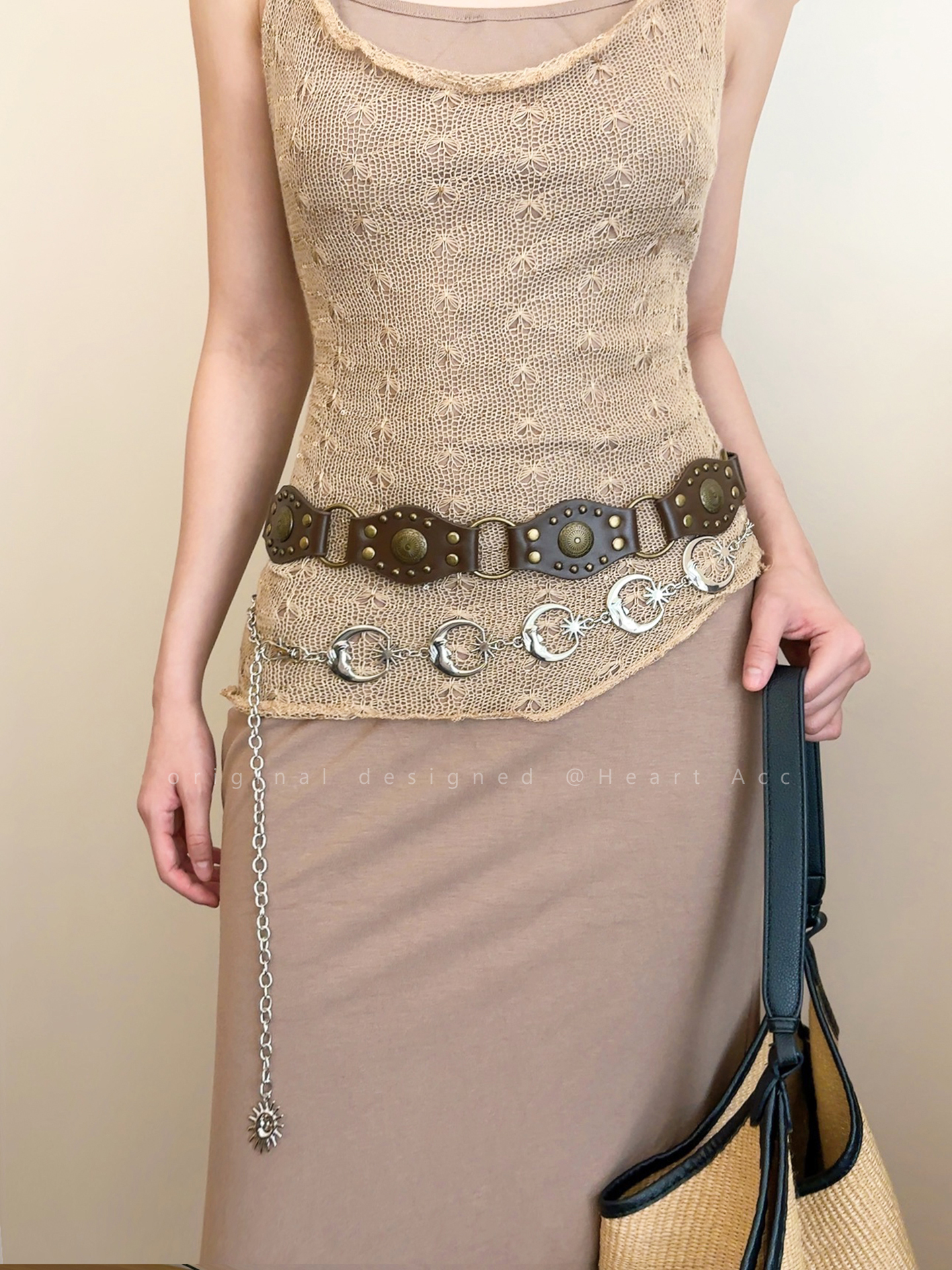 American Retro Brown Studded Butterfly Belt for Women 2025 New Style, Suitable for Jeans, Versatile Dress Waist Chain