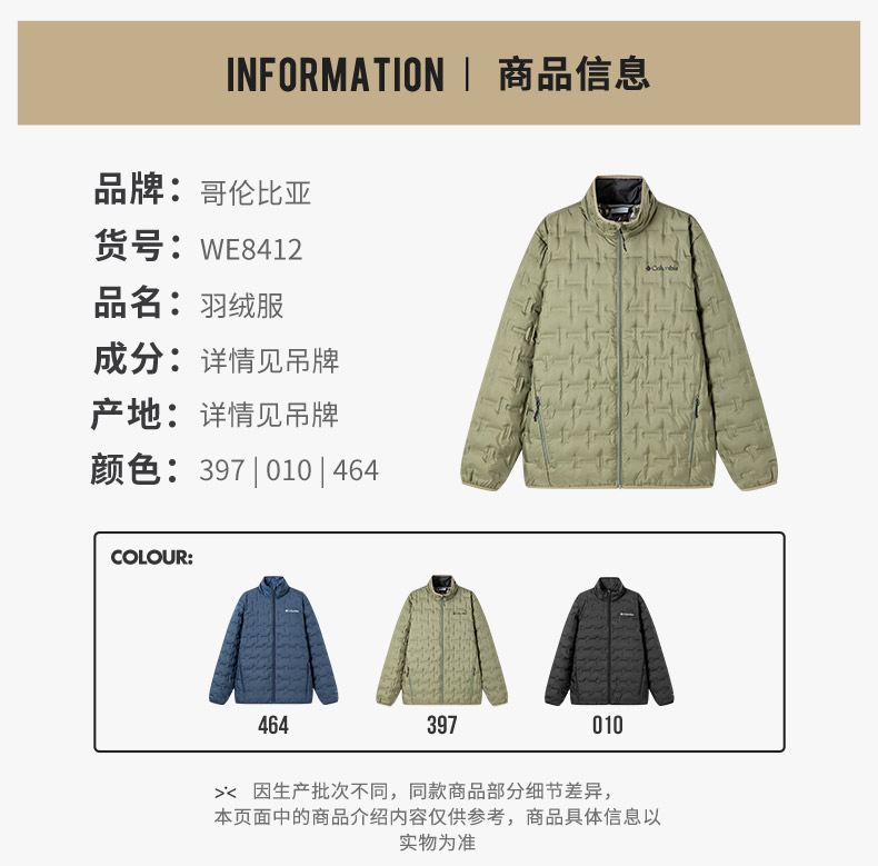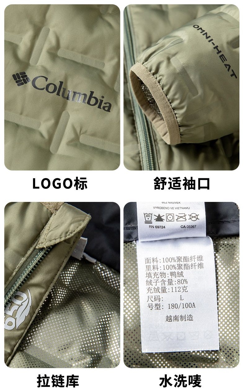 Columbia Colombian down Jacket Men's 25 Autumn and Winter Outdoor Thermal Warm Stand-Up Collar Splash-Proof Jacket We8412