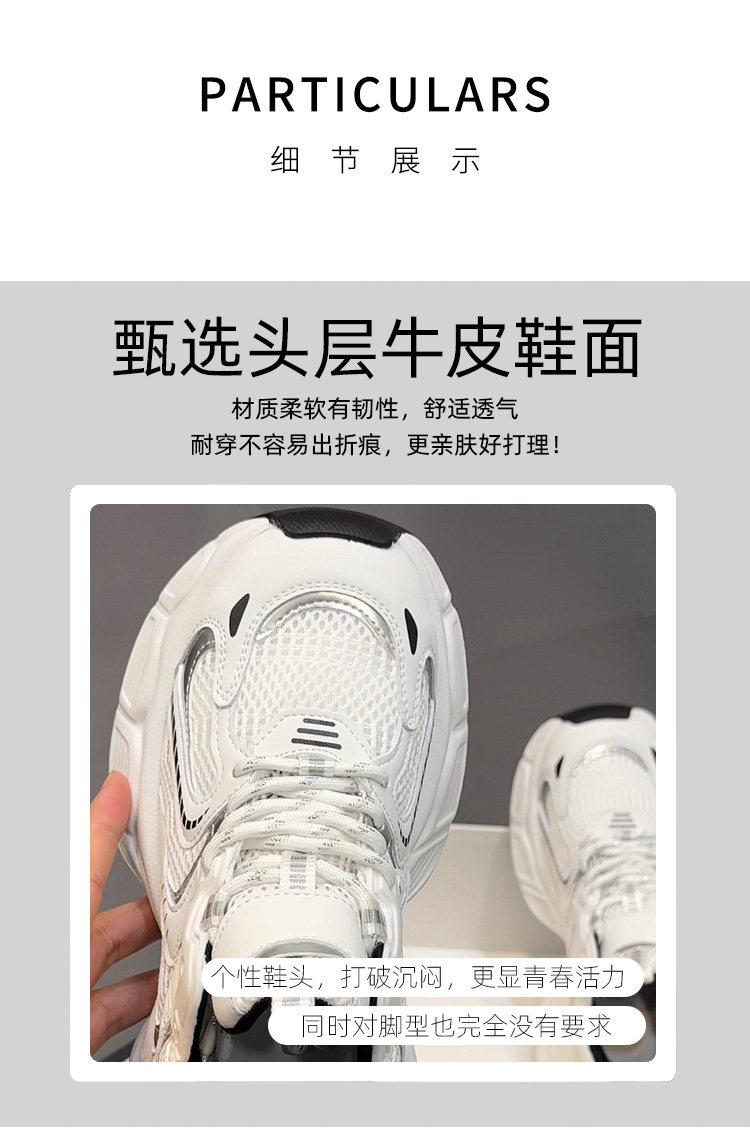 Hong Kong Genuine Leather Thick-Soled Dad Sneakers for Women 2025 Summer New Style Comfortable Versatile Lightweight Breathable Fashionable Casual Shoes