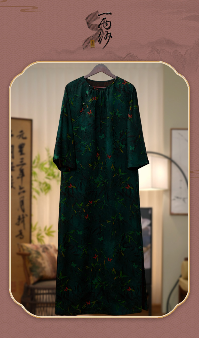 [Bamboo Butterfly ● Satin-Dress] 253113 Shen Haha Mulberry Silk Fragrant Cloud Gauze Robe New Chinoiserie 50