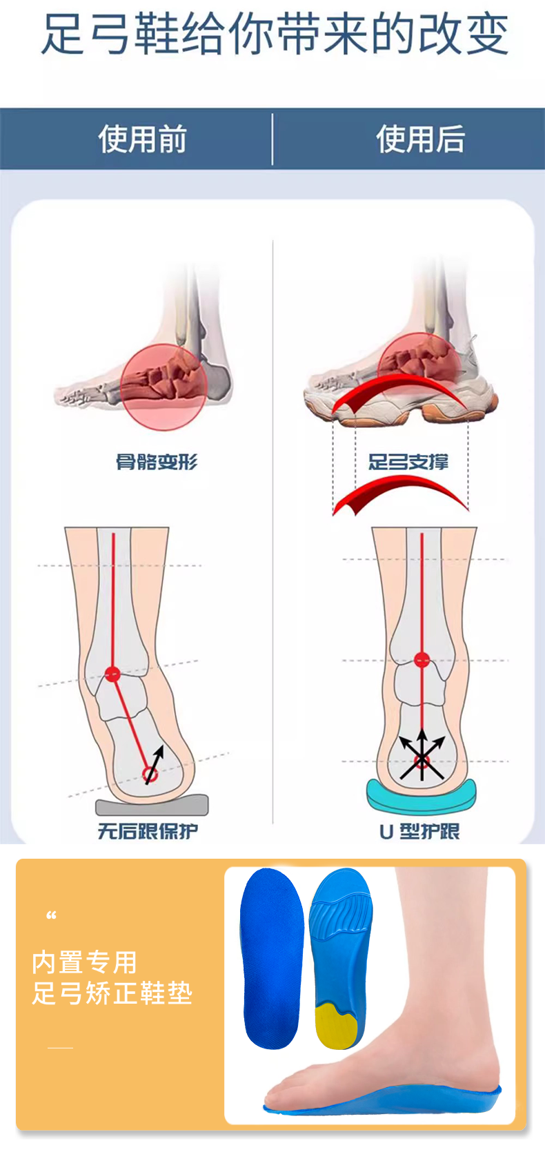 Special Men's Shoes for Flat Feet, Winter High-Top Arch Support Soft-Soled Sports Shoes, Corrective Leg-Shaped Running Shoes for Junior High School Students