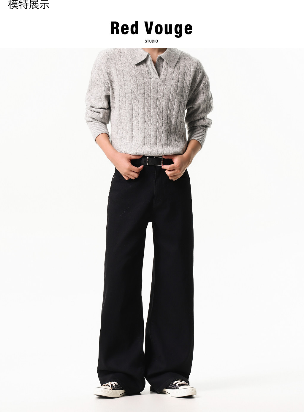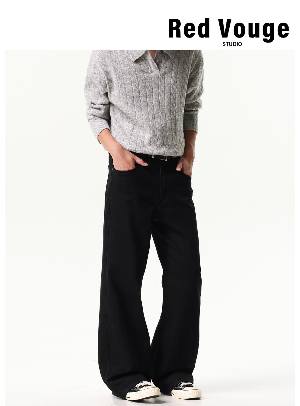 Red Vouge Basic Simple Commuter Washed Black Jeans Straight-Leg Loose Fit Cleanfit Long Pants