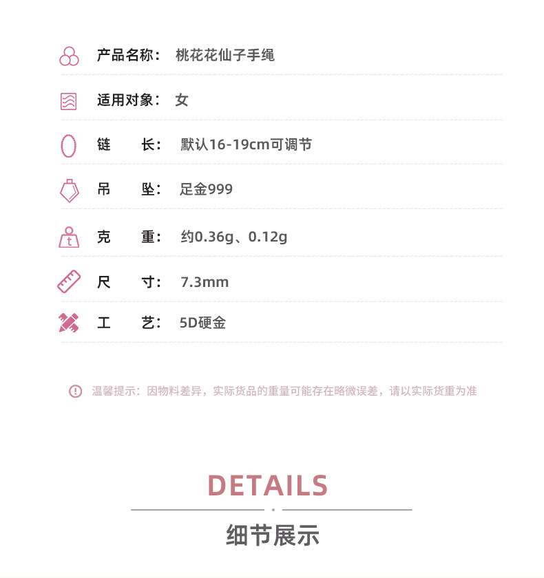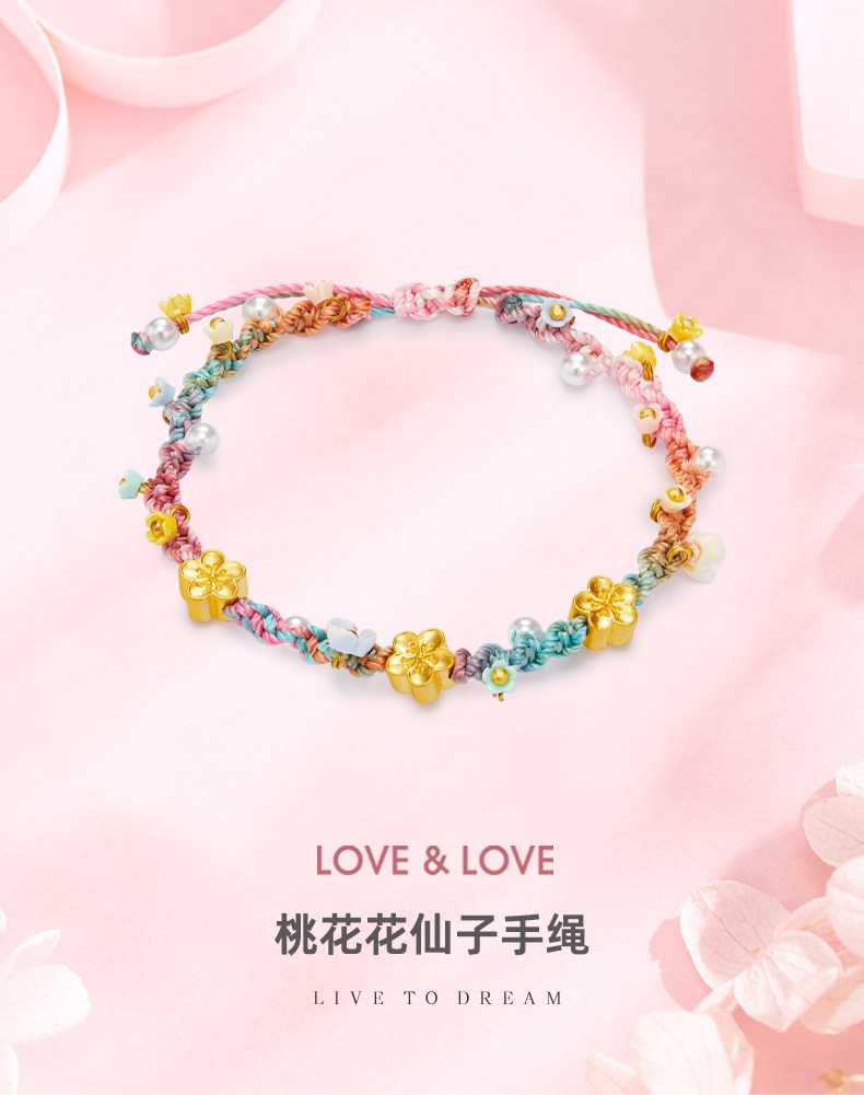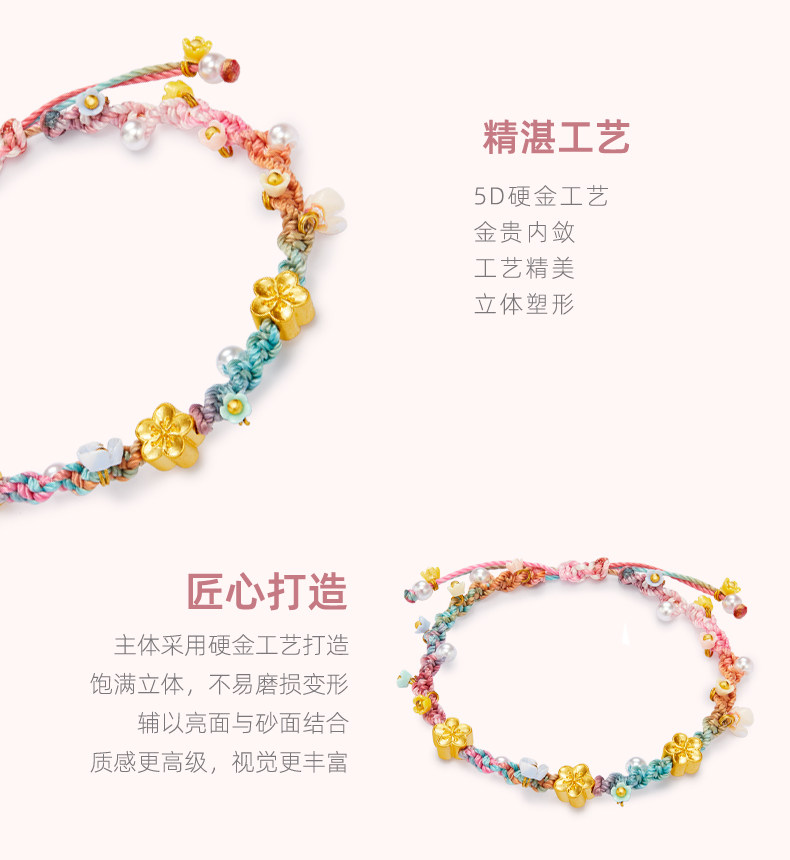 Love&Love Peach Blossom Fairy Bracelet Pure Gold 999 Gold Bracelet 5D Hard Gold Jewelry Gift for Girlfriend