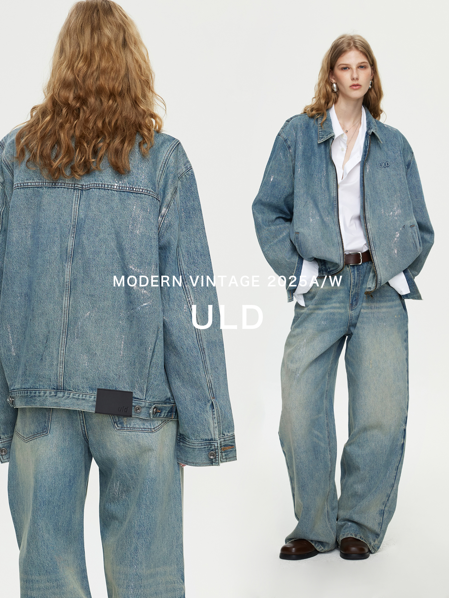 成衣使用酵磨漂、全幅喷色做旧等多重水洗工艺。