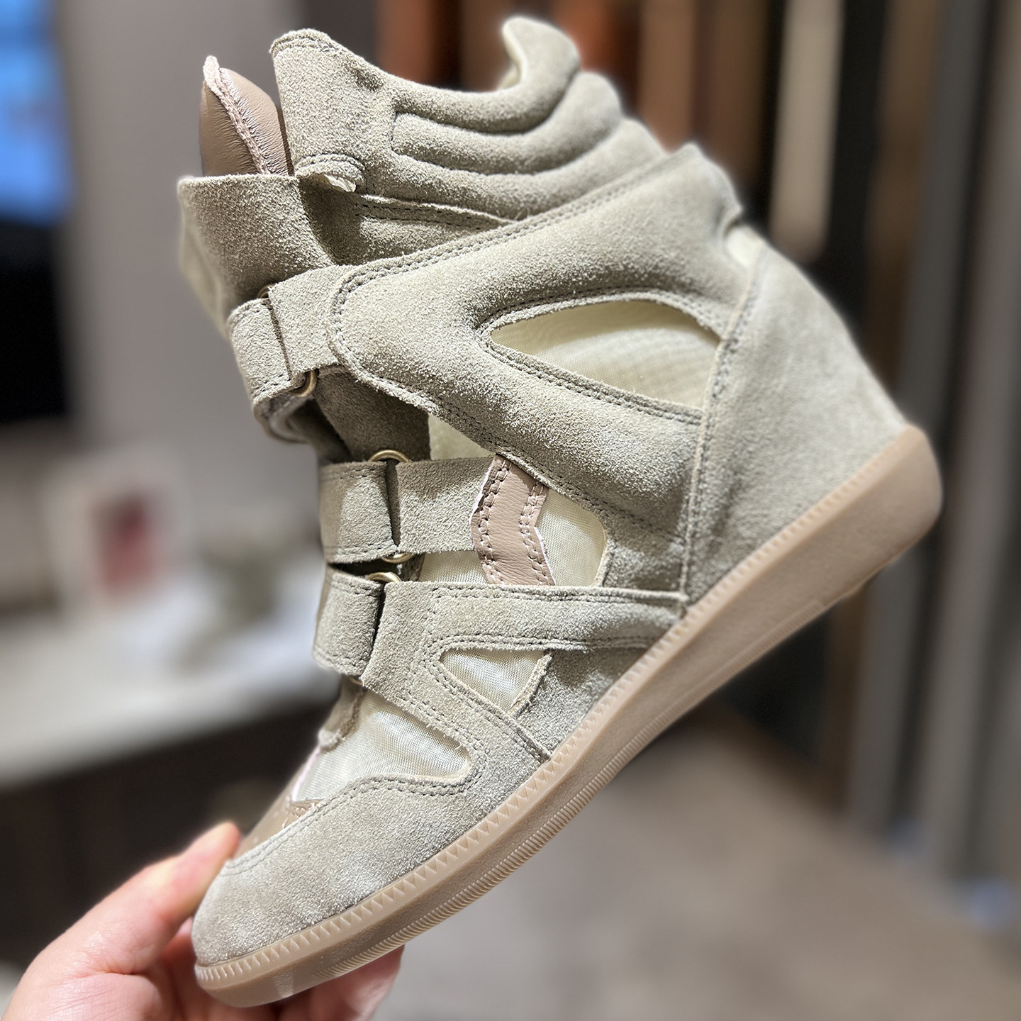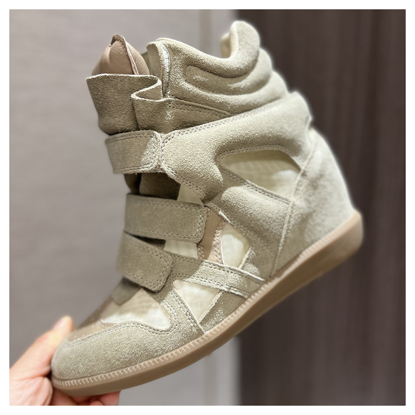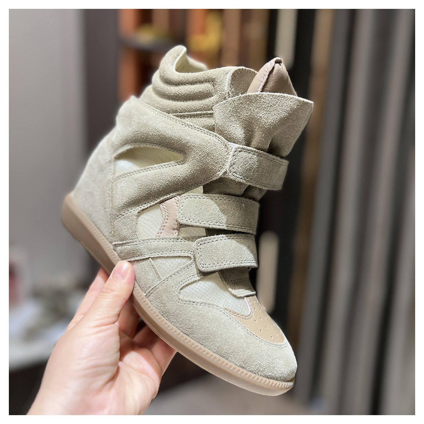 Breathable 2026 Summer Height-Increasing Shoes, High-Top Color-Blocked Round-Toe Flat Casual Shoes, Versatile Velcro Sneakers for Women
