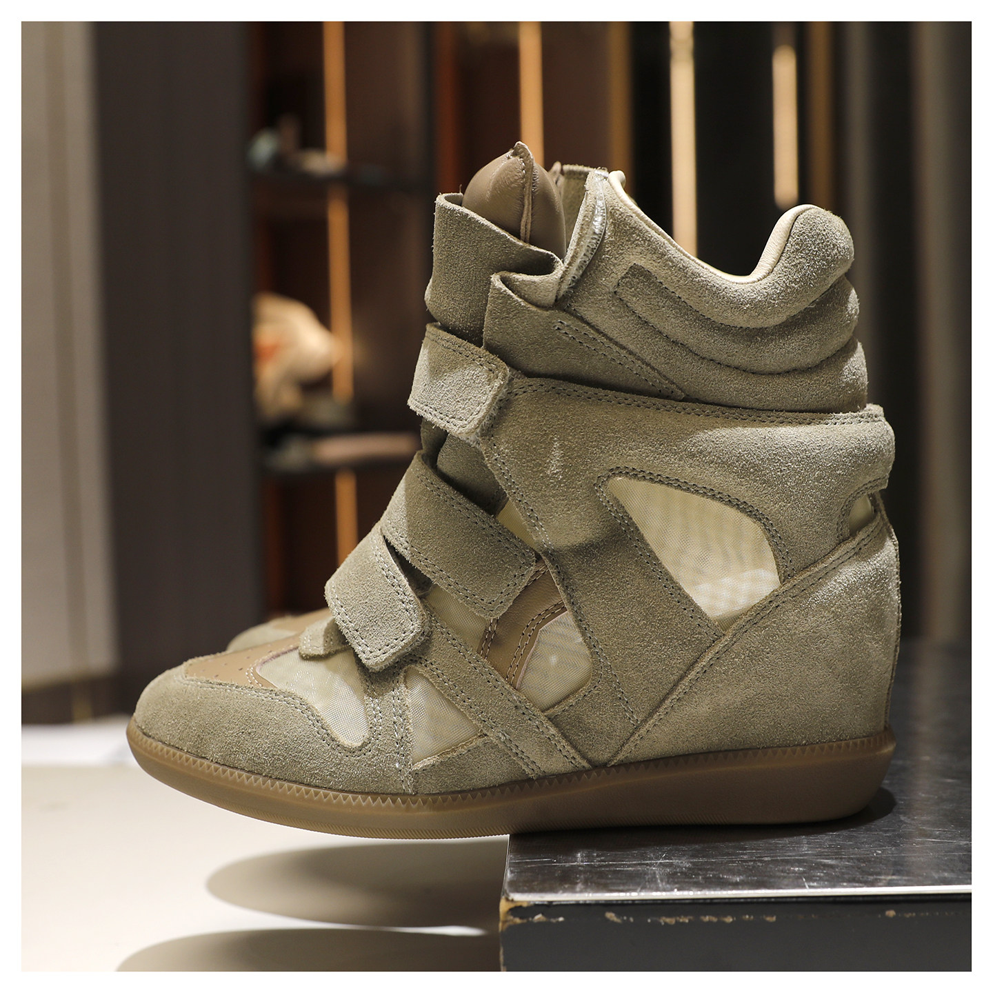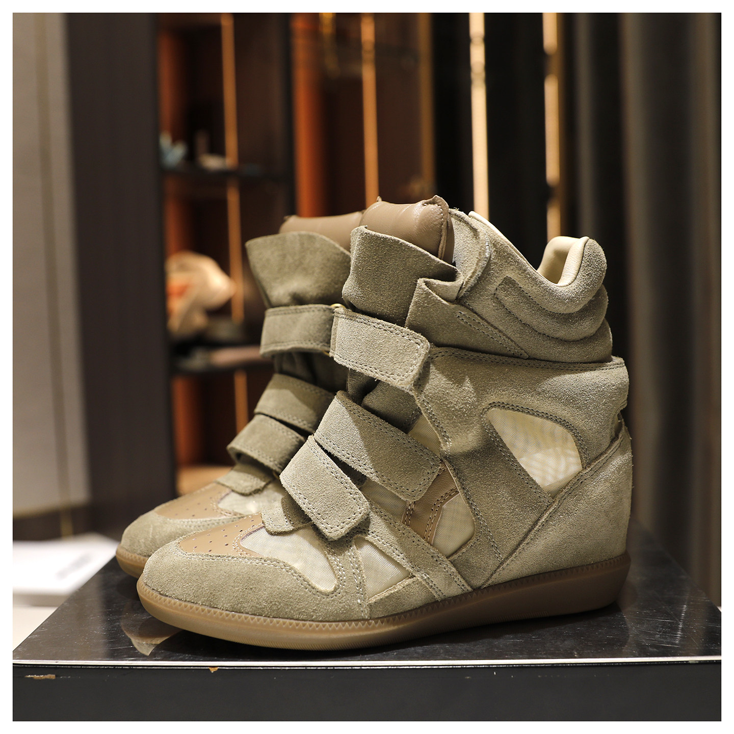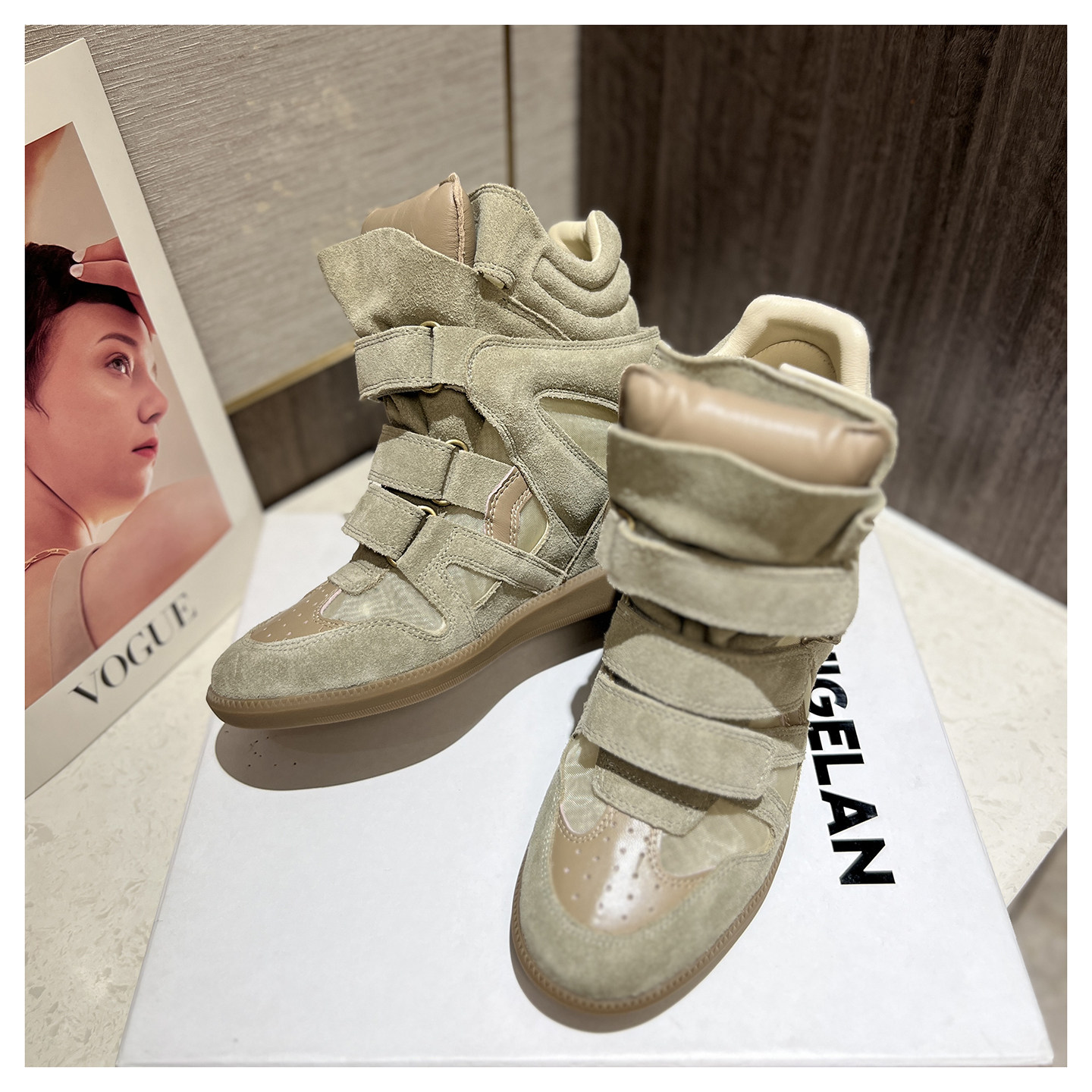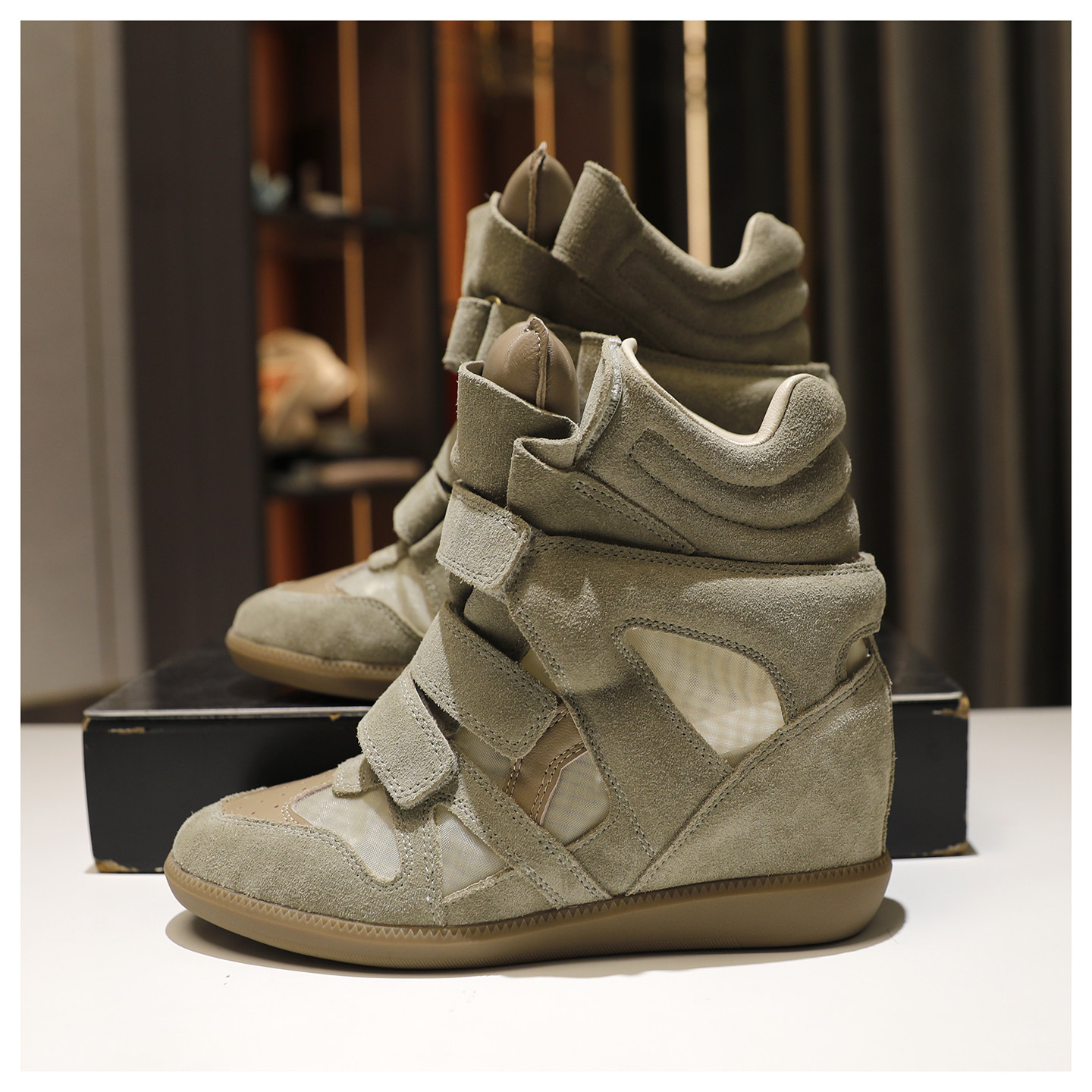 Breathable 2026 Summer Height-Increasing Shoes, High-Top Color-Blocked Round-Toe Flat Casual Shoes, Versatile Velcro Sneakers for Women