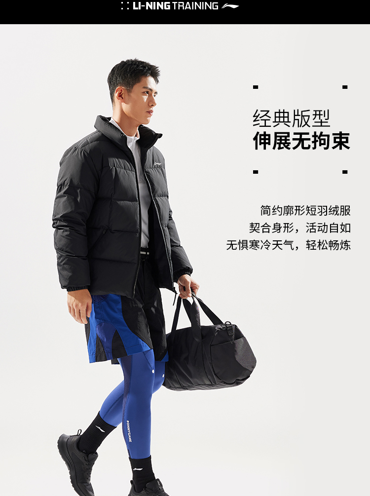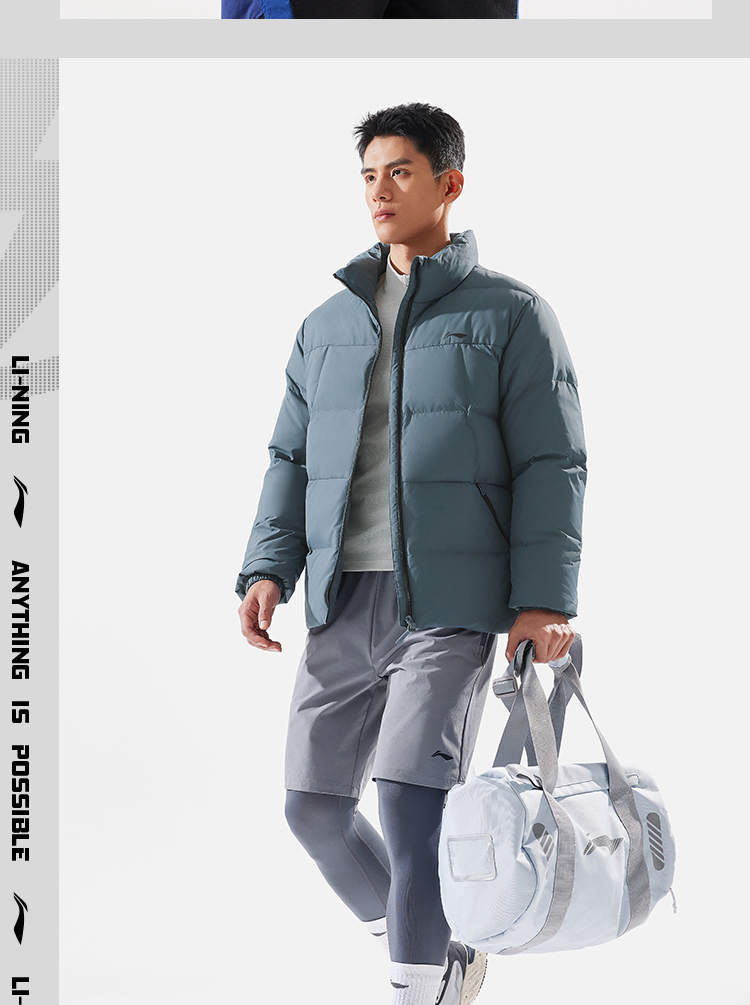 Li-Ning Men's down Jacket Winter 2025 New Short Style Fitness Stand-Up Collar Top Warm Thickened Sportswear