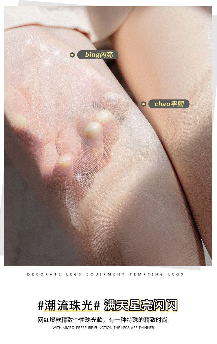 Han Chun Pearl Sheen Stockings 0D Ultra-Thin Spring/Summer Stockings for Women, Anti-Snagging, Fine Sparkling Starlight, Sexy Pure Desire Black Pantyhose