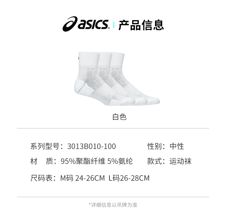 Asics Men's and Women's Sports Socks Logo Jacquard Three Pairs of Sports Socks Comfortable and Breathable Couple Socks