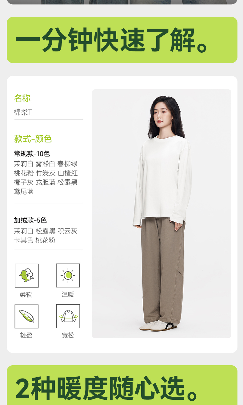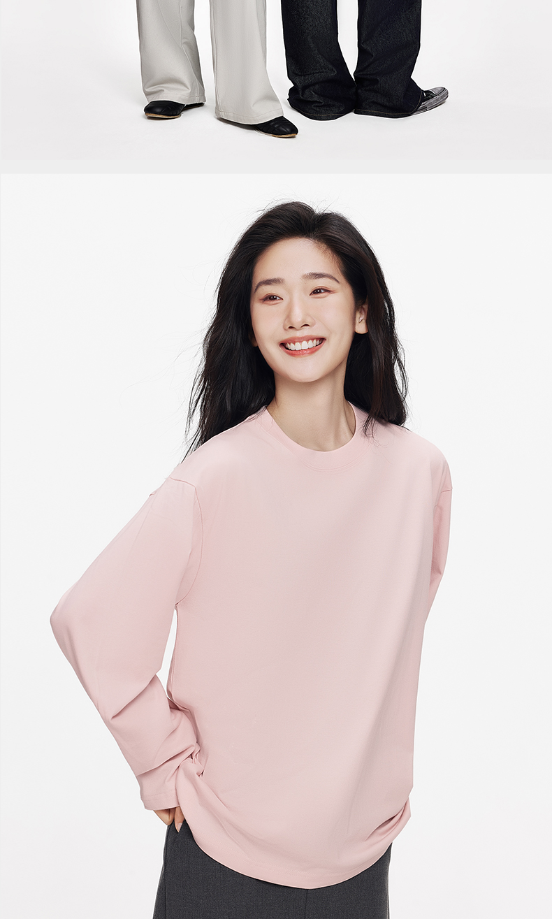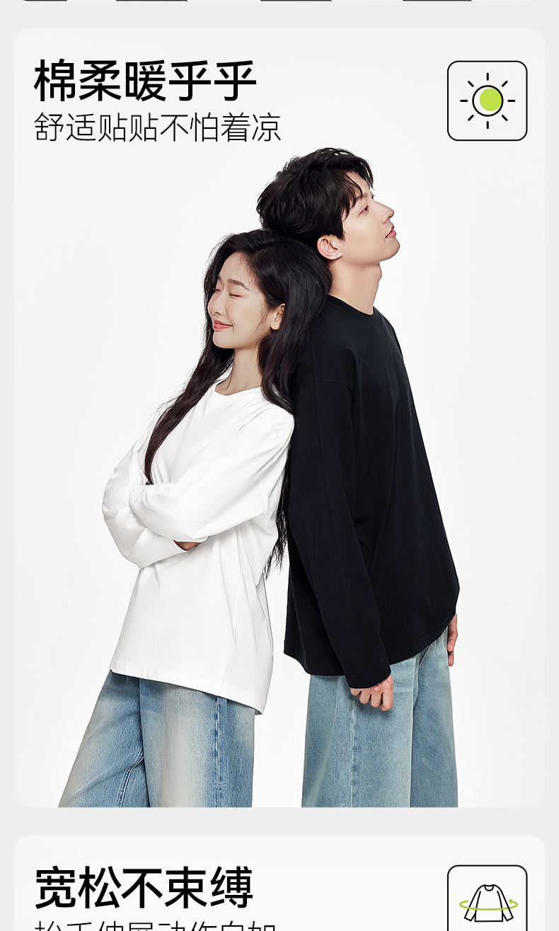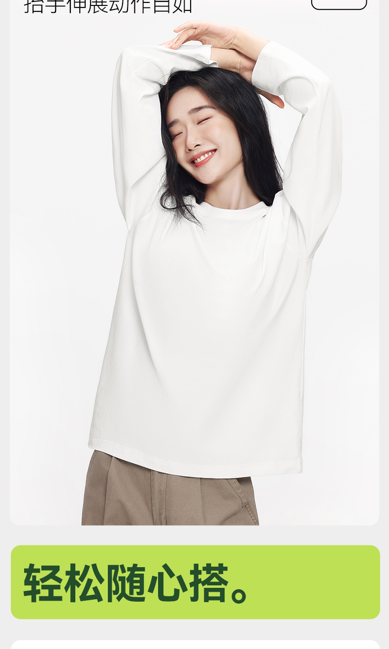 The Aesthetics of Cotton: White Inner Layer Base Shirt for Women, Autumn and Winter Sweatshirt, Pure Cotton, Pure White Long-Sleeve T-Shirt, Loose Top