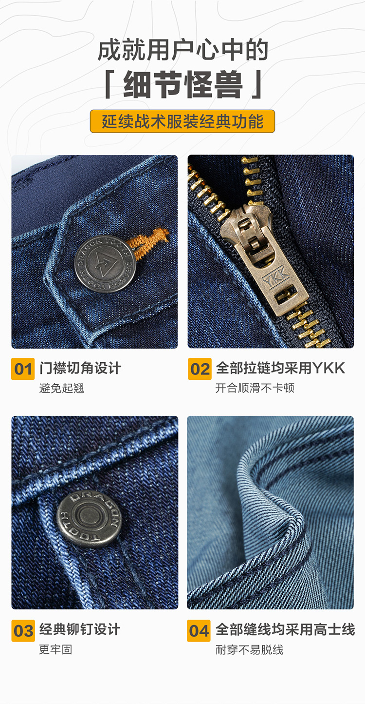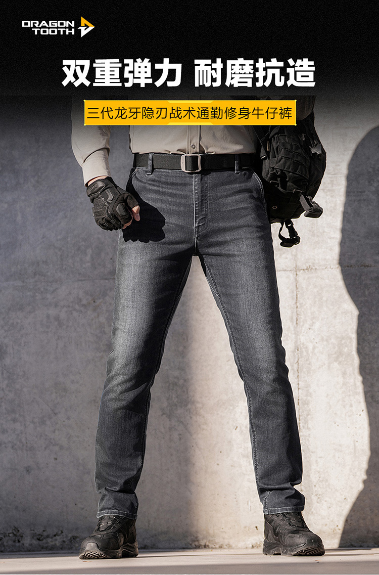 Third-Generation Dragon Tooth Hidden Blade Tactical Commuting Slim-Fit Jeans, Comfortable, Casual, Wear-Resistant, Commuting to Work, Solid Color, Simple