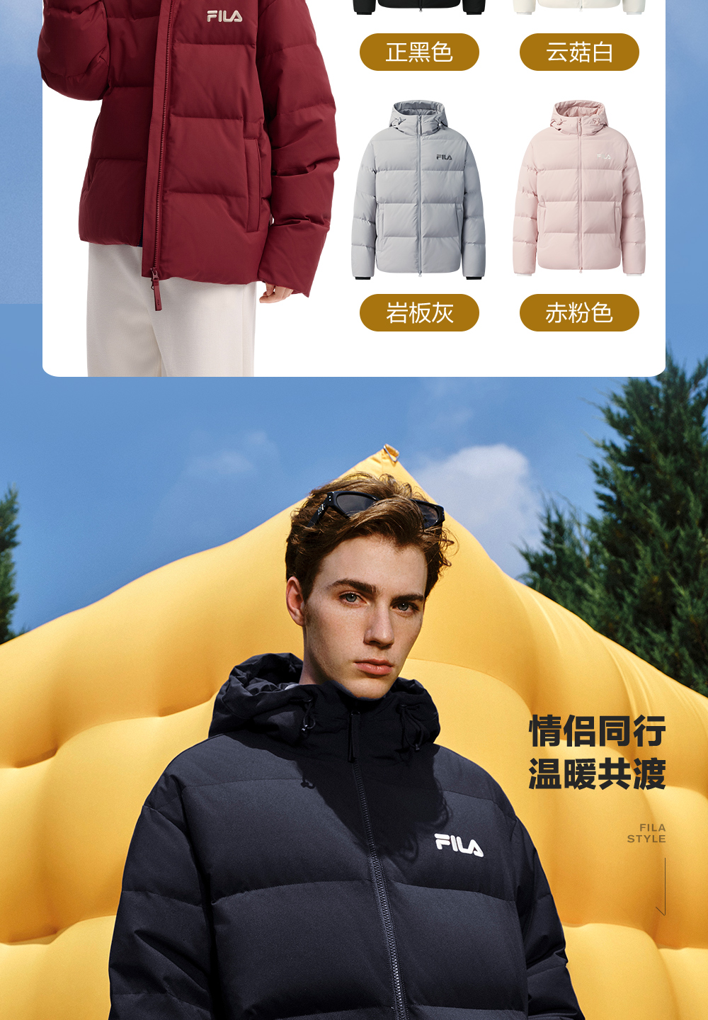 Fila Rgb down Jacket | Fila Couple's Thick Coat for Women, 2025 Winter New Style, Sports, Warm, Windproof, Men's Outdoor.