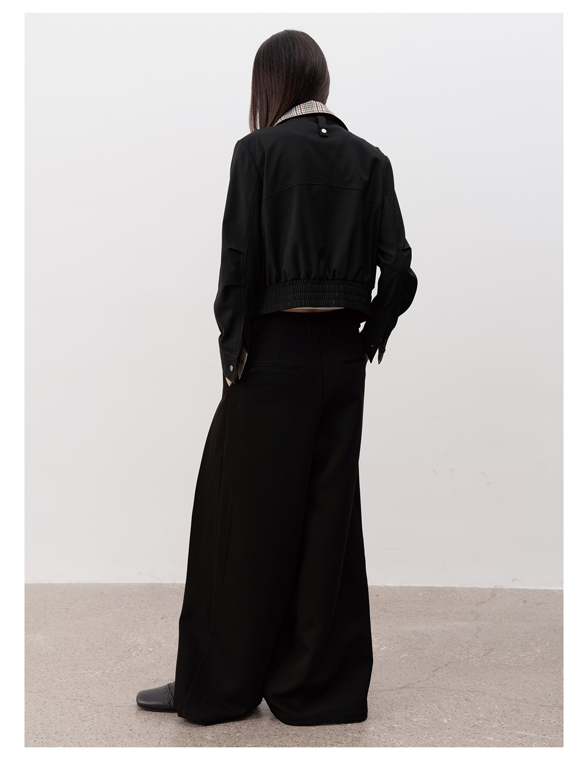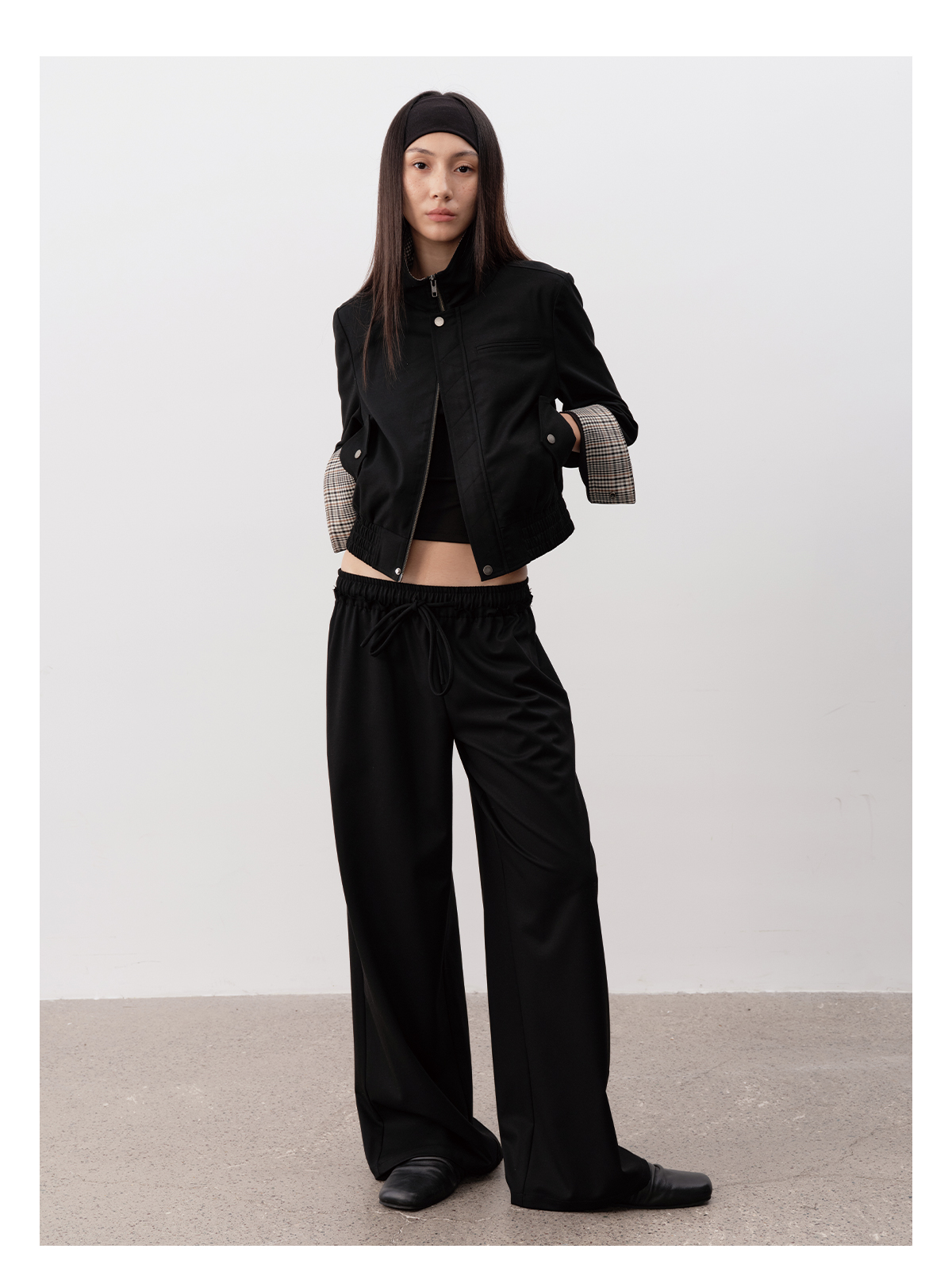 Jcaesar Women Plaid Patchwork Black Jacket, Short and Narrow Version, Multiple Wearing Styles, Studded Decoration