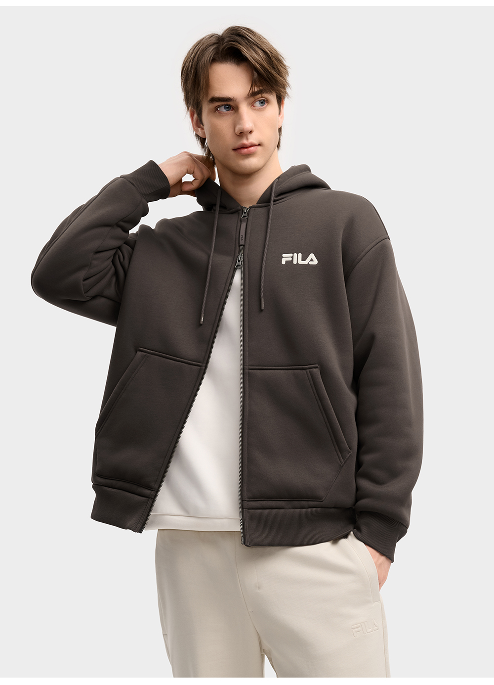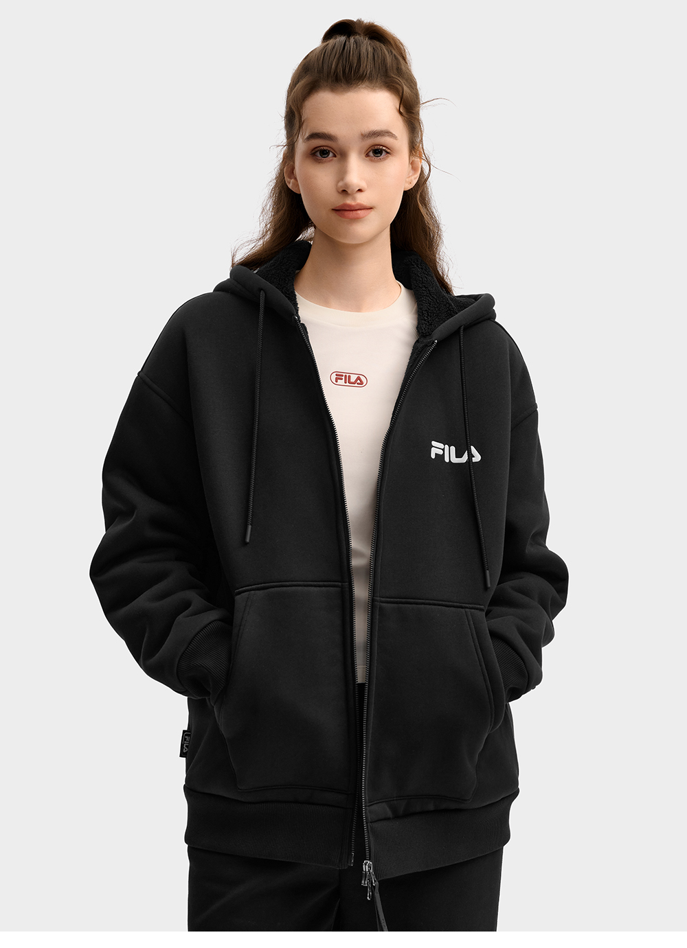 Fila Official Couple Style Knitted Hooded Jacket 2025 Winter New Casual Loose Velvet Top
