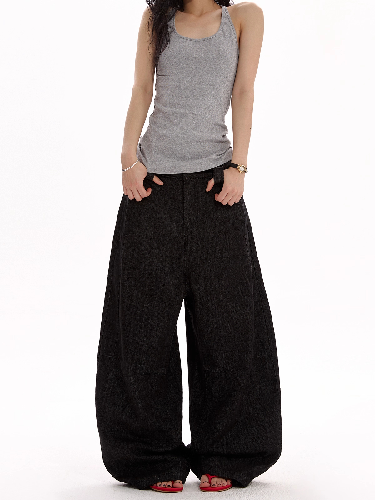 American Retro Deconstructed Wide-Leg Knee-Pleated Raw Denim Jeans for Men and Women, Baggy Loose Straight-Leg Denim Pants