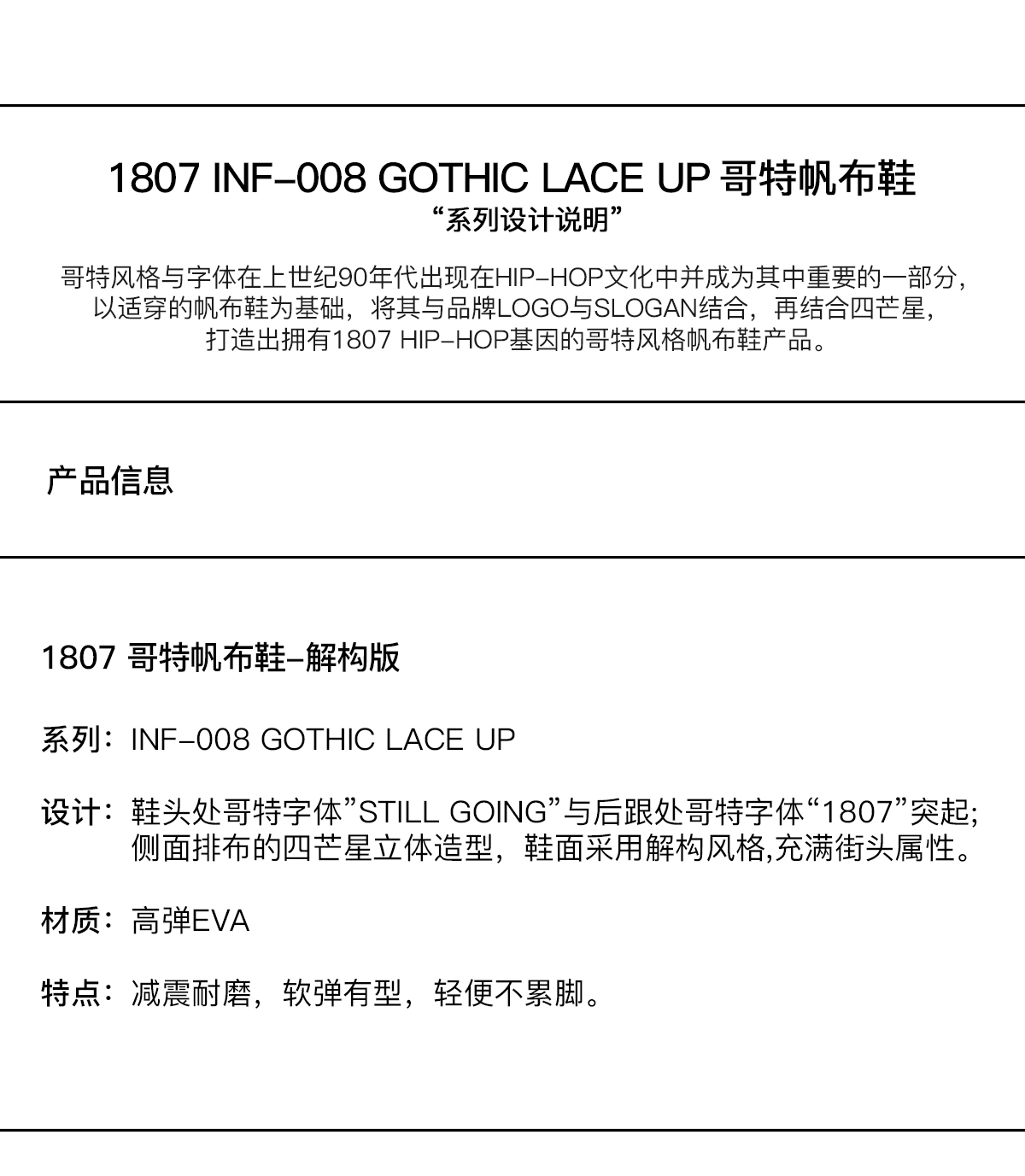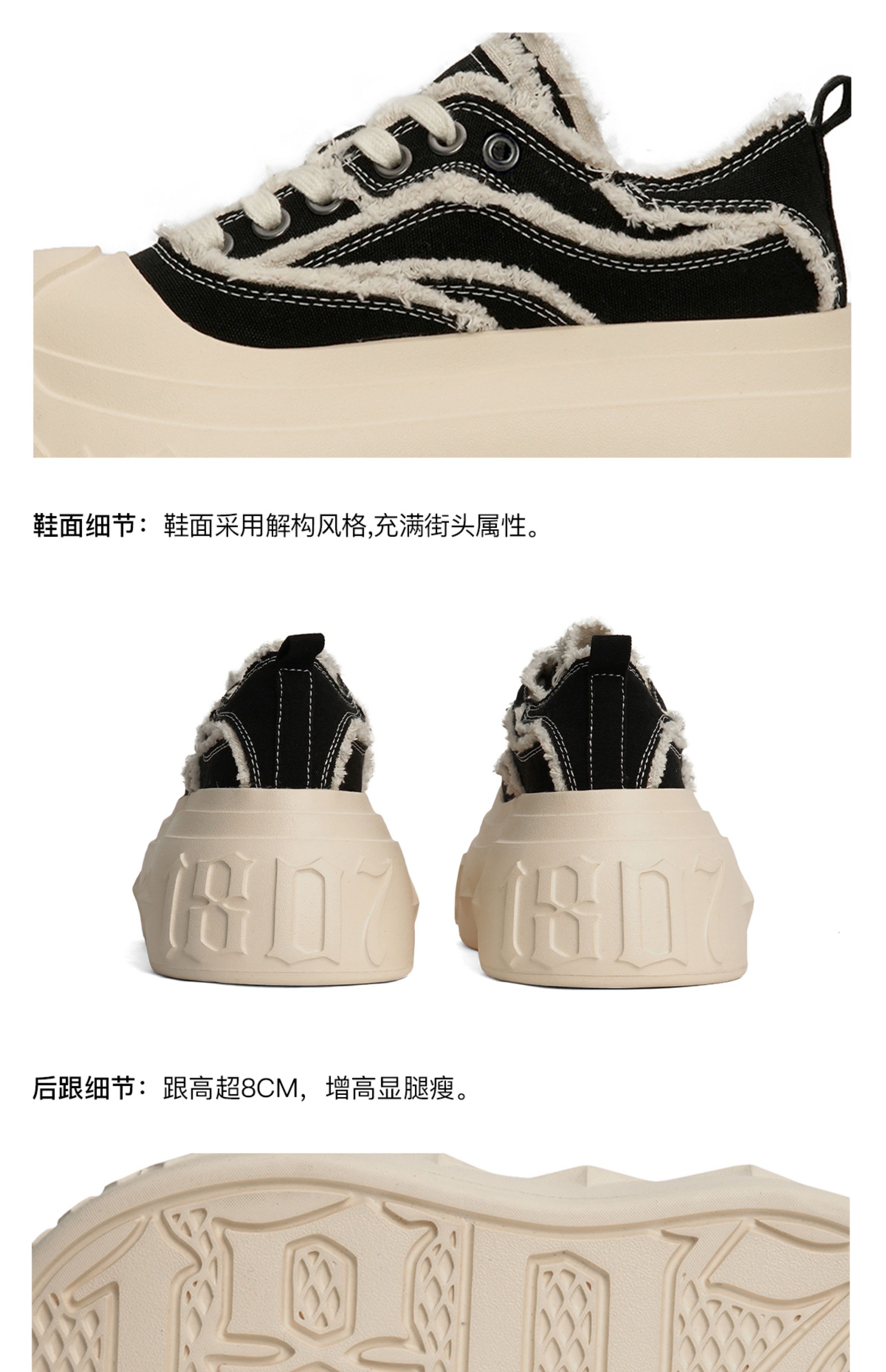 1807Inf-008 Gothic Lace up Gothic Thick-Soled Canvas Shoes Deconstructed Version Height-Increasing Slimming Casual Trendy