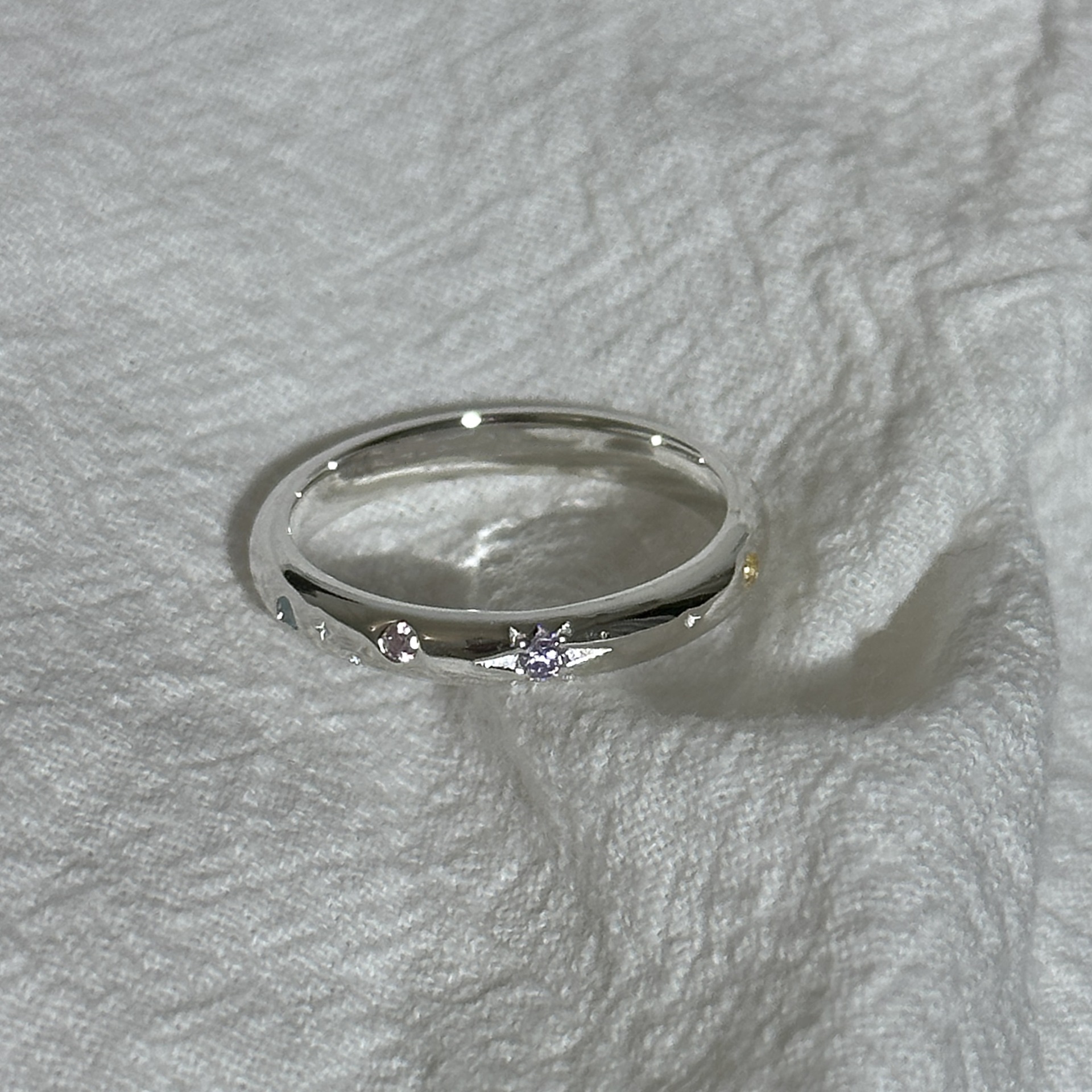 S925 Sterling Silver Bubble Starburst Colored Diamond Ring Eight-Pointed Star Niche Design Light Luxury Ring for Women Closed Ring Cute