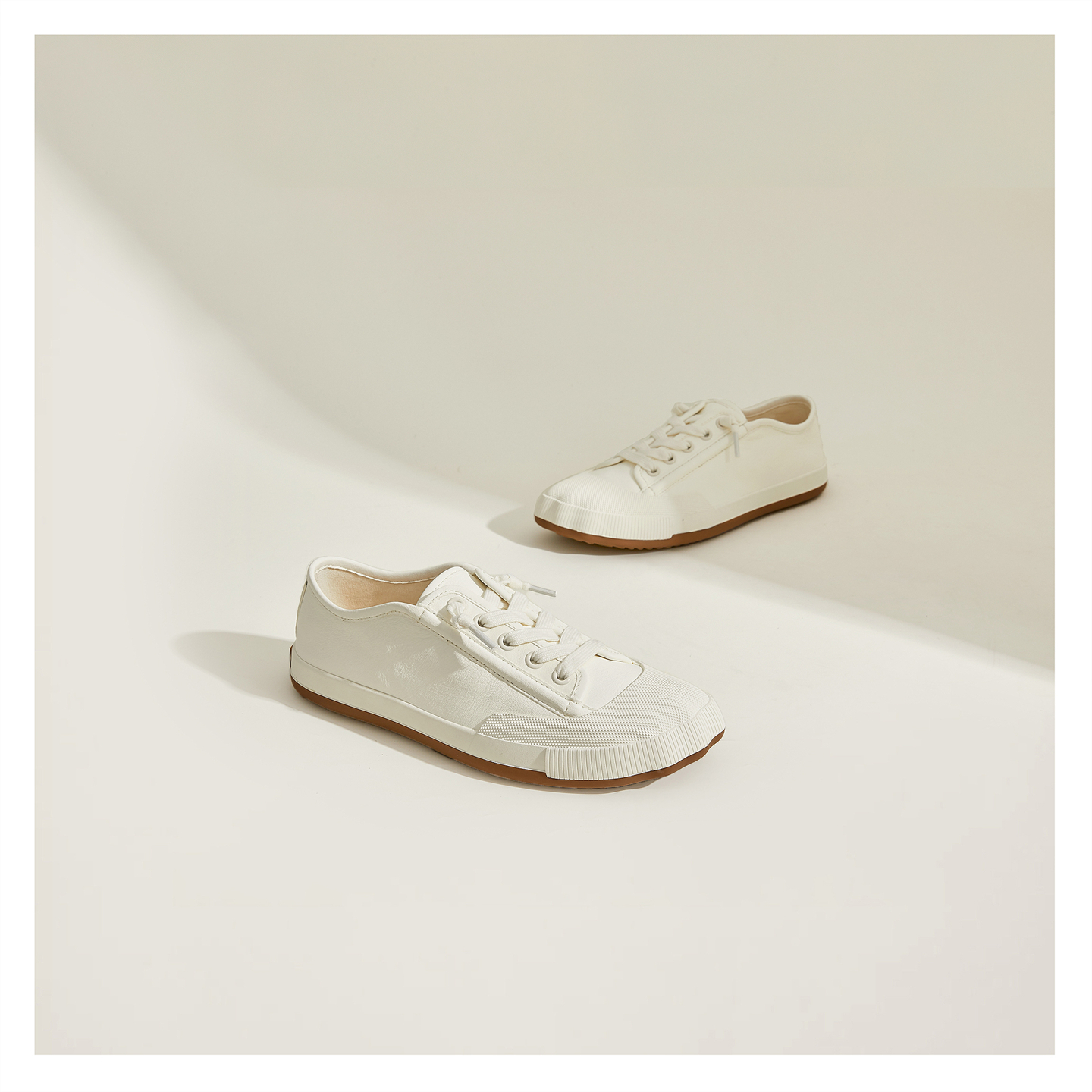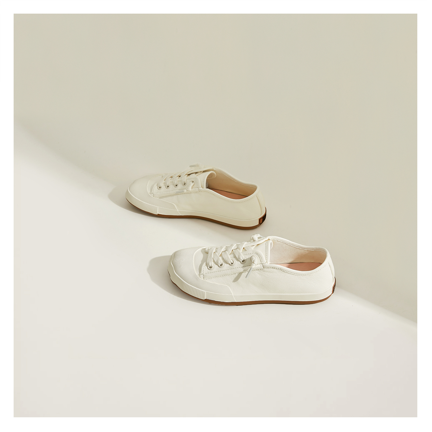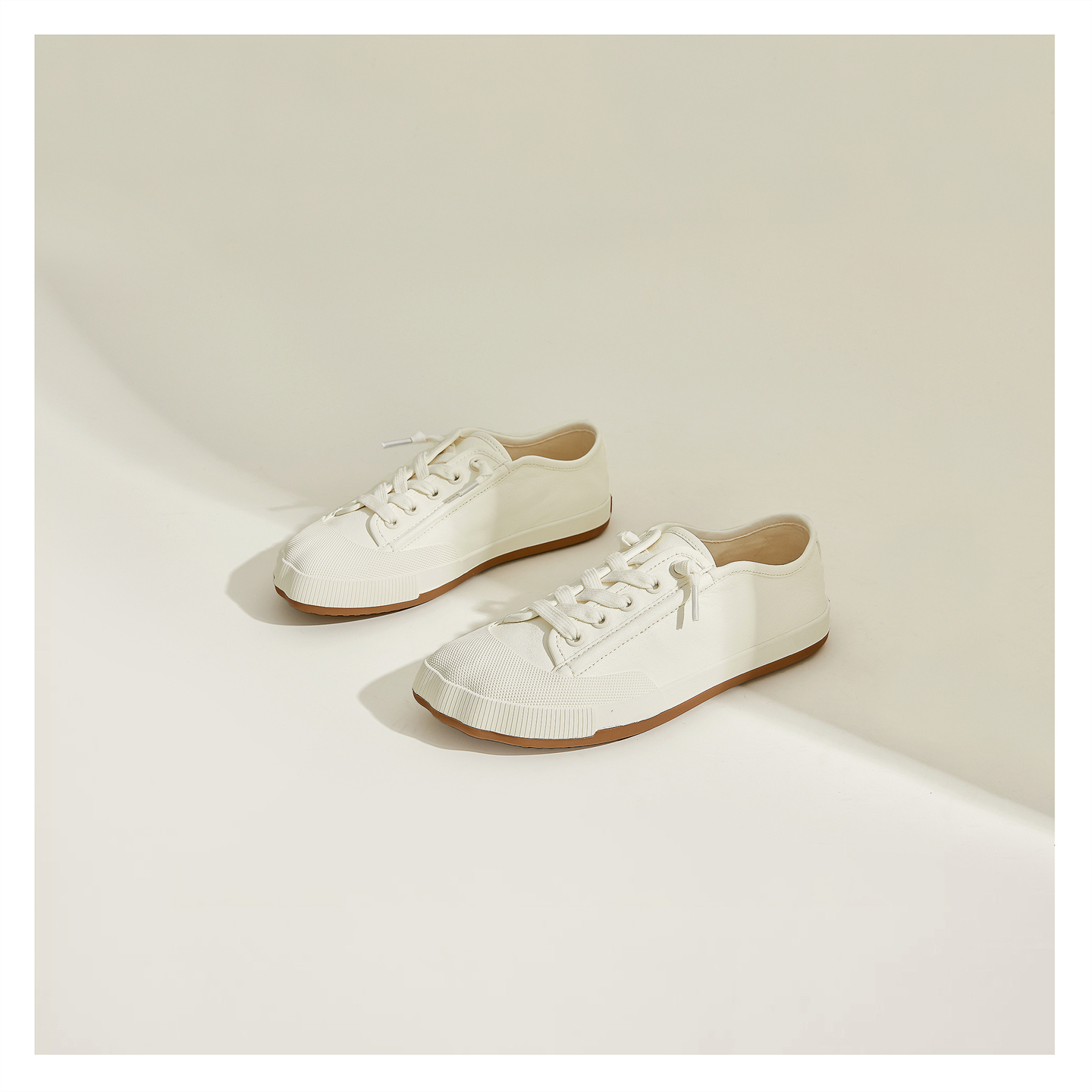 Miss Lu's Handmade Shoes, Irregular Design Toe White Sneakers for Women, Retro Forrest Gump Shoes, Water-Dyed Cowhide Casual Shoes