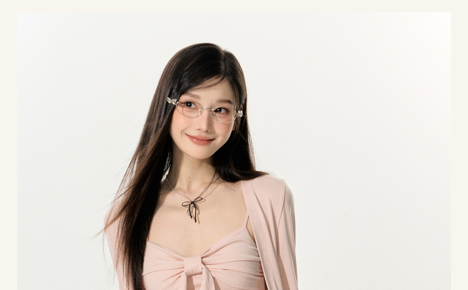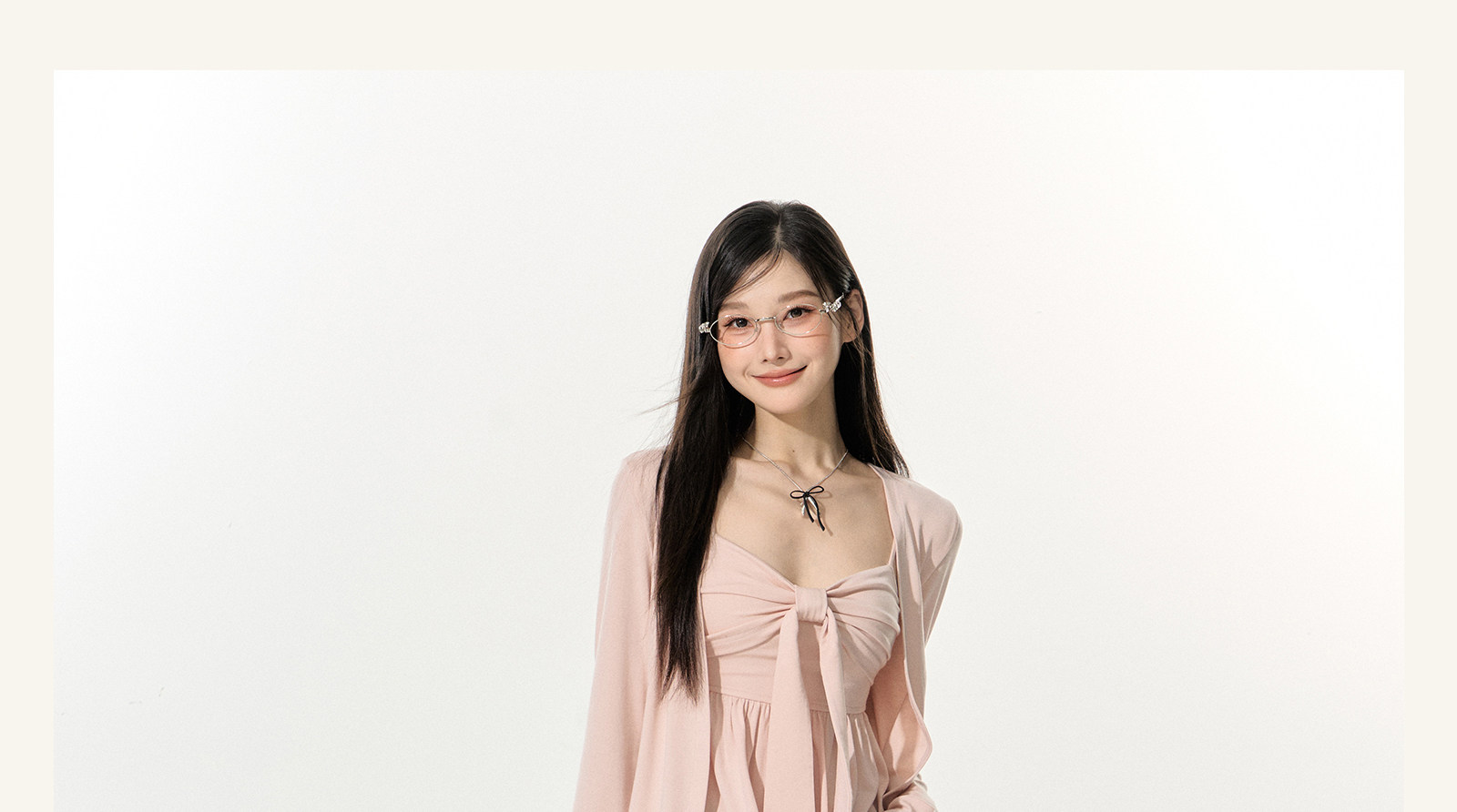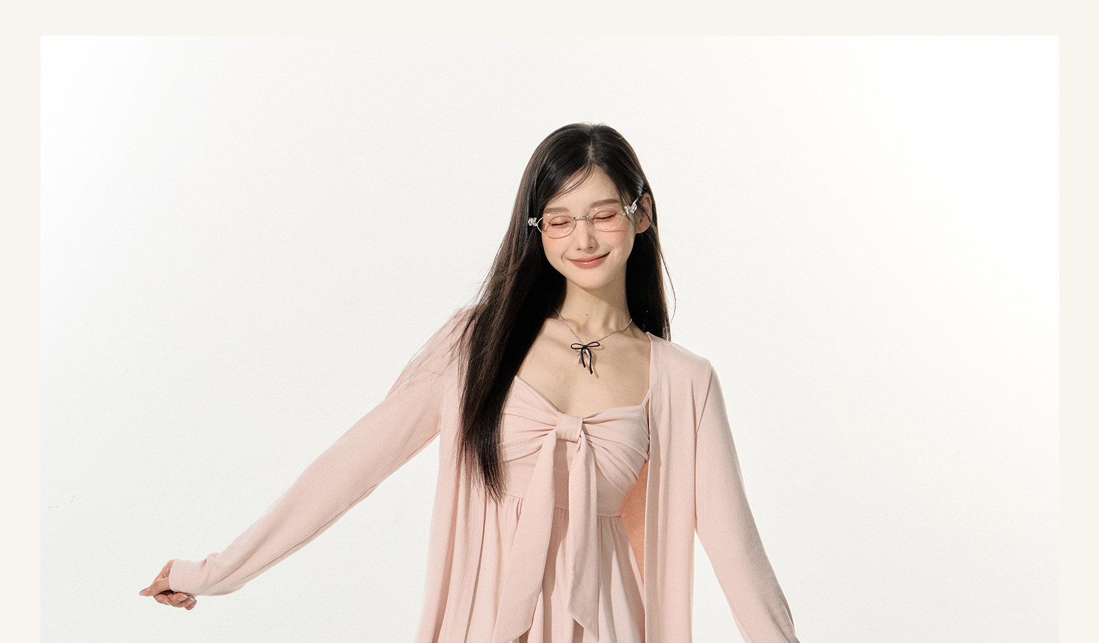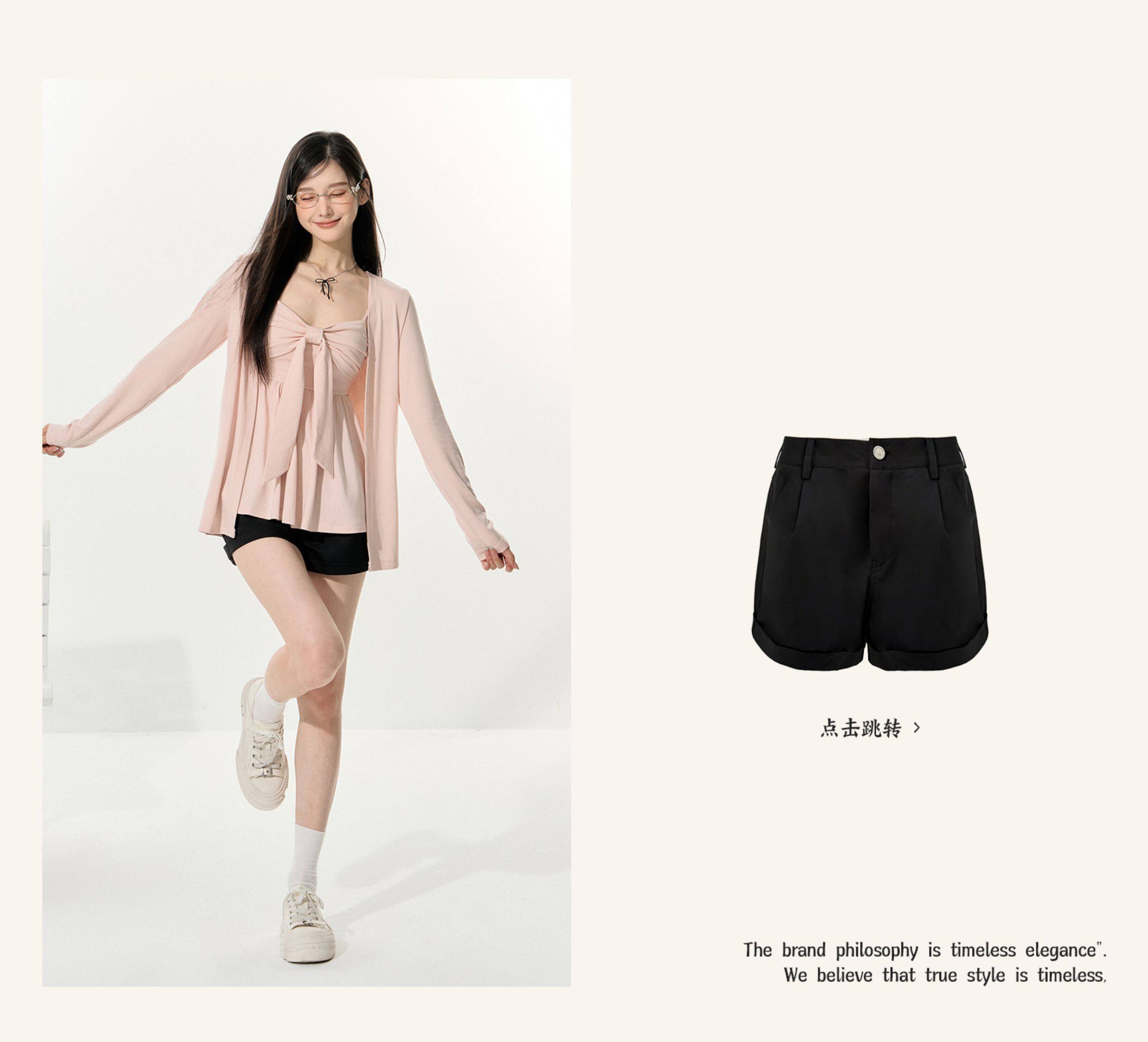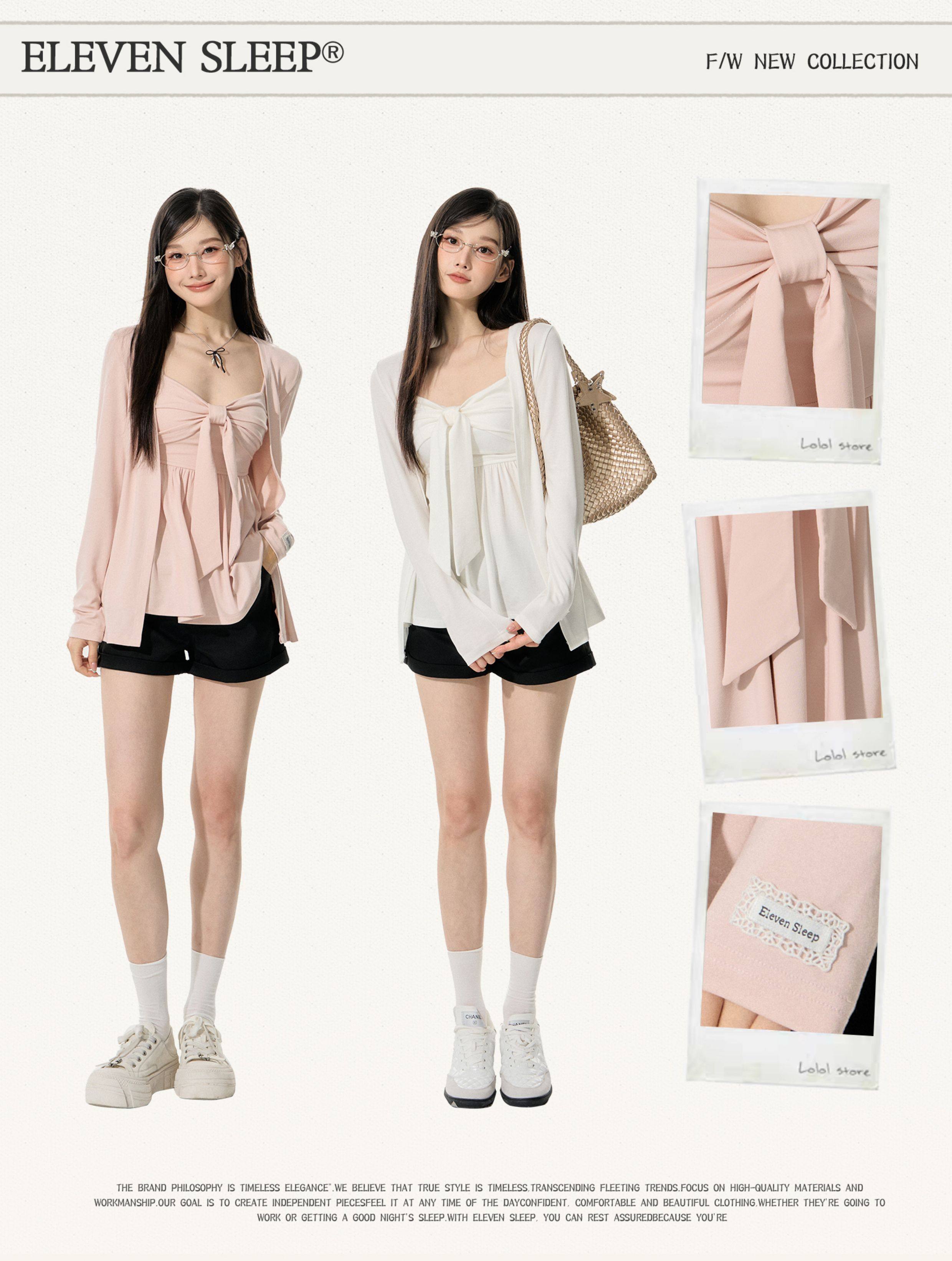 Eleven Sleep Early Autumn Pink Long-Sleeved Knitted Cardigan Jacket Tube Top Vest Suspender Two-Piece Top for Women