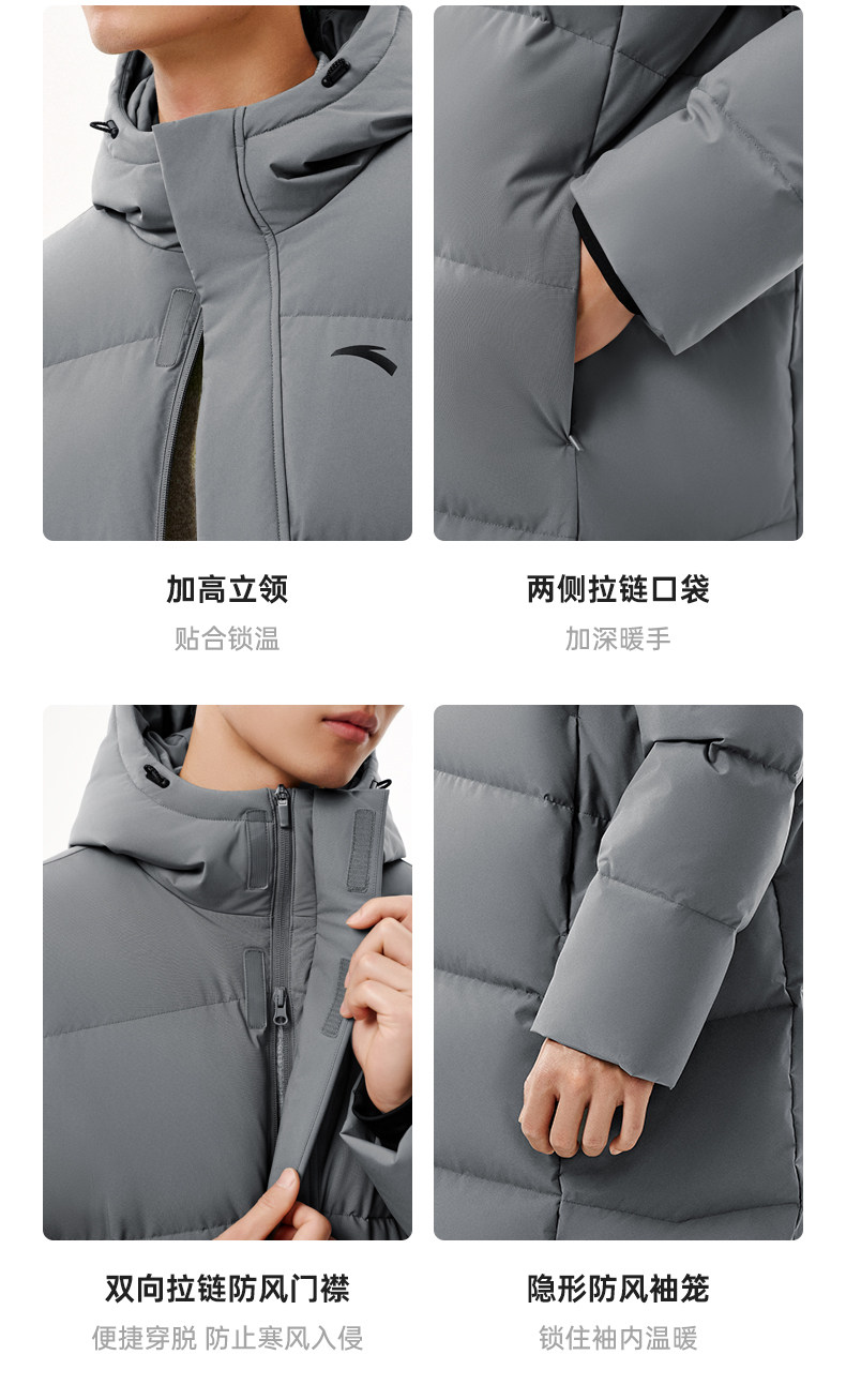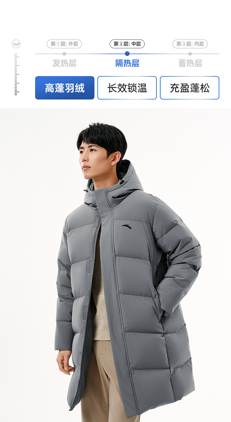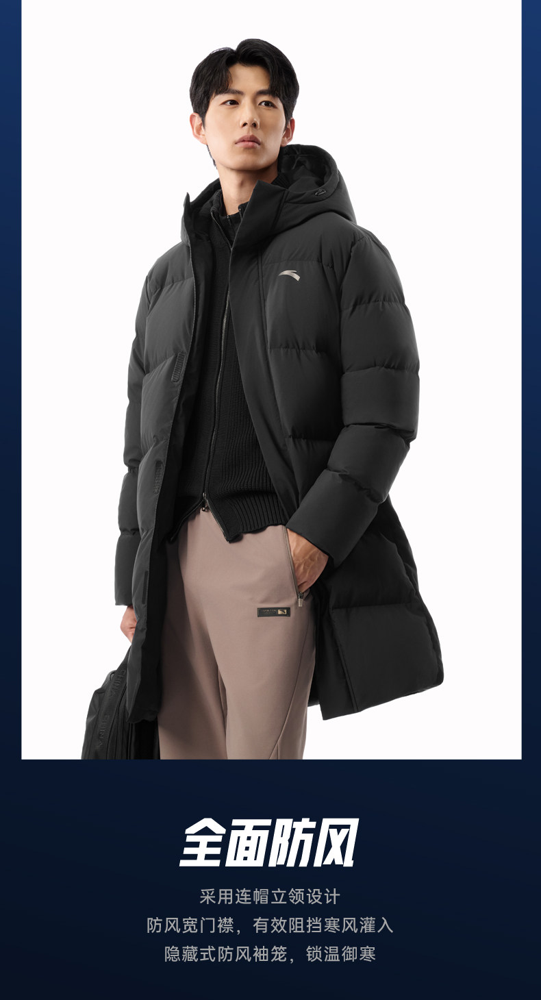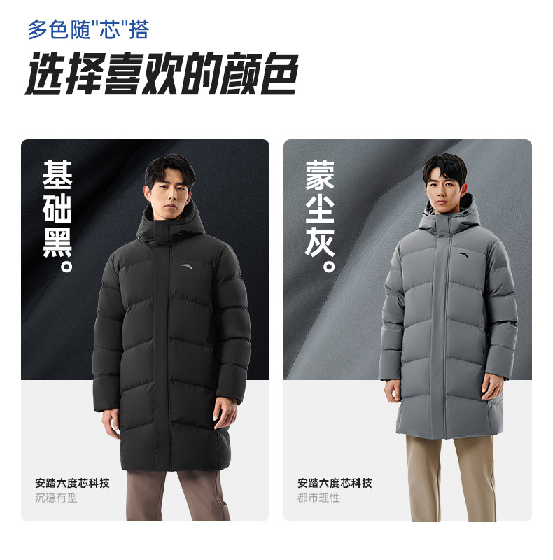 Anta Six-Degree Core down Jacket | Mid-Length Duck down Warm Cotton Coat for Men, New Spring Model, Cold-Proof and Thickened Outerwear