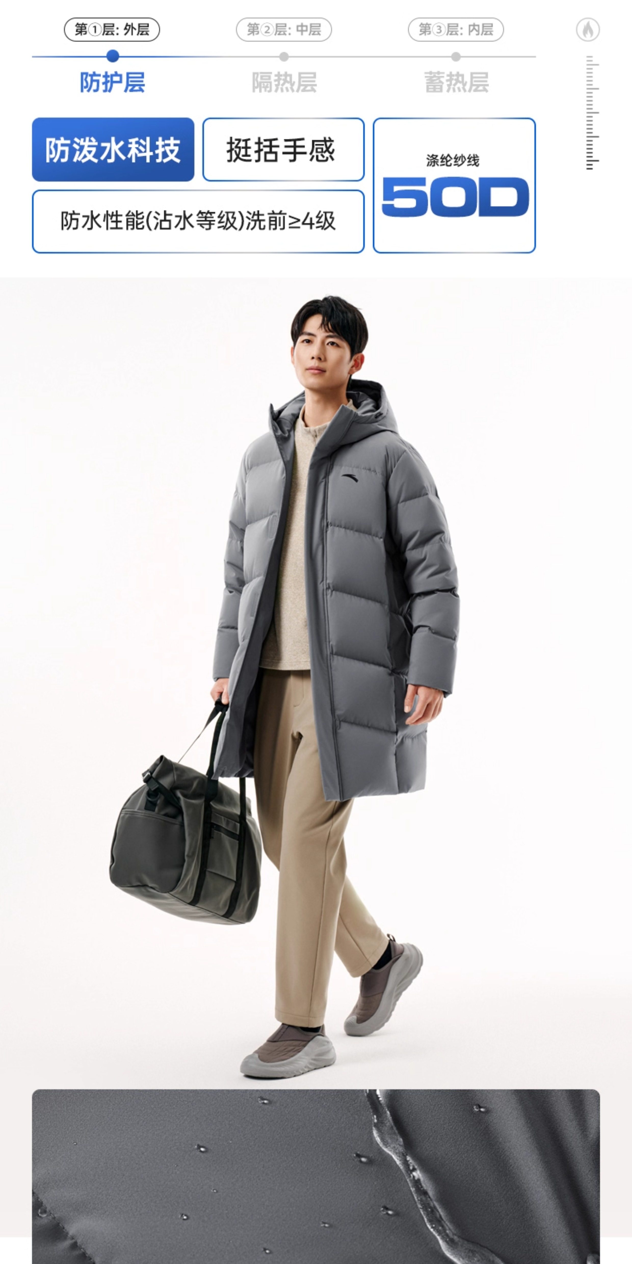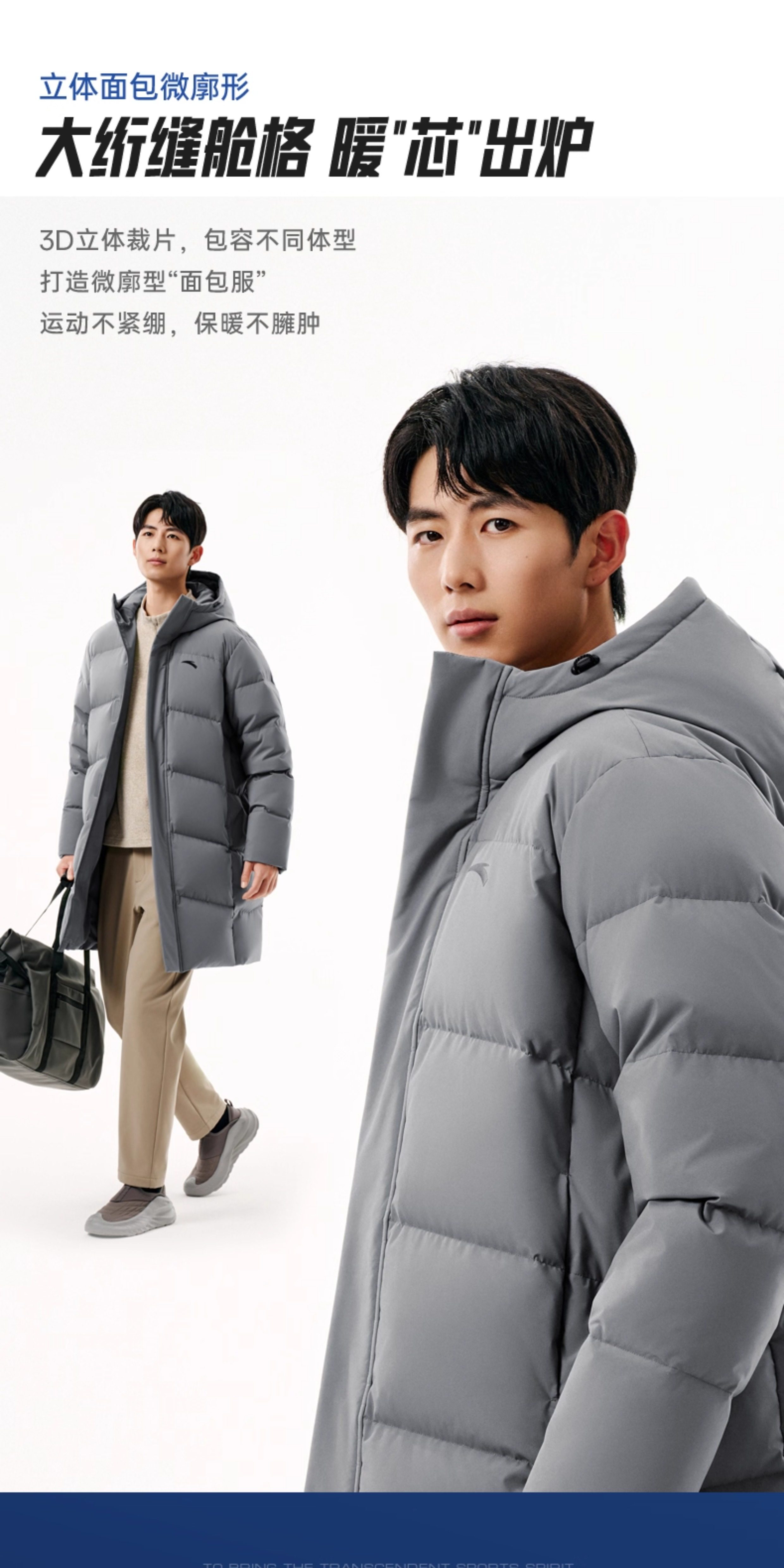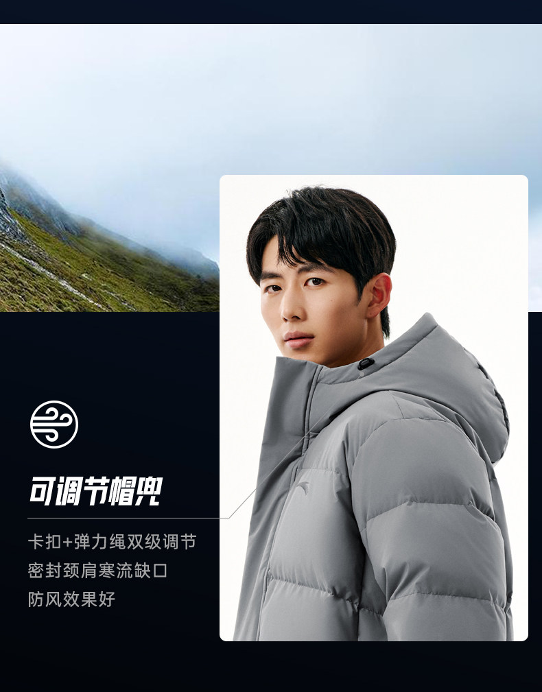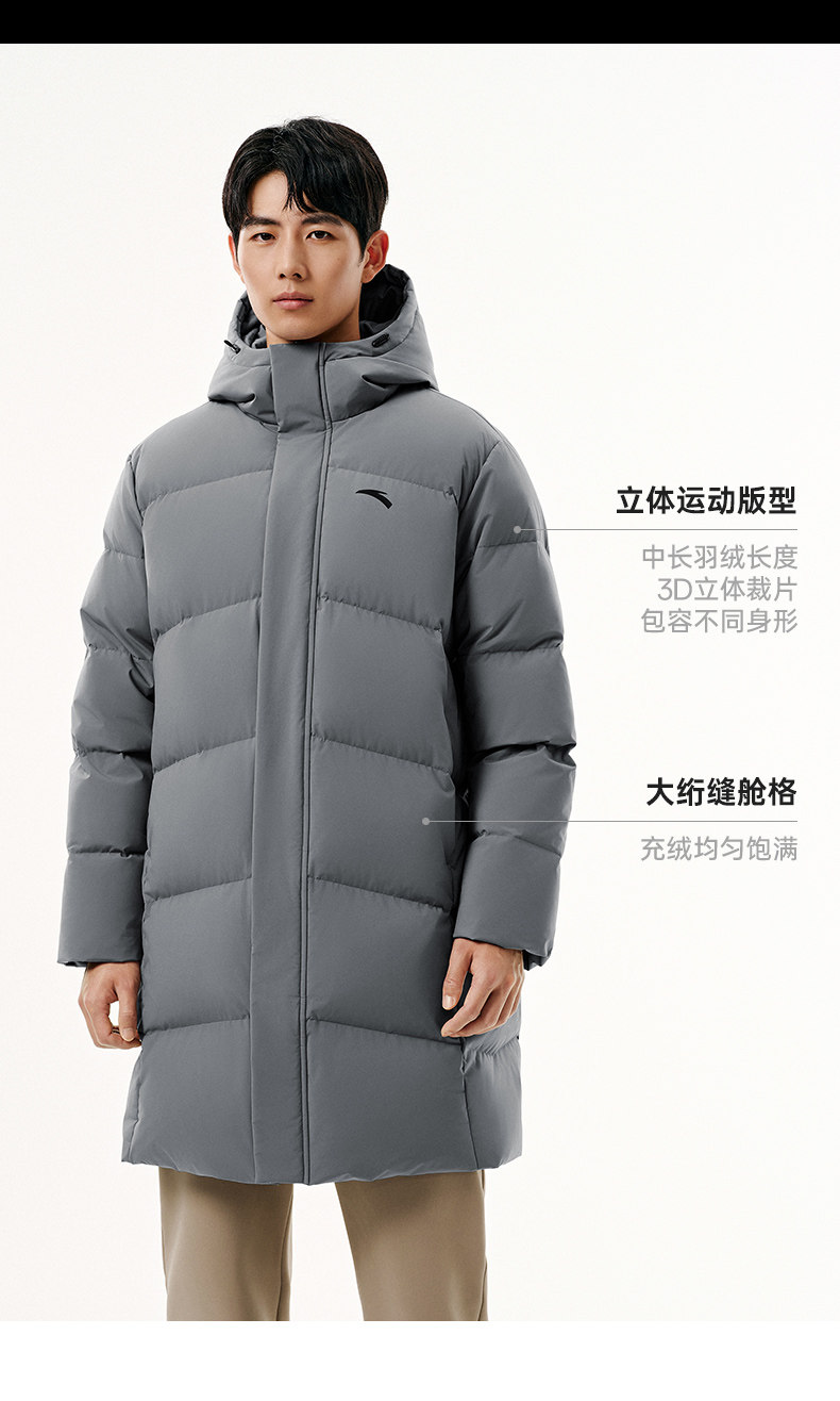 Anta Six-Degree Core down Jacket | Mid-Length Duck down Warm Cotton Coat for Men, New Spring Model, Cold-Proof and Thickened Outerwear