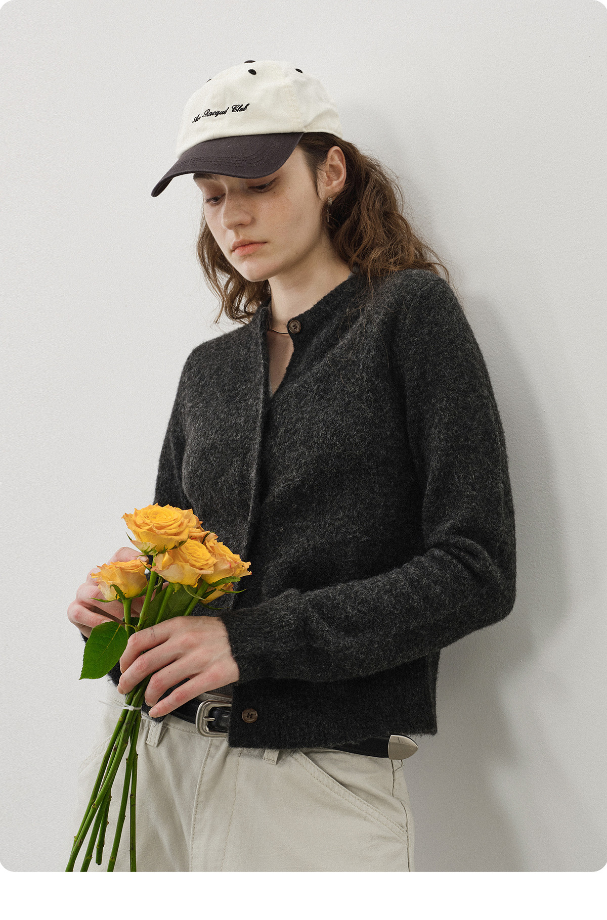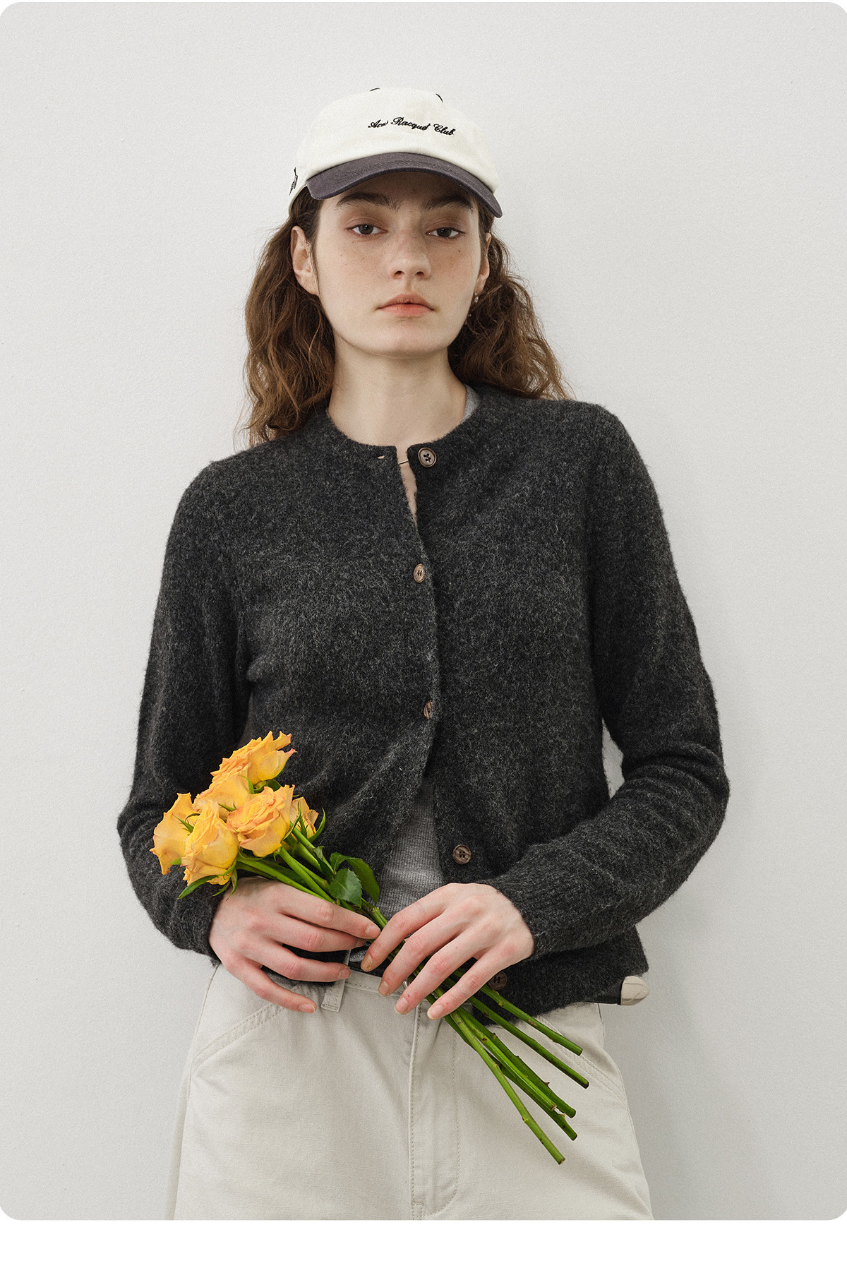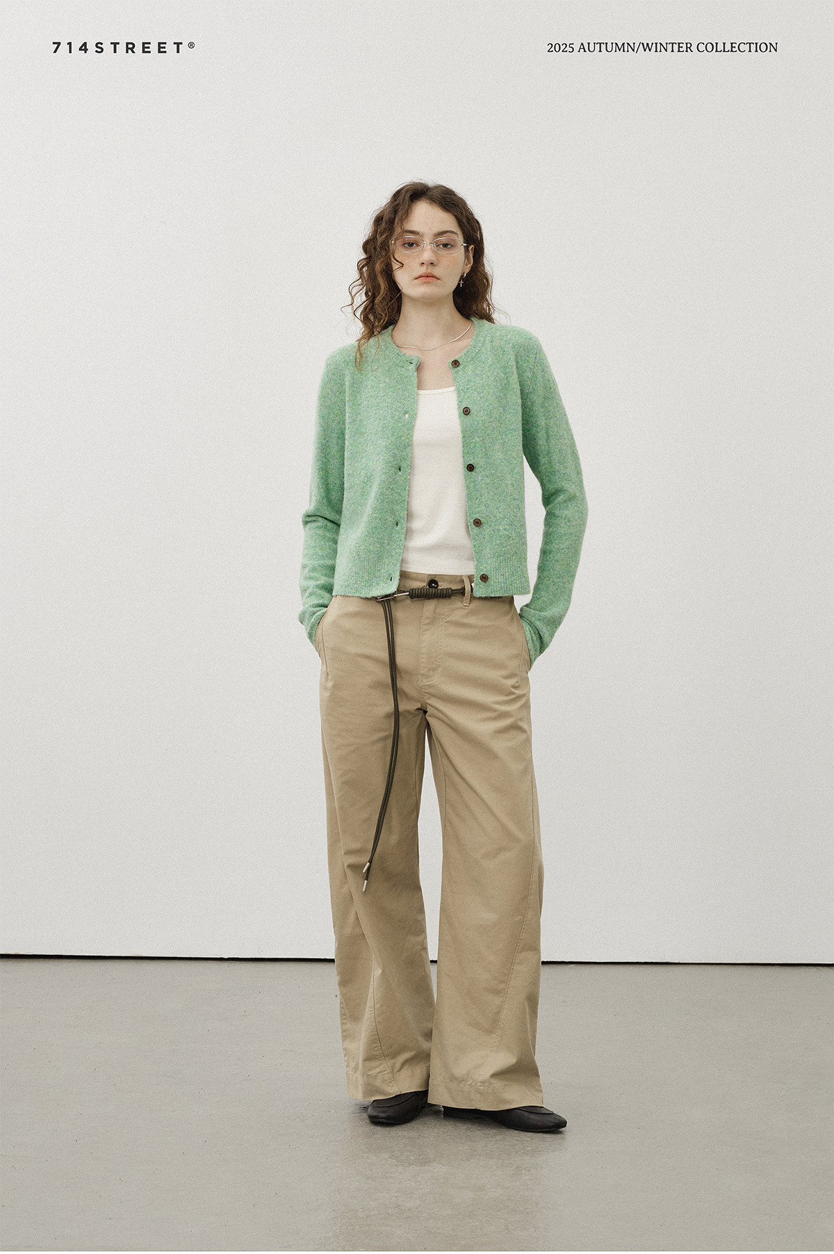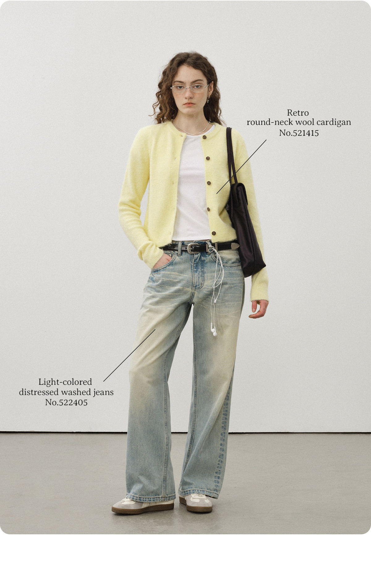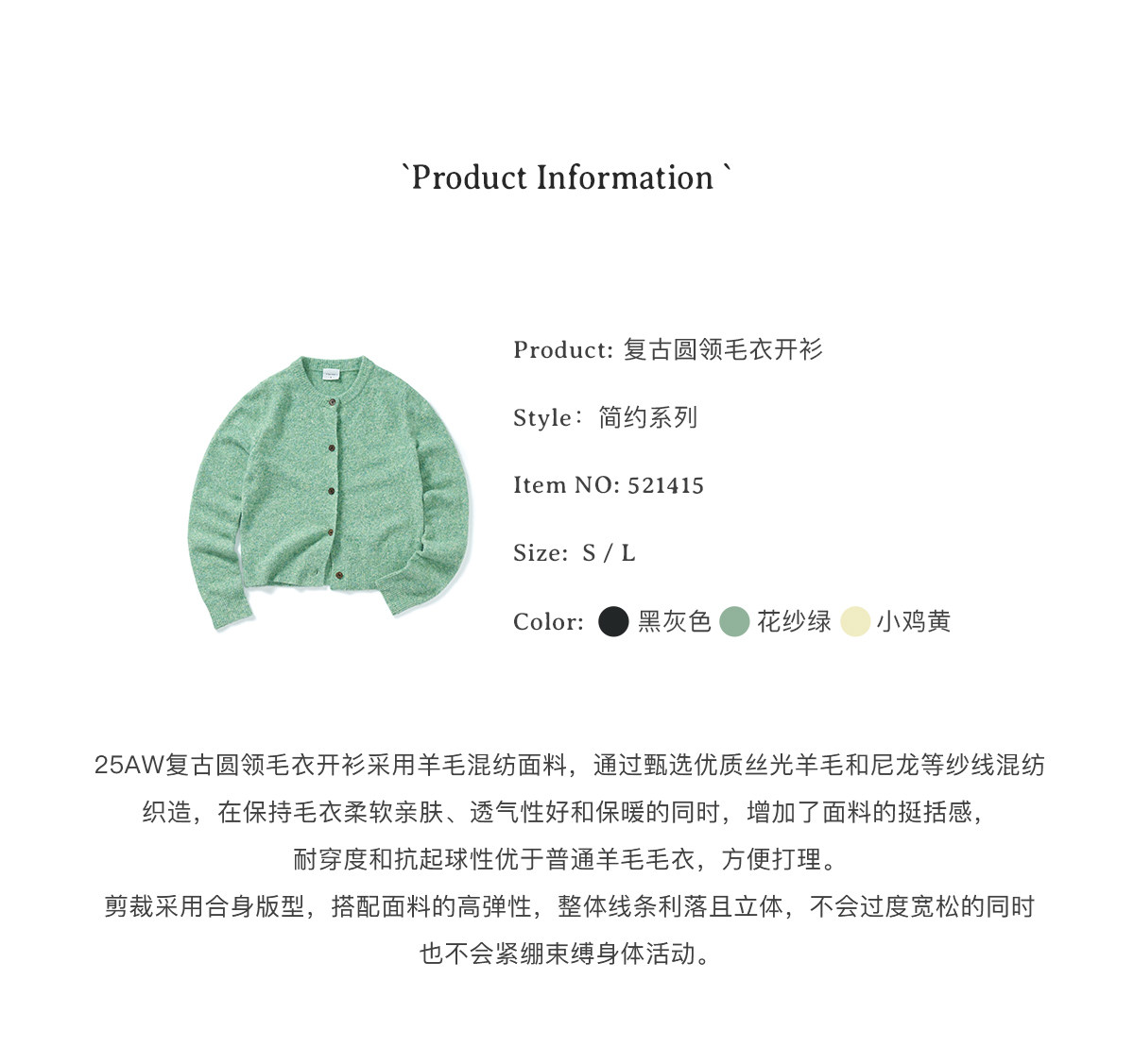 714Street Skin-Friendly Wool Blend Sweater Cardigan Lazy Style 2025 Autumn Coat Round Neck Knitwear for Women