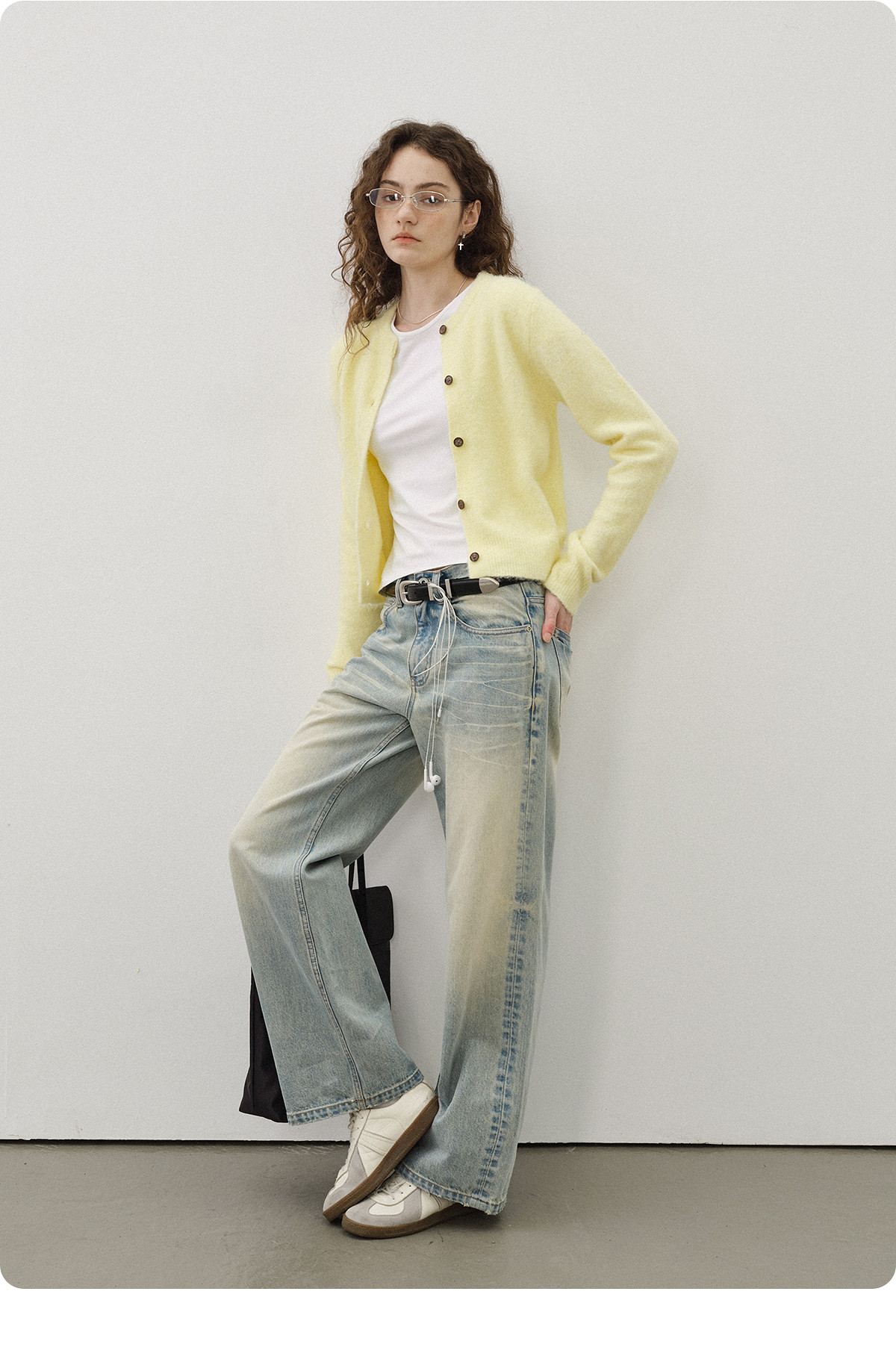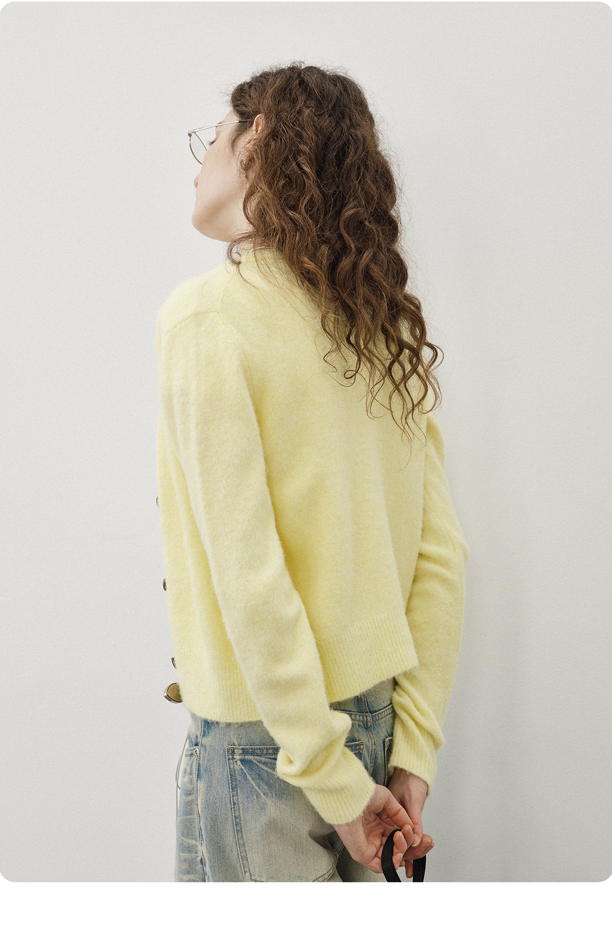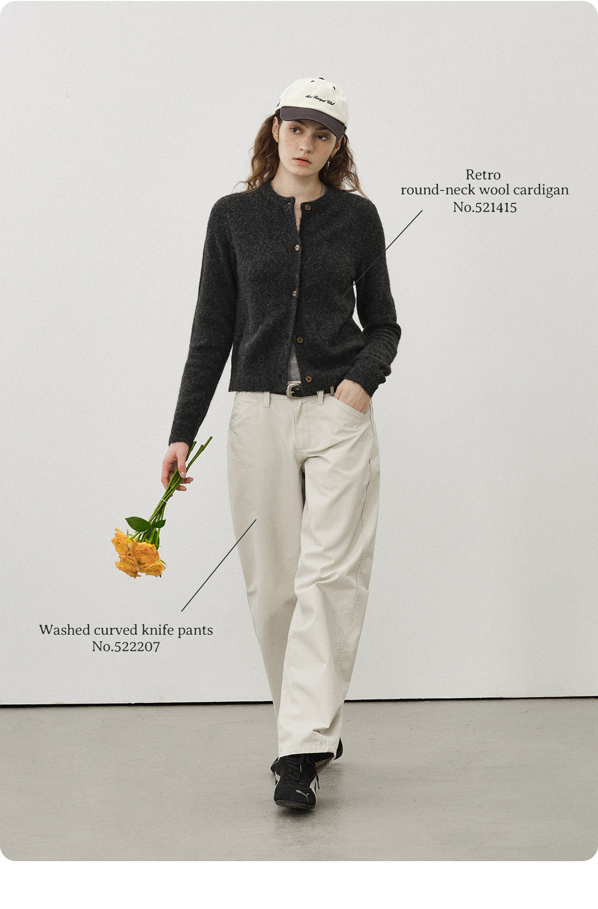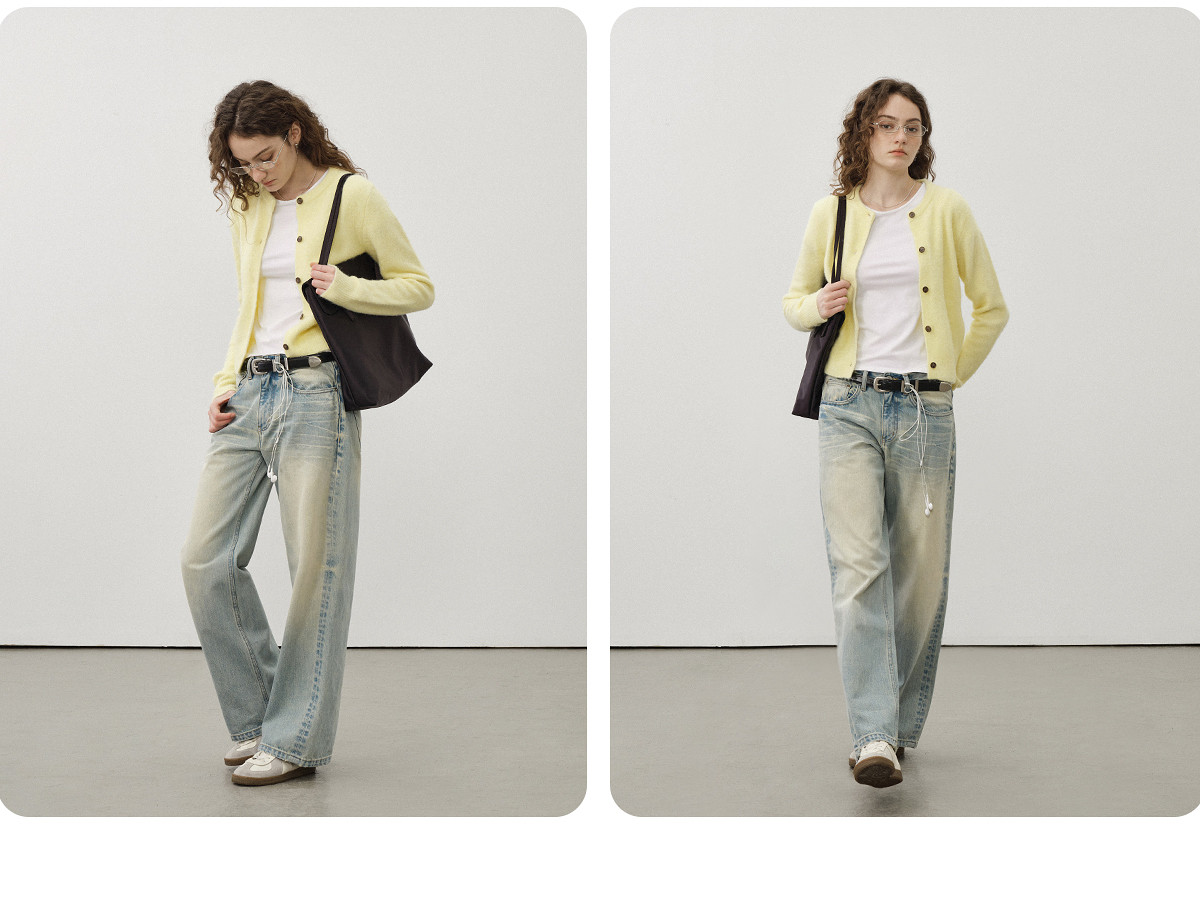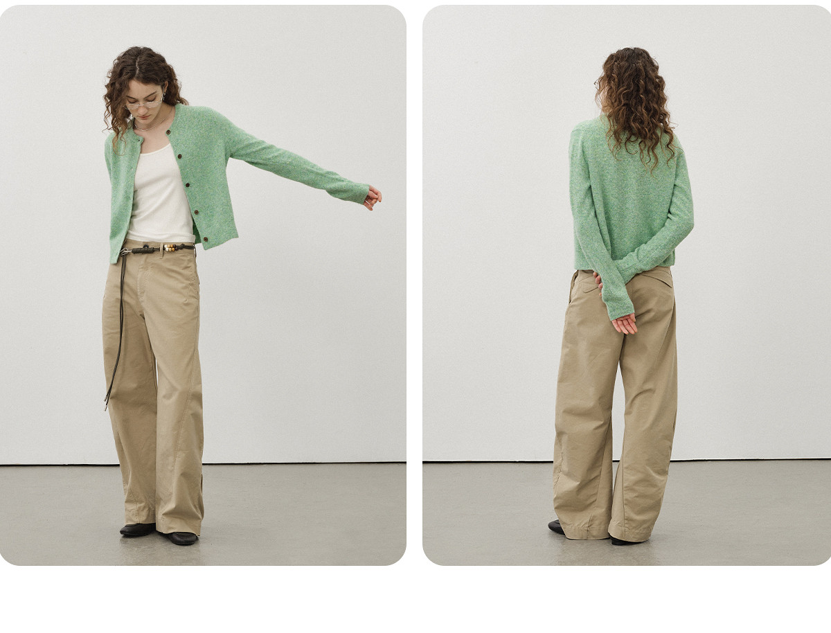714Street Skin-Friendly Wool Blend Sweater Cardigan Lazy Style 2025 Autumn Coat Round Neck Knitwear for Women