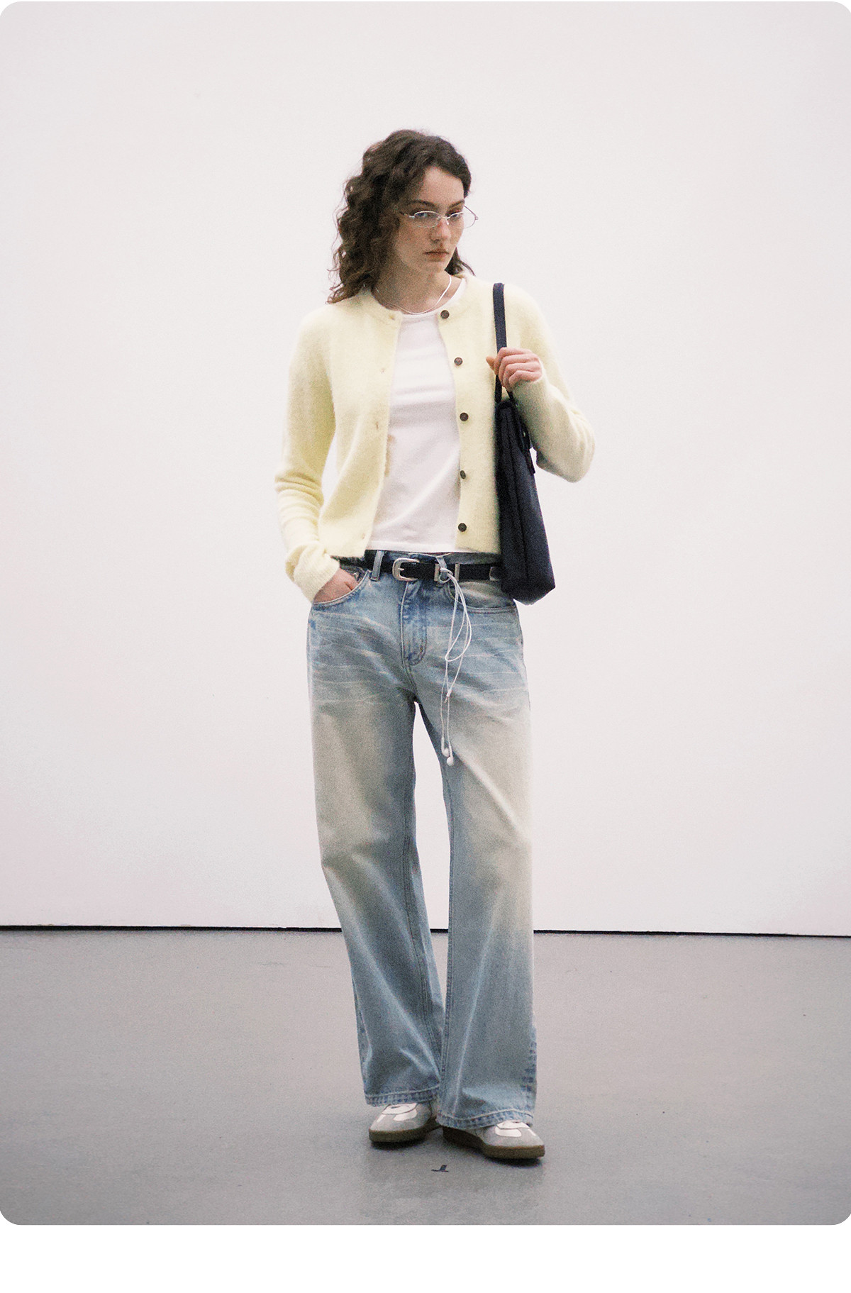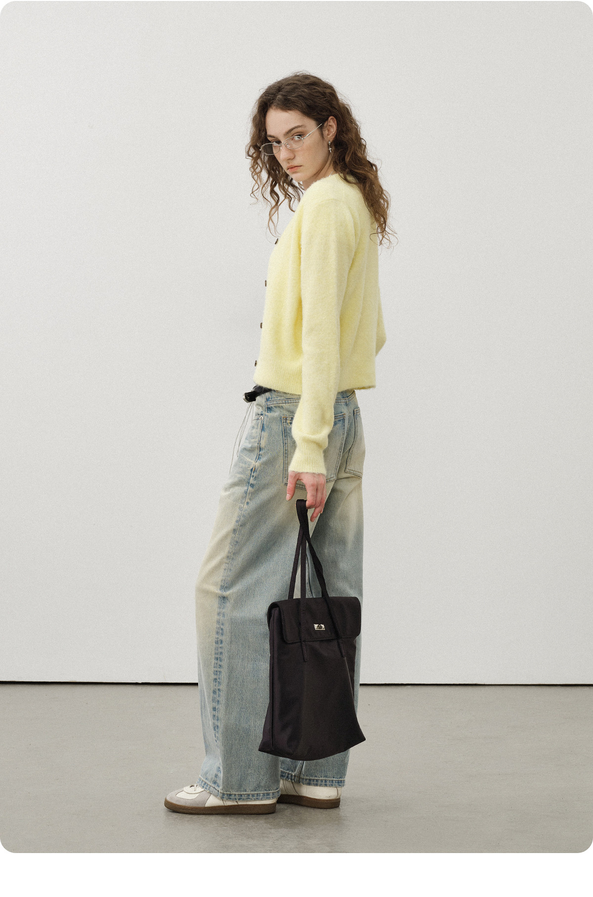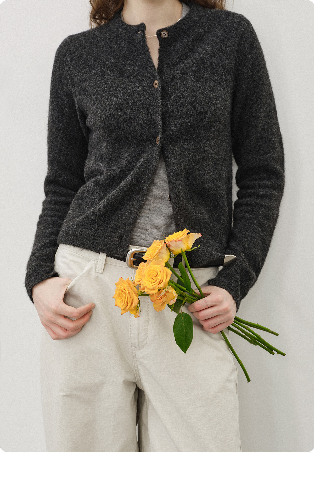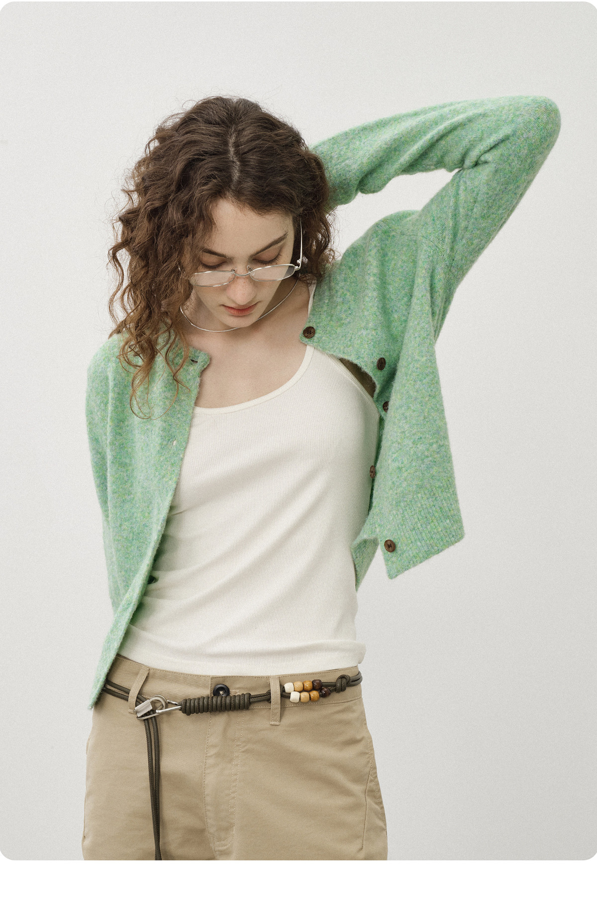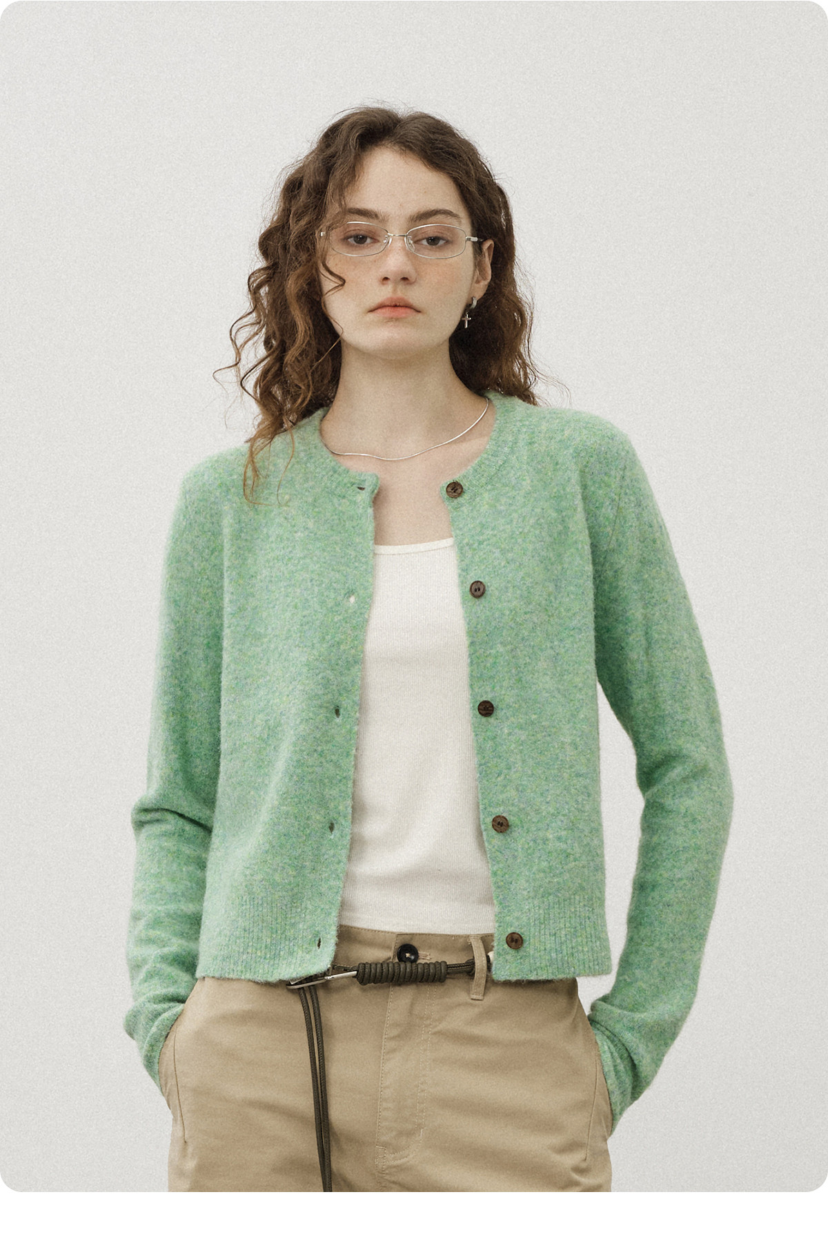 714Street Skin-Friendly Wool Blend Sweater Cardigan Lazy Style 2025 Autumn Coat Round Neck Knitwear for Women