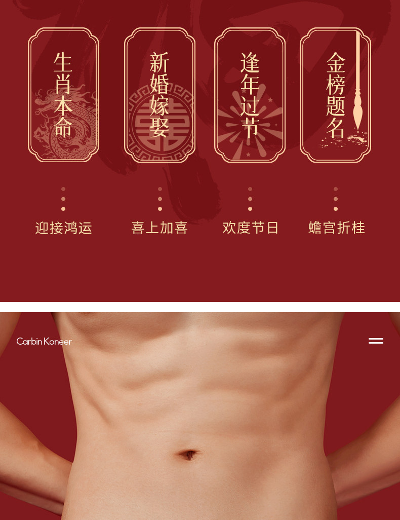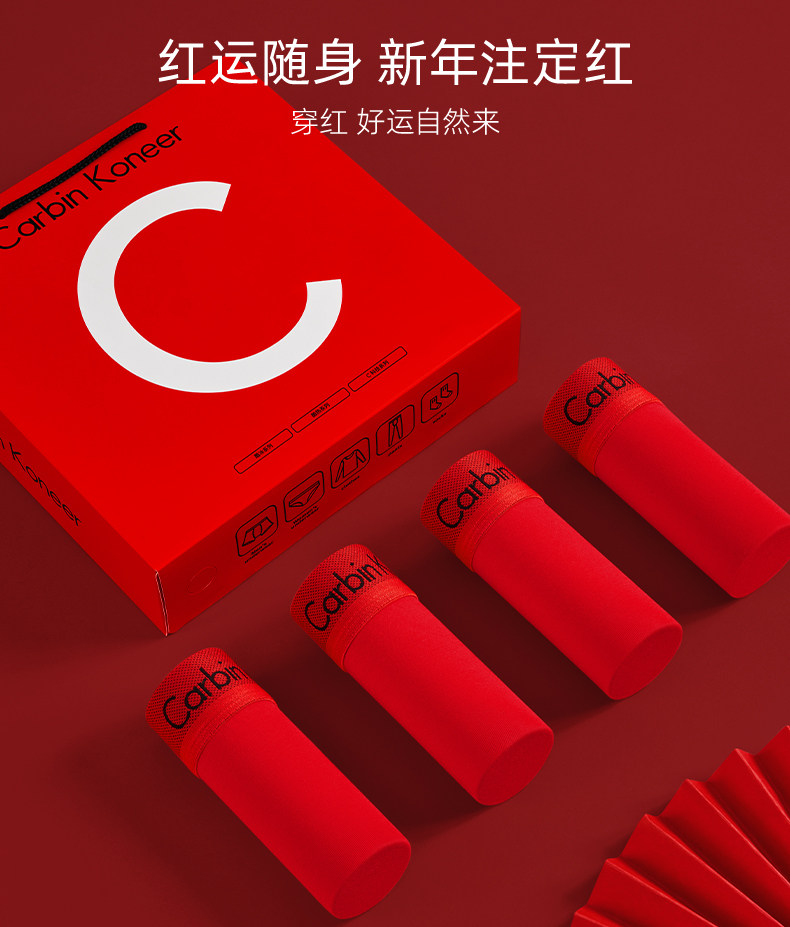 Carbinkoneer Men's Zodiac Year Underwear Men's Briefs Wedding Red Shorts Gift Box 2026 New Style