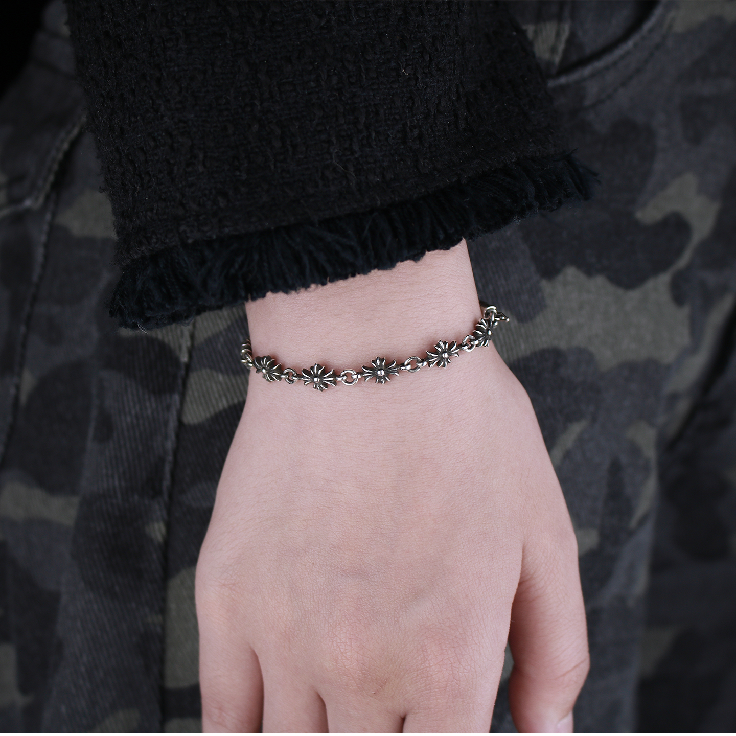 S925 Sterling Silver Vintage American Style Tiny E Cross Bracelet for Women, Thin and Simple Punk Style, Stackable, Unisex, Distressed