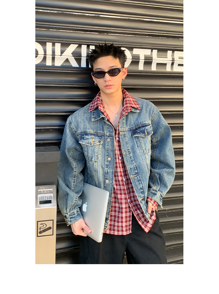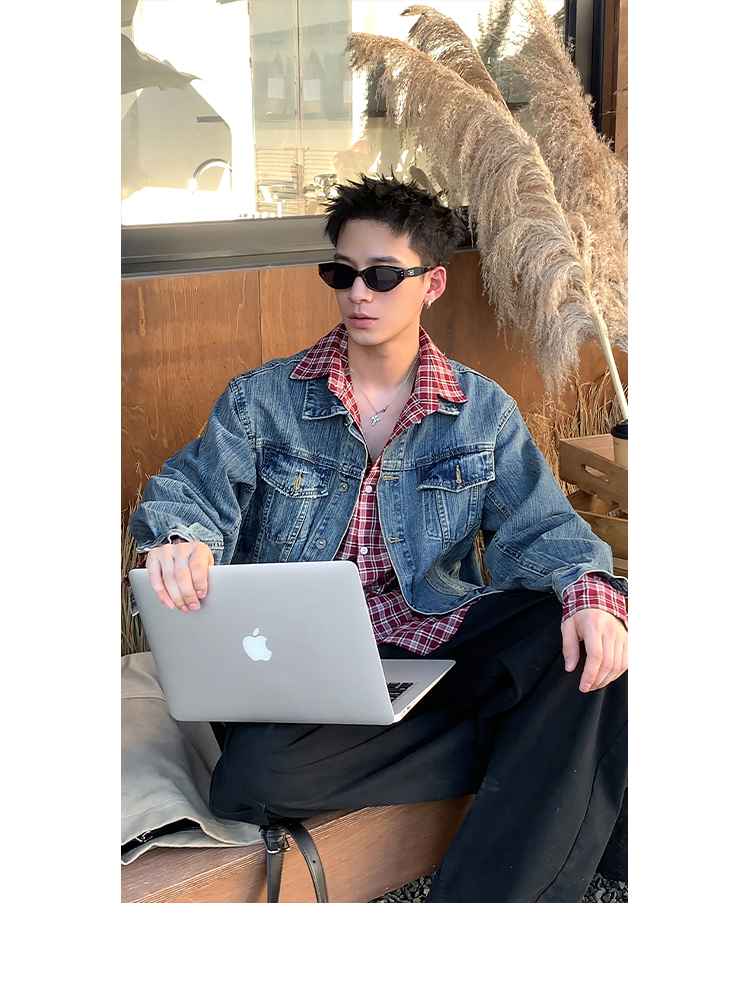 Plth* Korean Retro Short Denim Jacket for Men, High-End Versatile Lapel Cleanfit Early Autumn Top Trendy