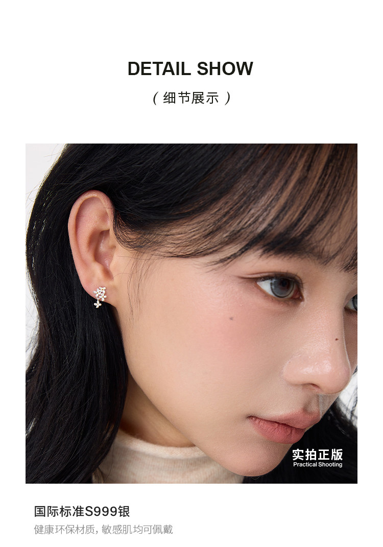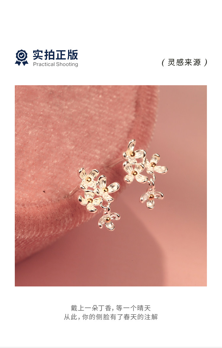 Little Deer Man's "Letter from Lilac Blossom" 999 Pure Silver Flower Earrings 2026 New Style High-End Women's Earrings and Accessories