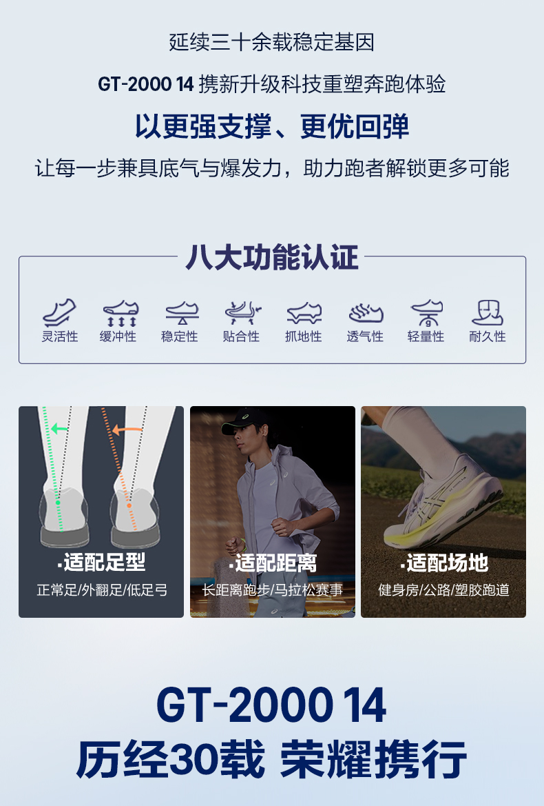 Asics New Gt-2000 14 Men's Stable Support Running Shoes Wear-Resistant Breathable Sports Shoes