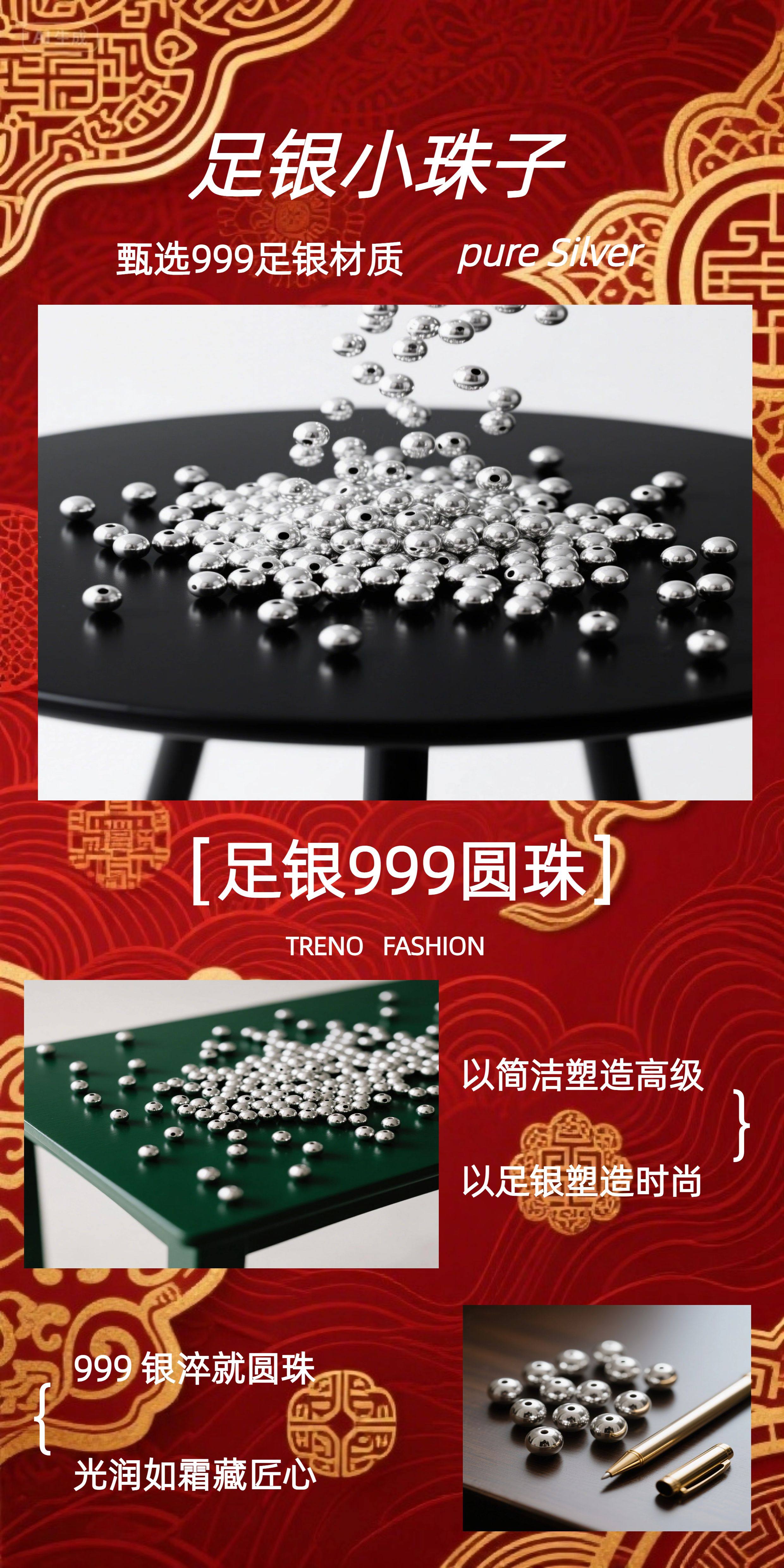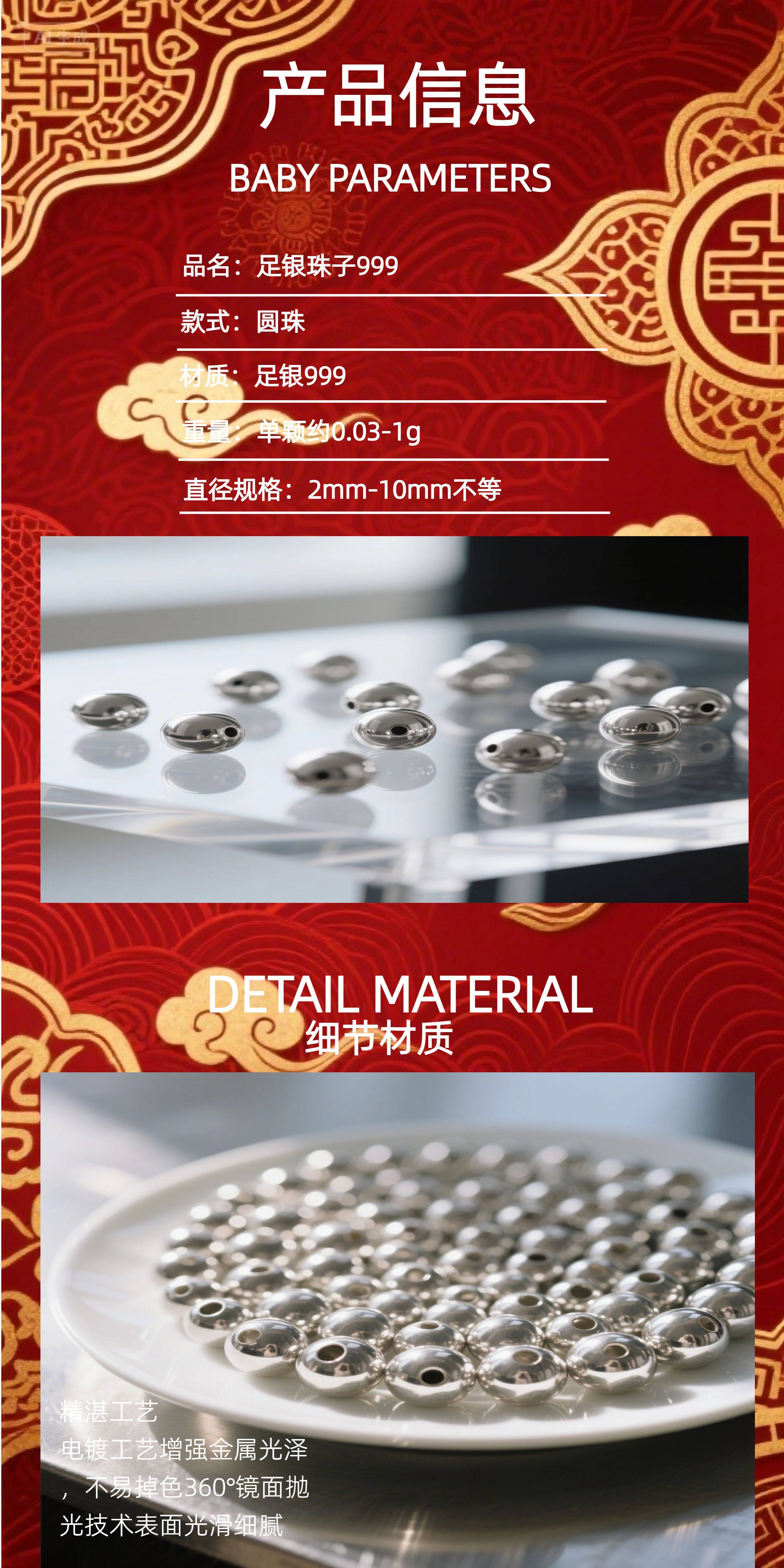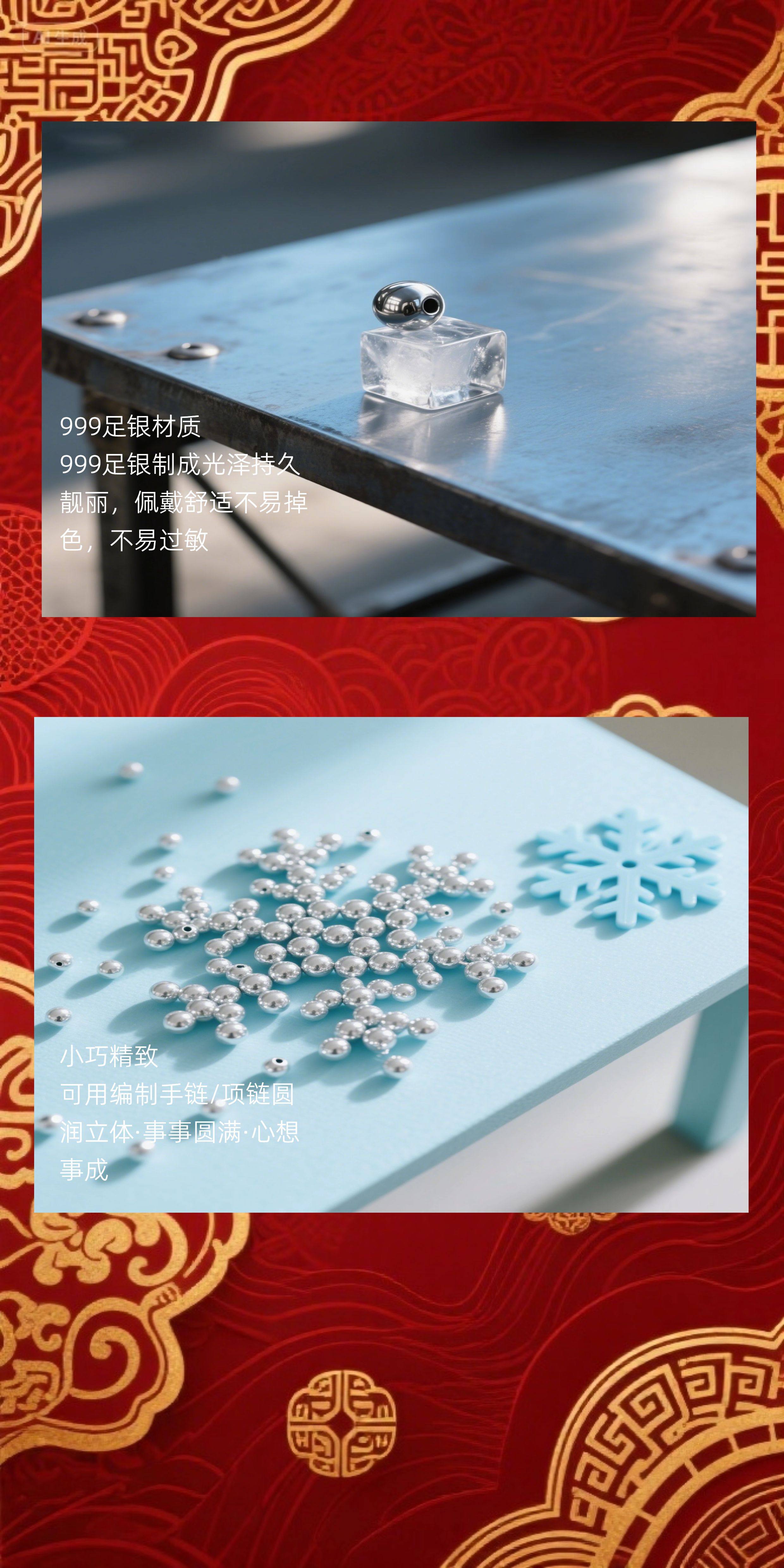 Diamond Jubilee 999 Pure Silver Beads Loose Beads Hollow Design Investment Pure Silver Material Kit Handmade Beading Accessories