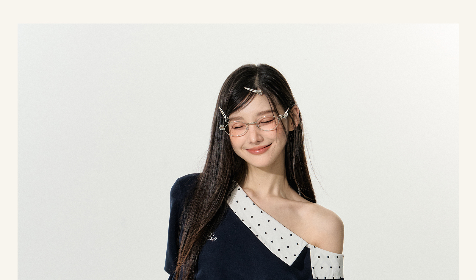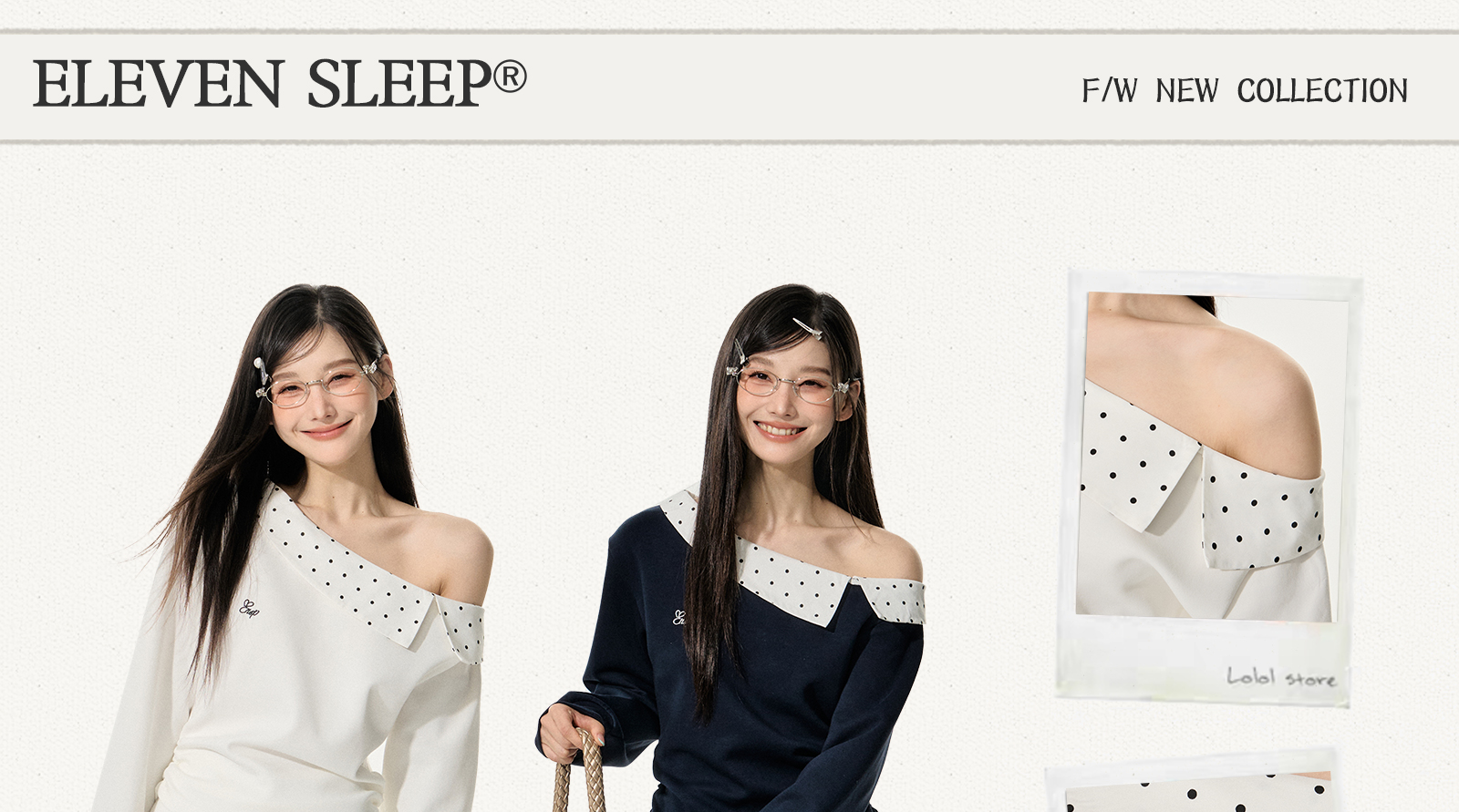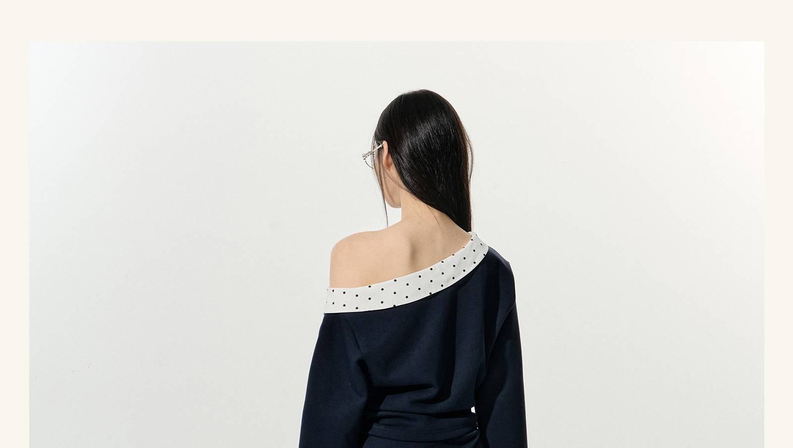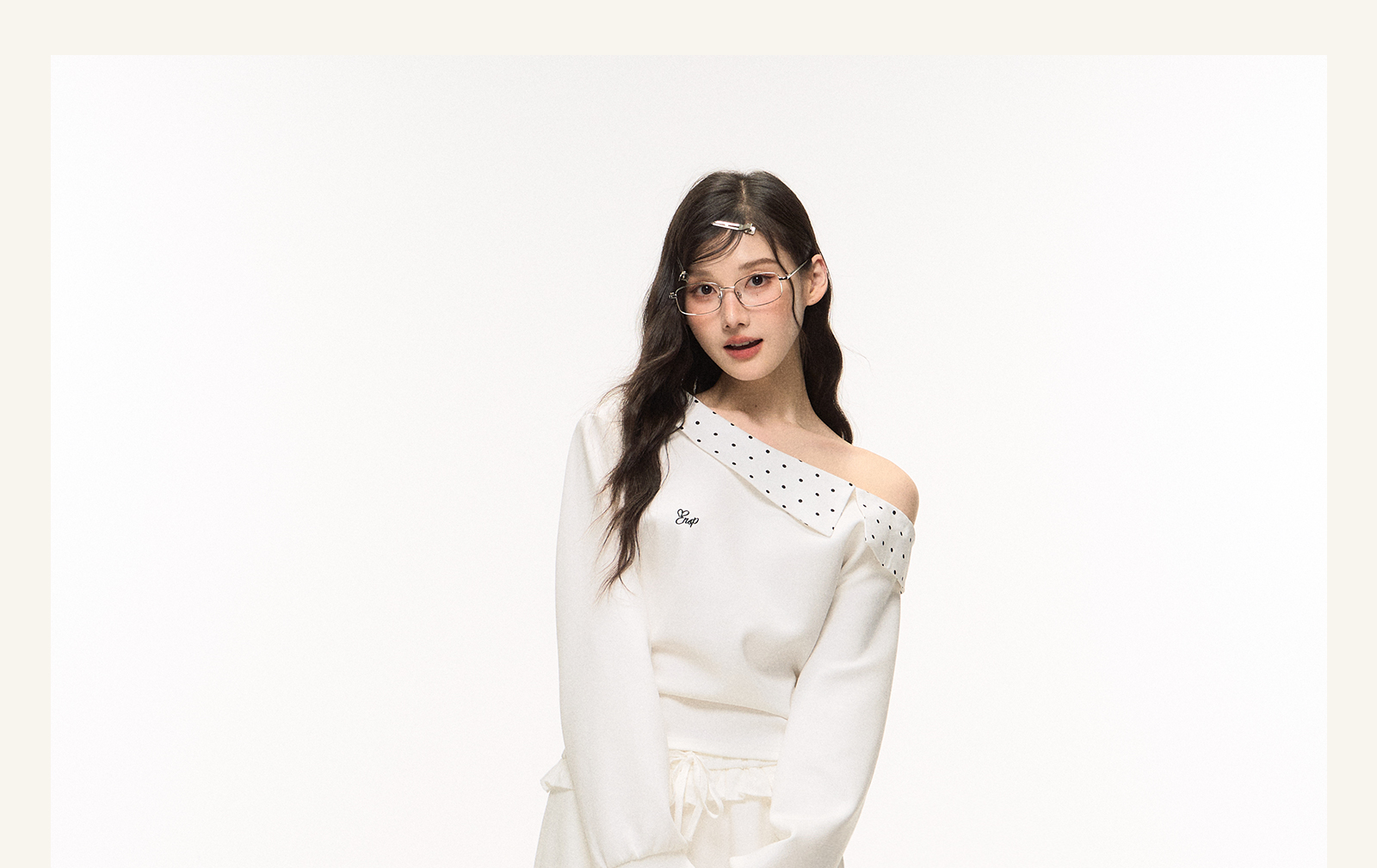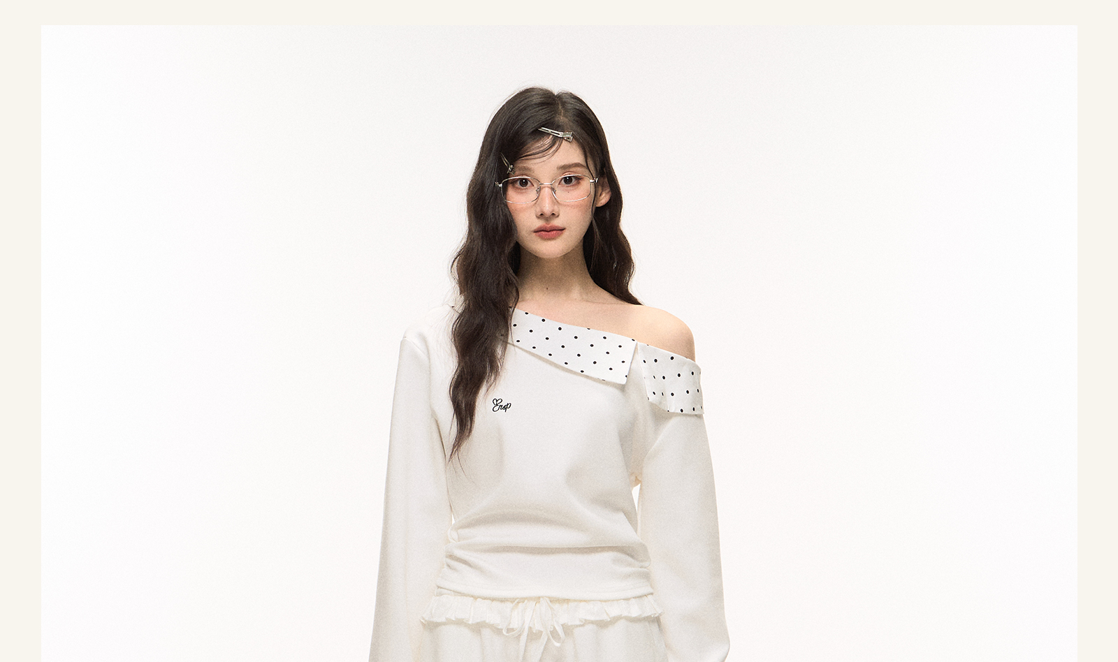 Eleven Sleep Autumn Asymmetrical Long Sleeve T-Shirt for Women with Polka Dot Patchwork Design, Off-Shoulder Gentle Korean Style Top