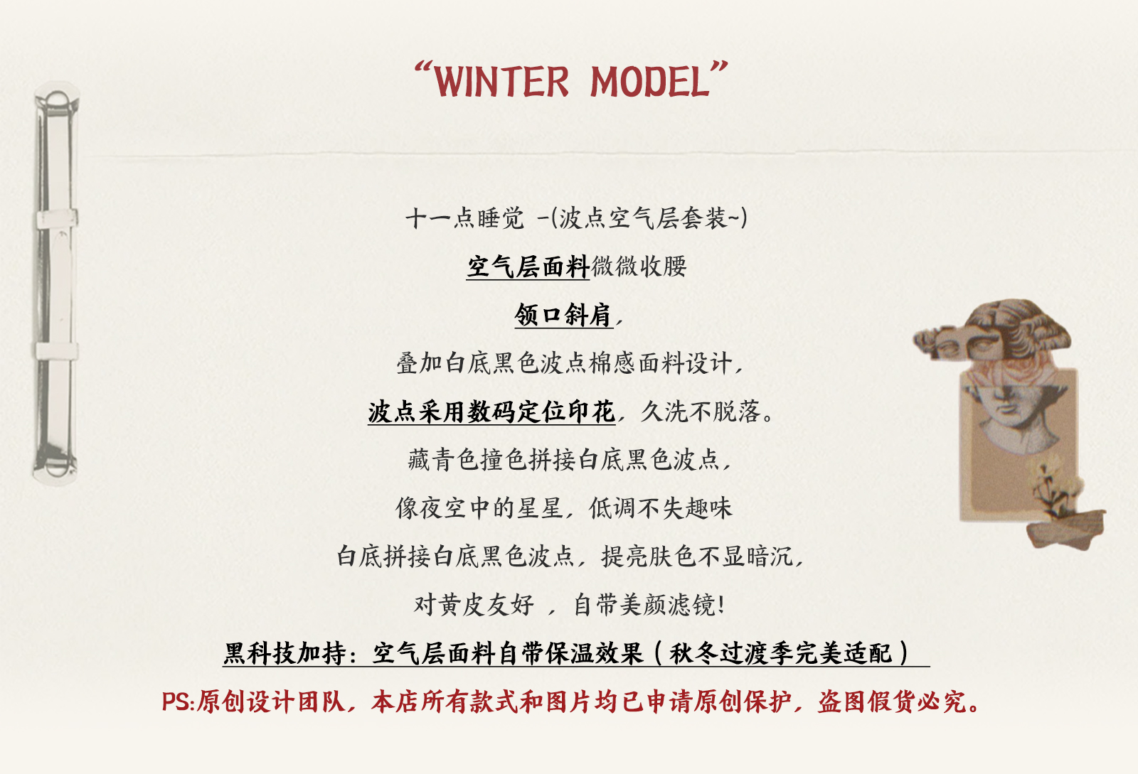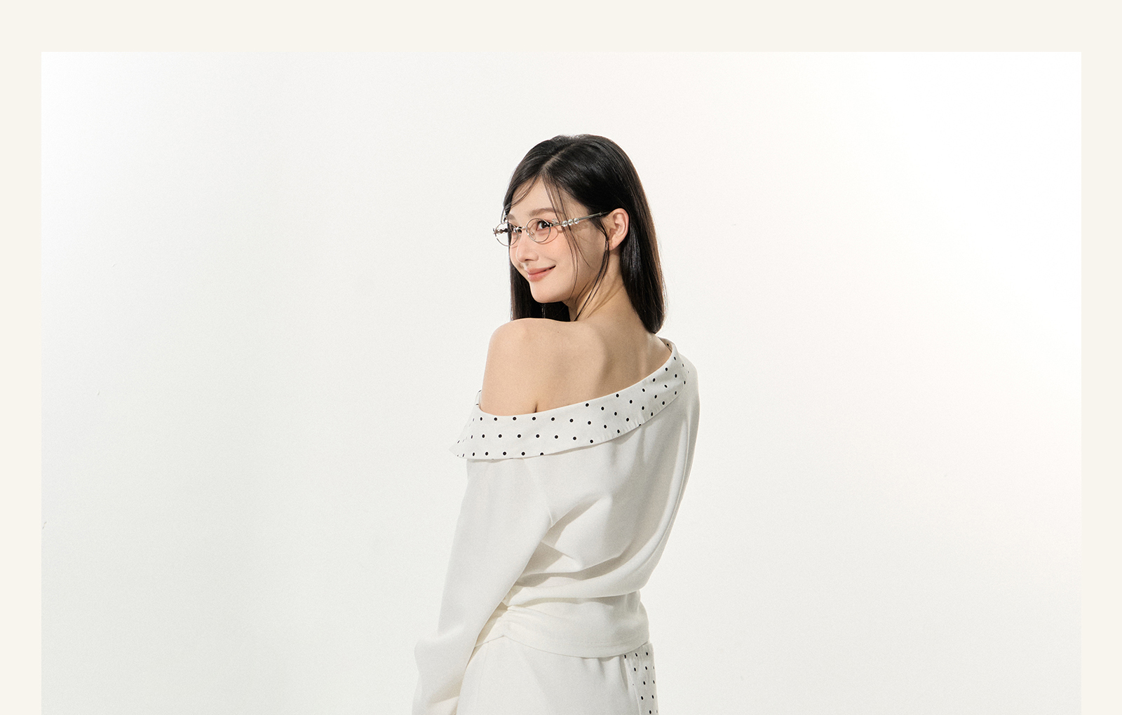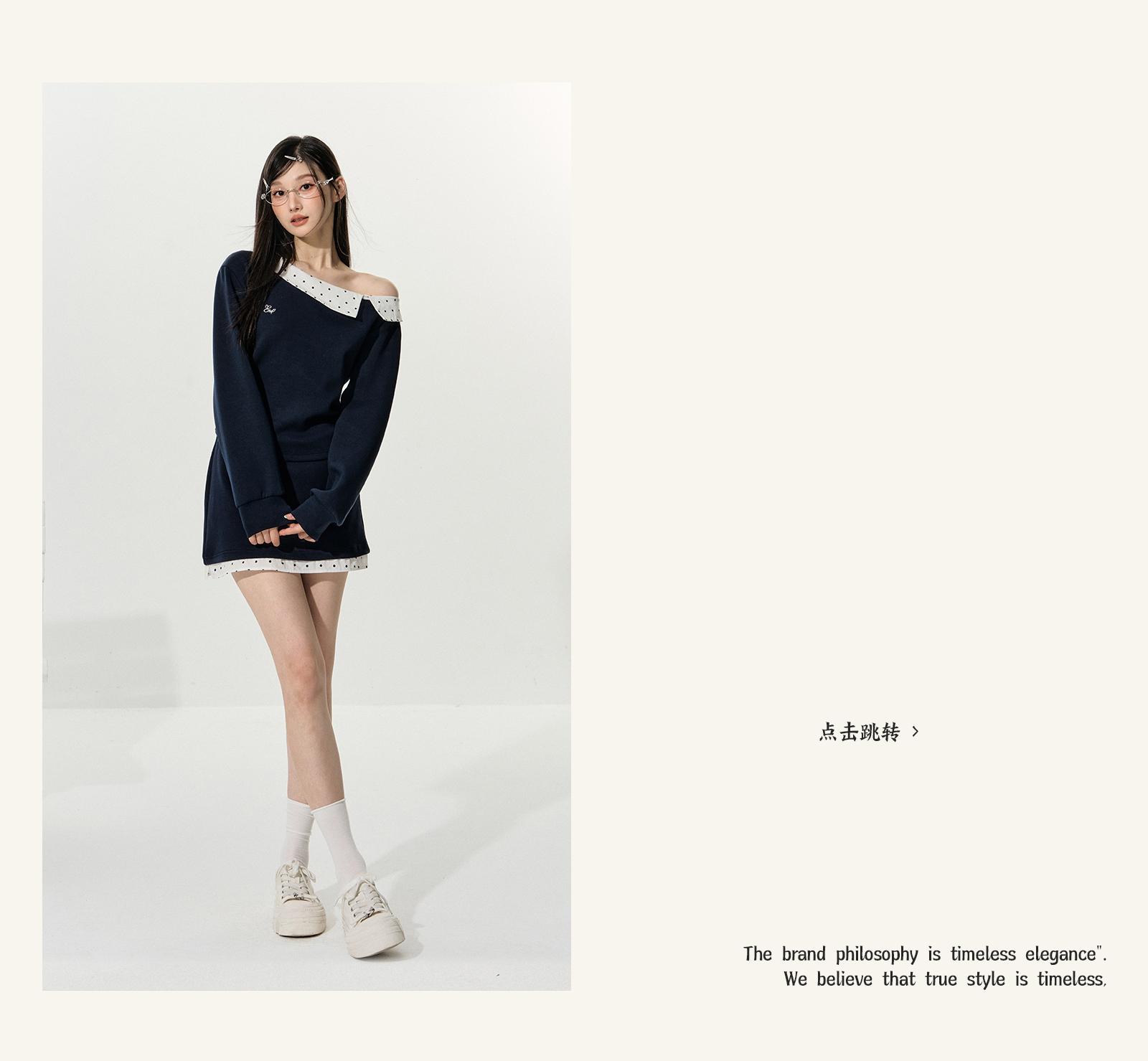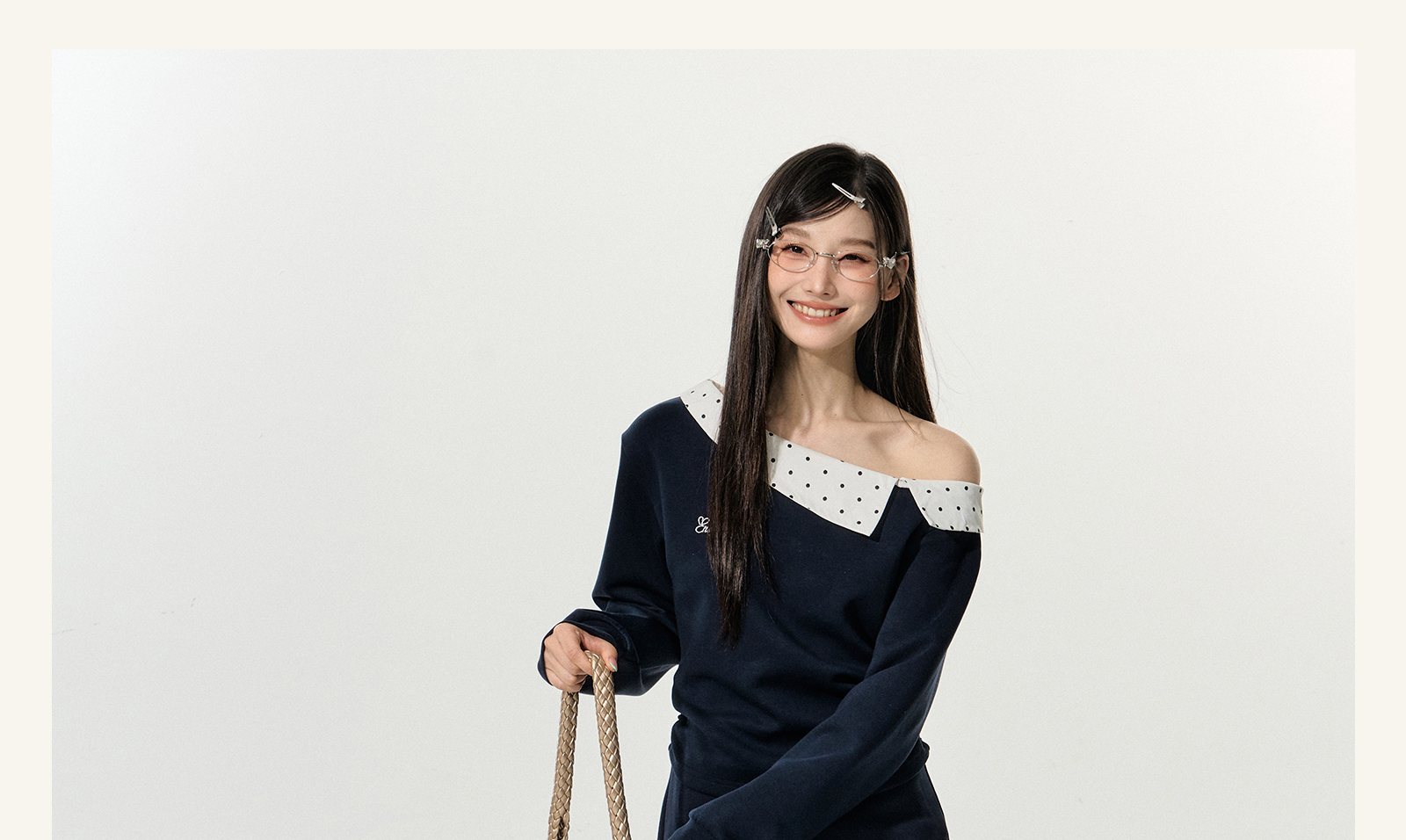 Eleven Sleep Autumn Asymmetrical Long Sleeve T-Shirt for Women with Polka Dot Patchwork Design, Off-Shoulder Gentle Korean Style Top