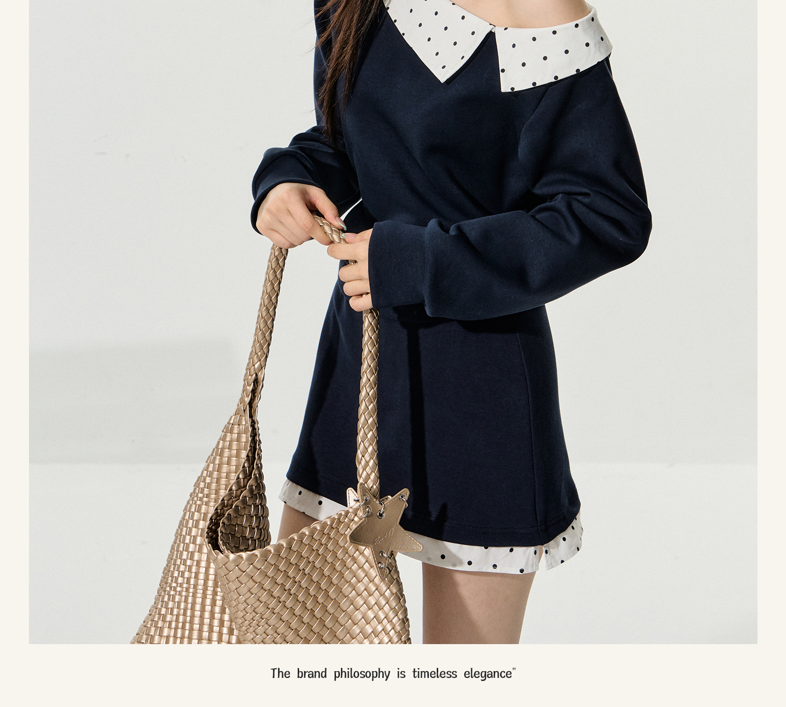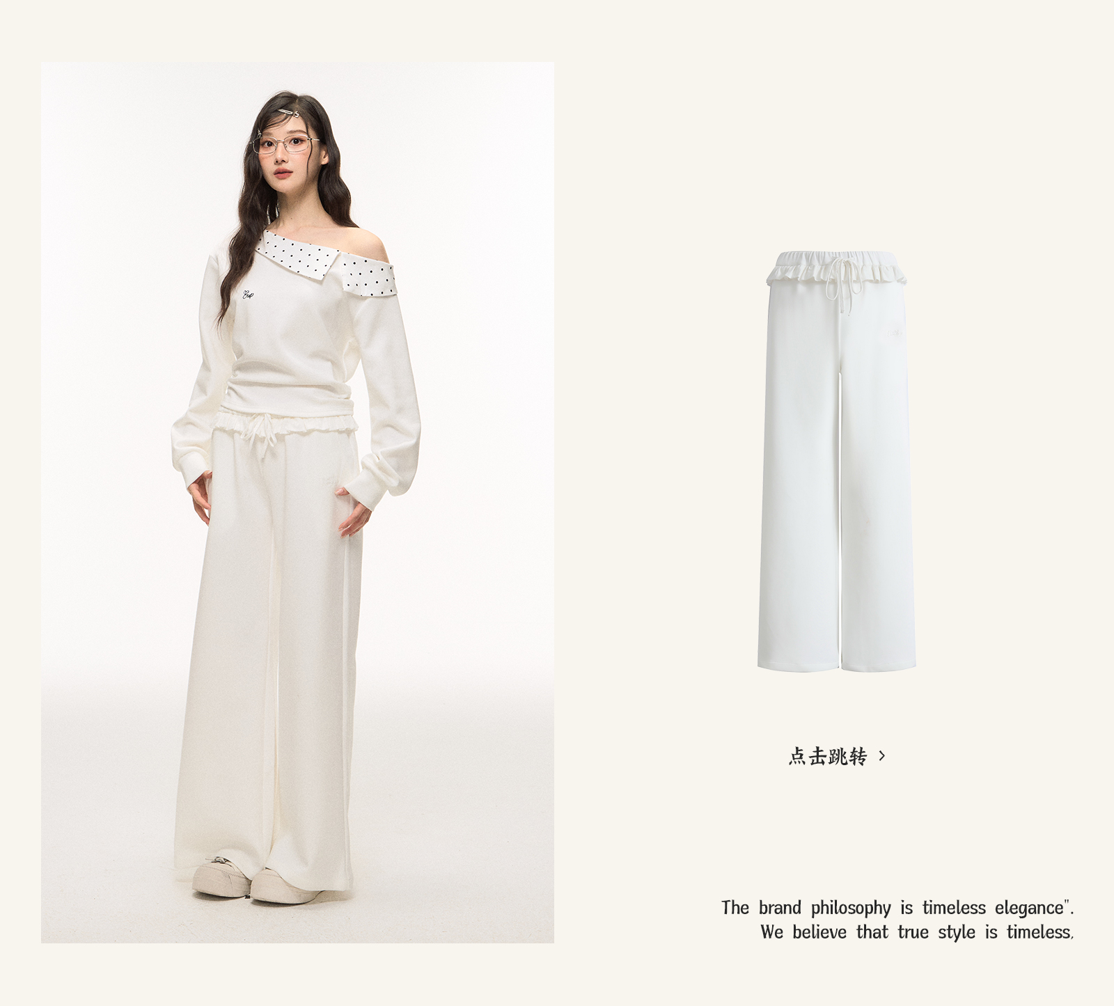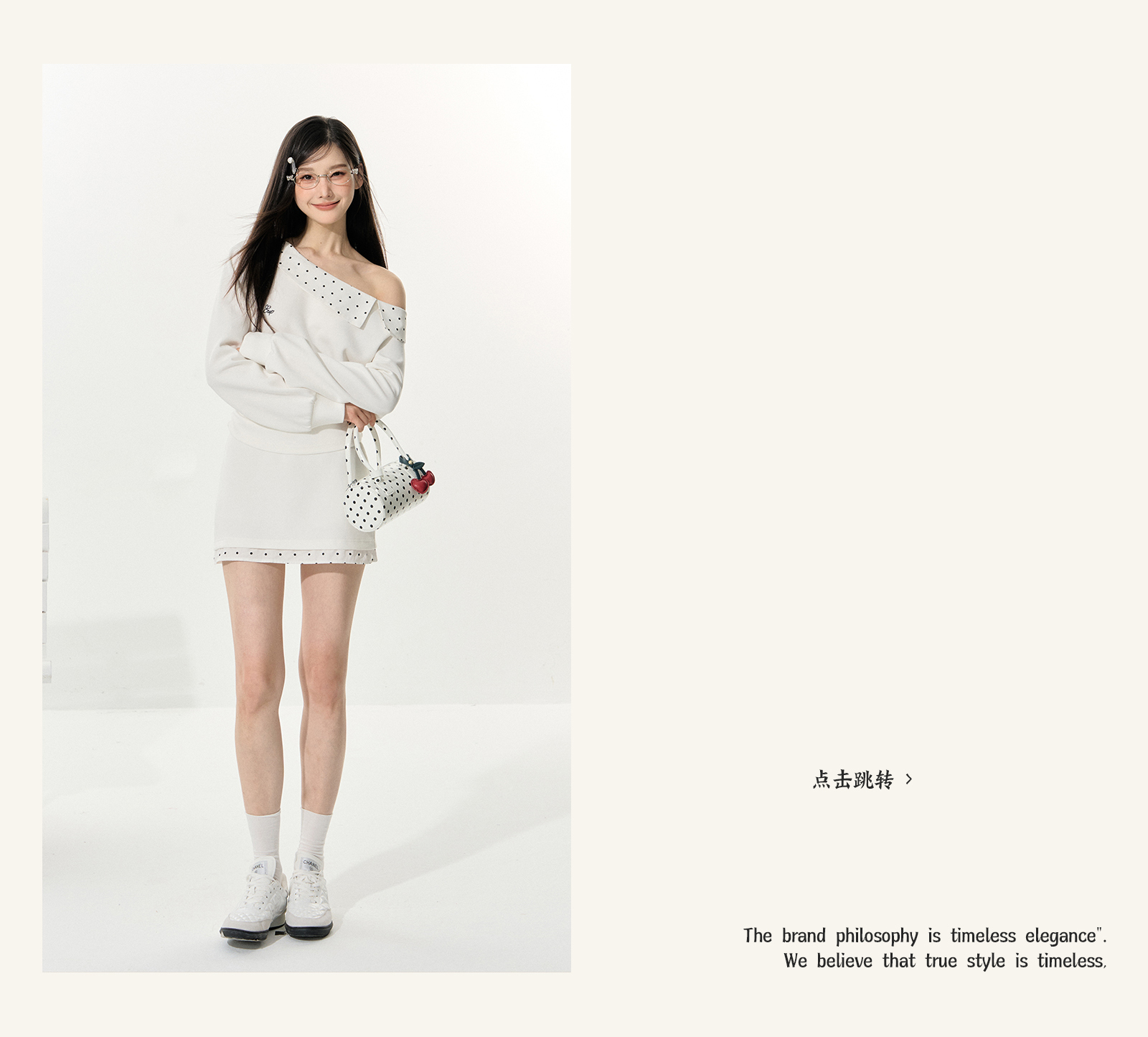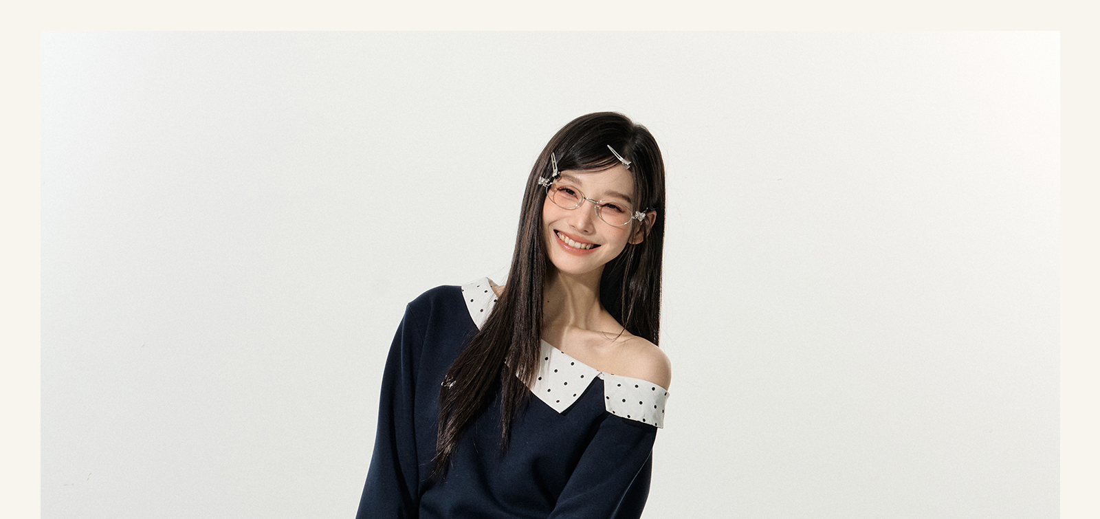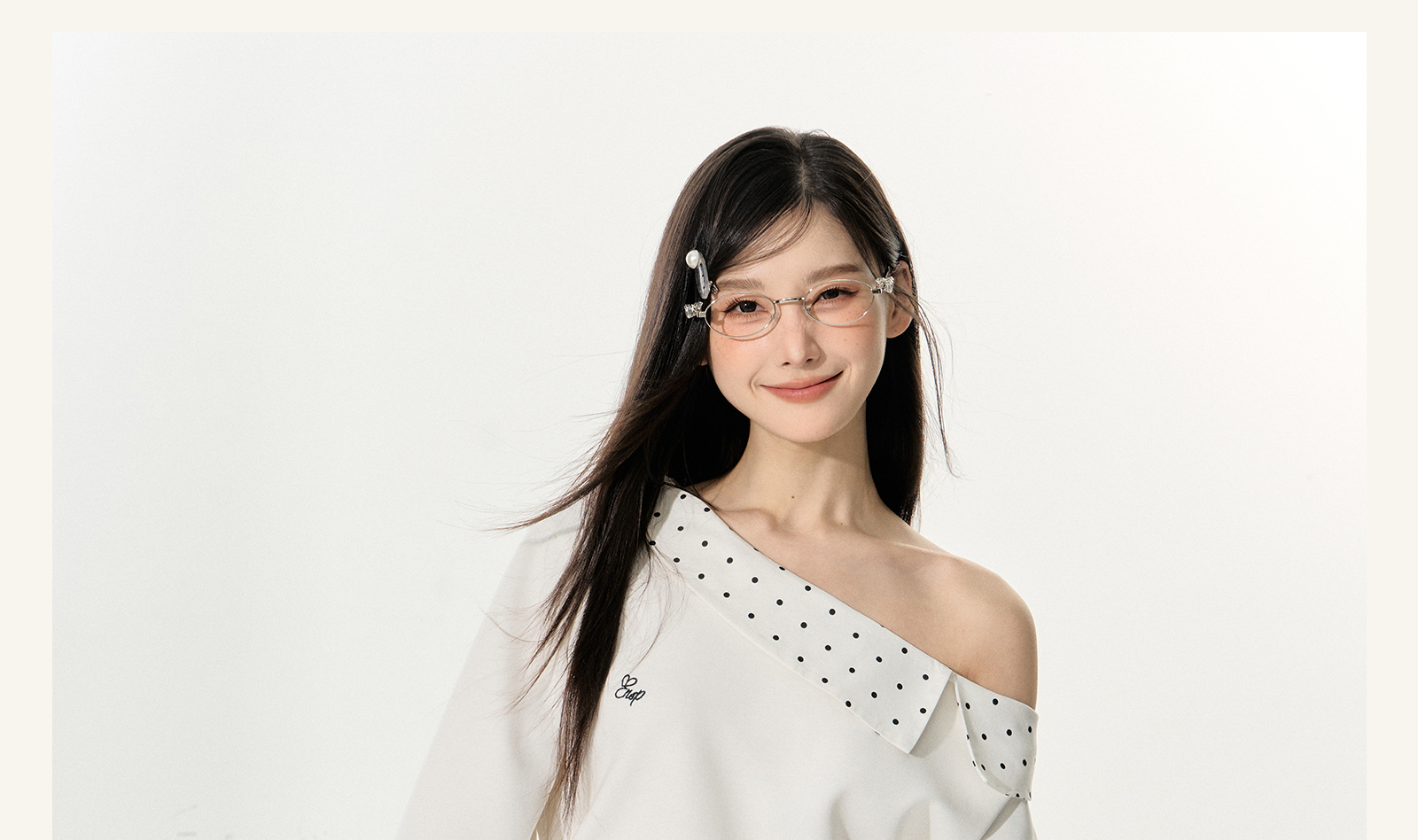 Eleven Sleep Autumn Asymmetrical Long Sleeve T-Shirt for Women with Polka Dot Patchwork Design, Off-Shoulder Gentle Korean Style Top