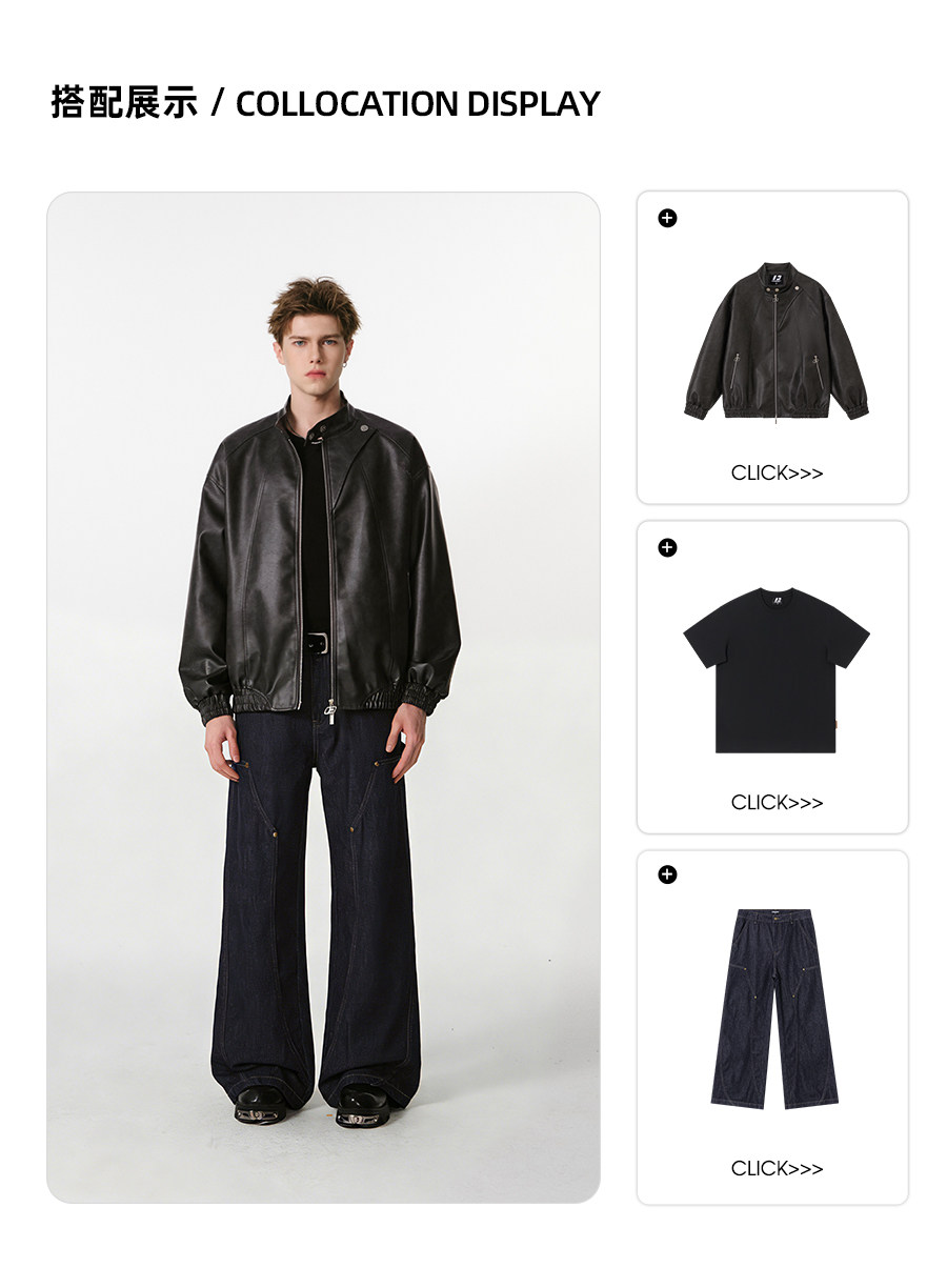Fornines Retro Pu Leather Jacket for Men, Couple's Trendy Brand Spring and Autumn Jacket, Cool and High-End Biker Jacket for Women