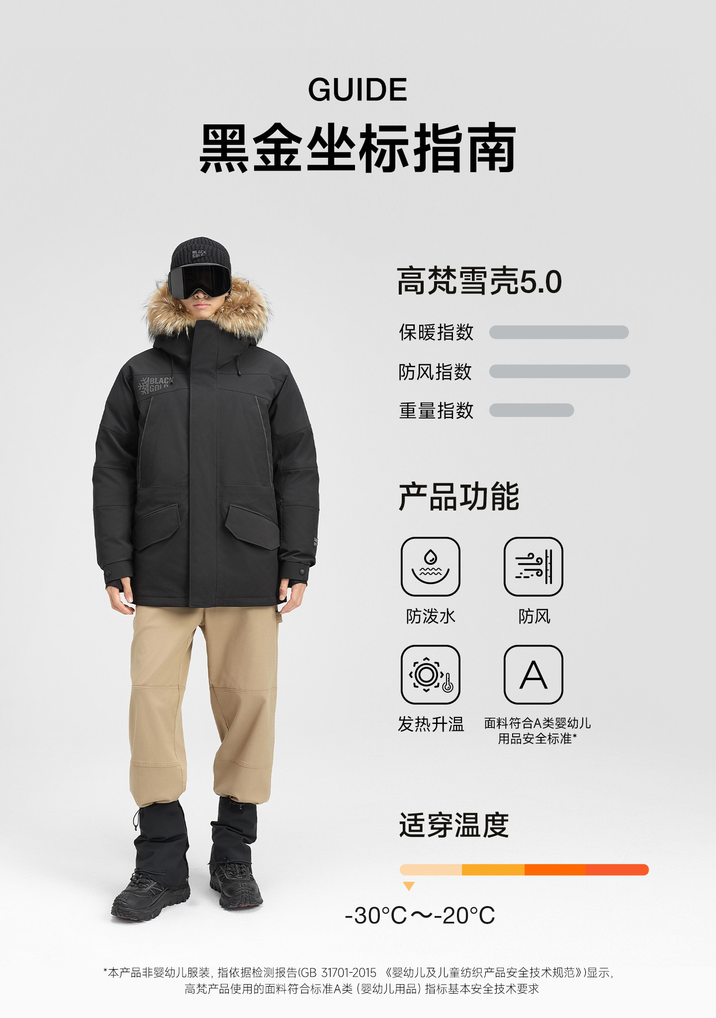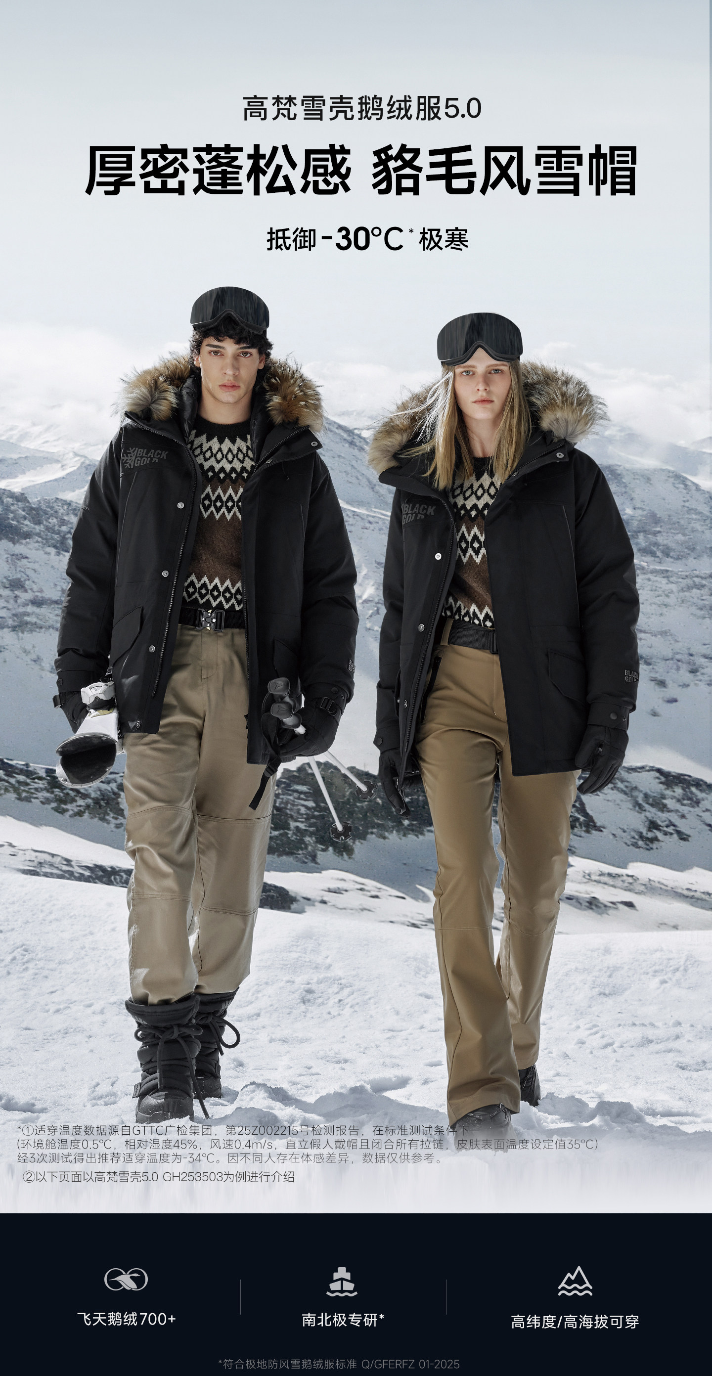 【New Product Release】Gaofan Black Gold Goose down Jacket Snow Shell 5.0 Unisex 2025 Winter Outdoor Black 5-Point Jacket