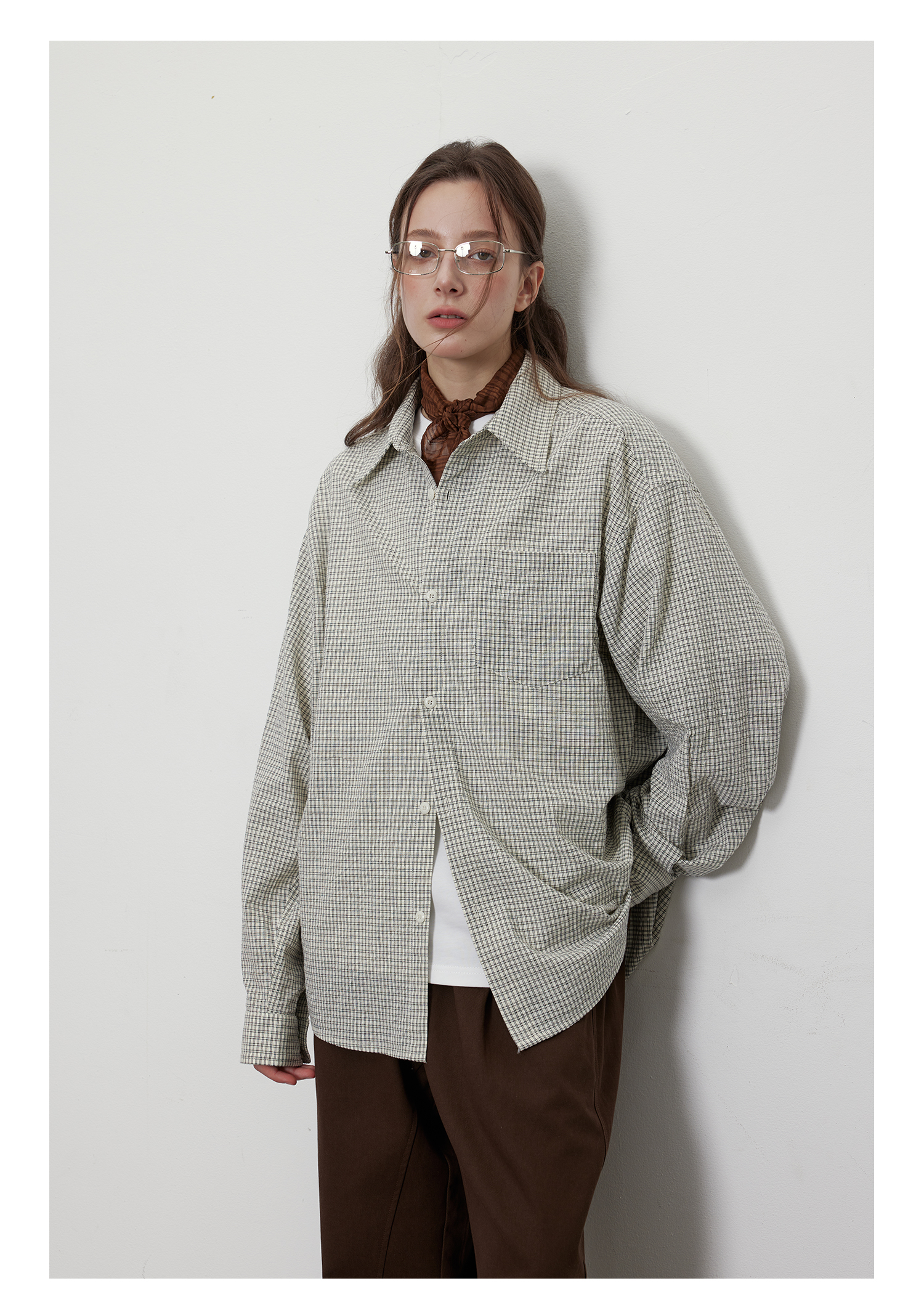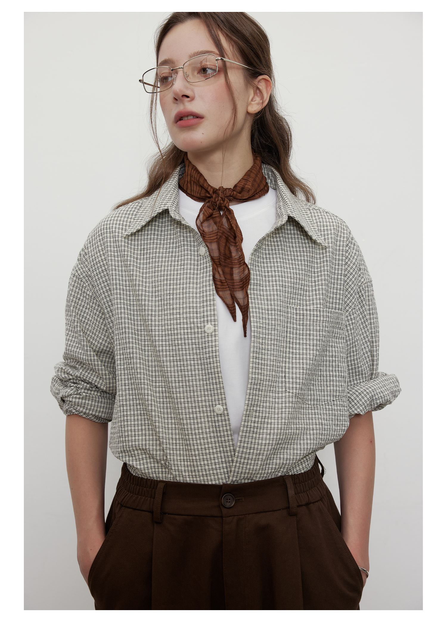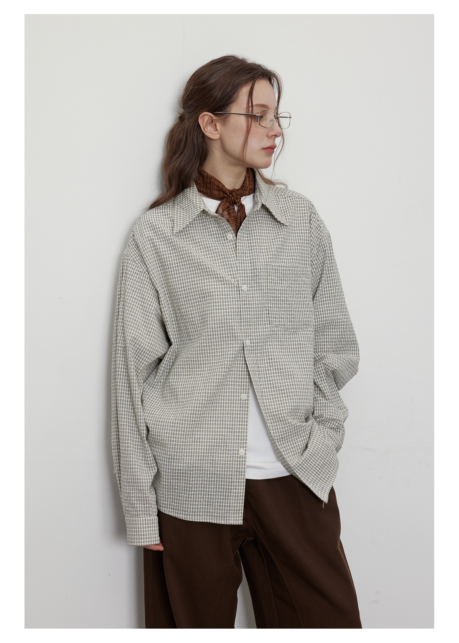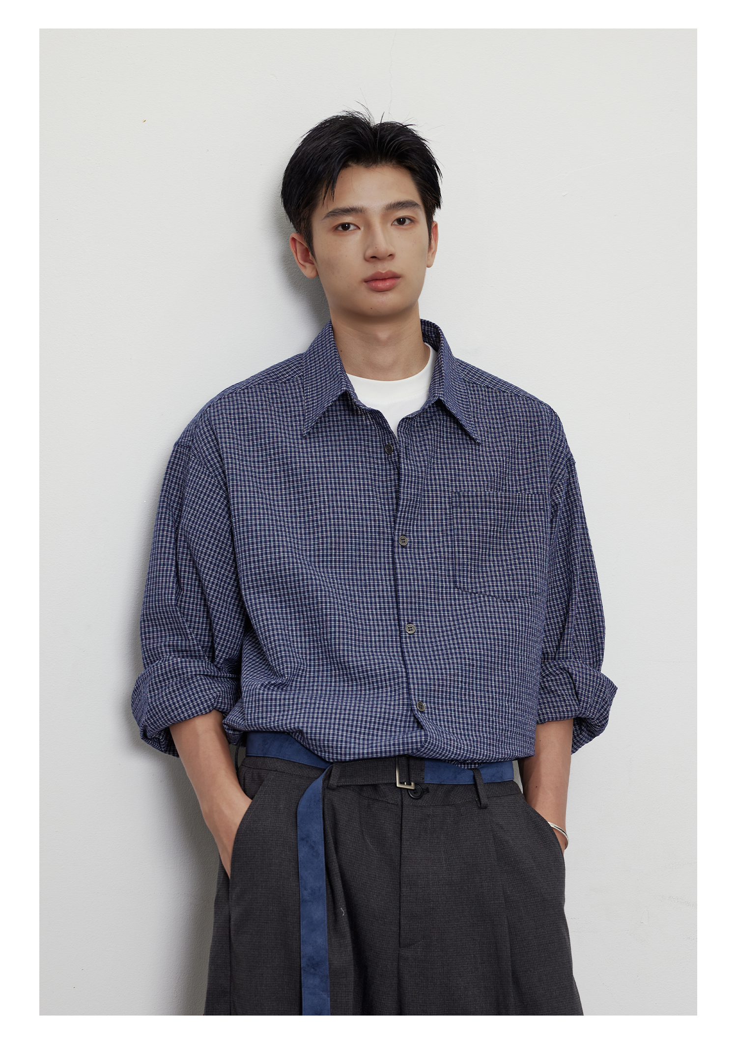 Lr Made 25Aw Two-Tone Woven Fine Plaid Slightly Wrinkled Texture Single Wear or Layered Retro Plaid Shirt