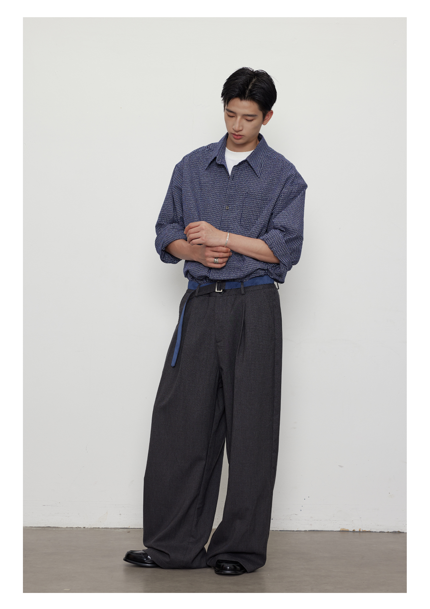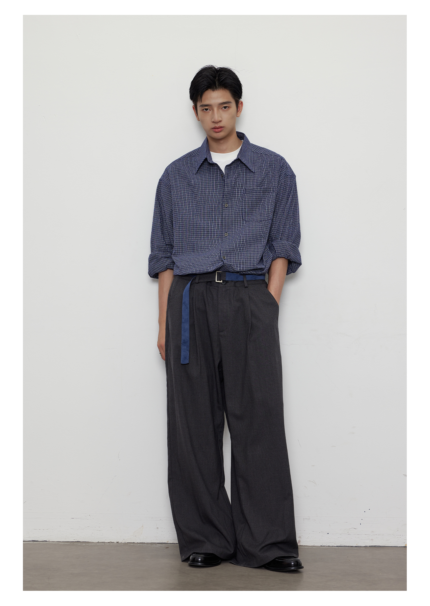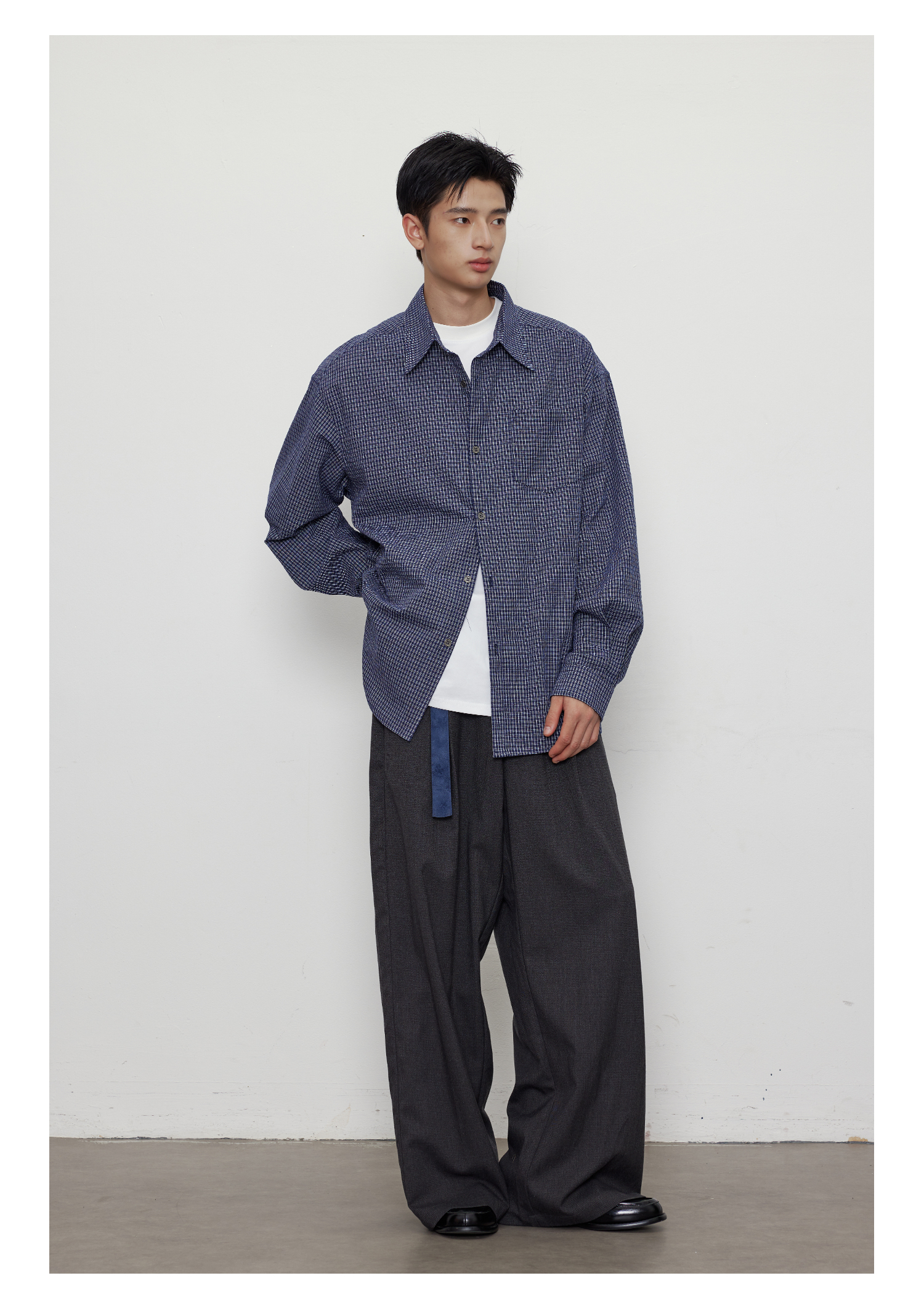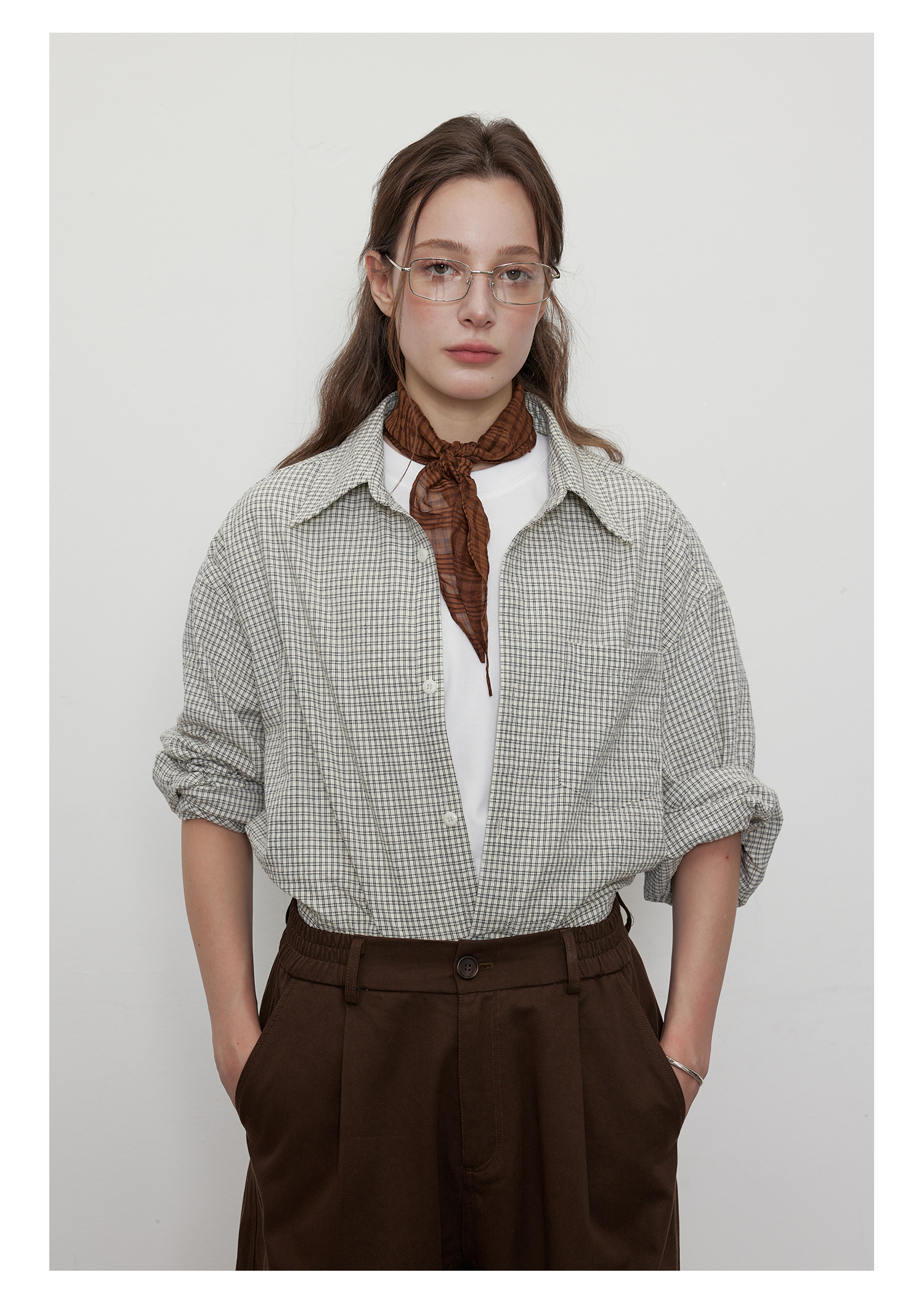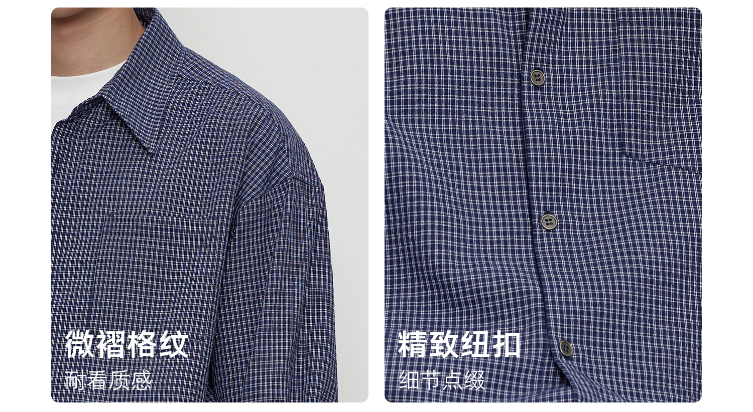 Lr Made 25Aw Two-Tone Woven Fine Plaid Slightly Wrinkled Texture Single Wear or Layered Retro Plaid Shirt