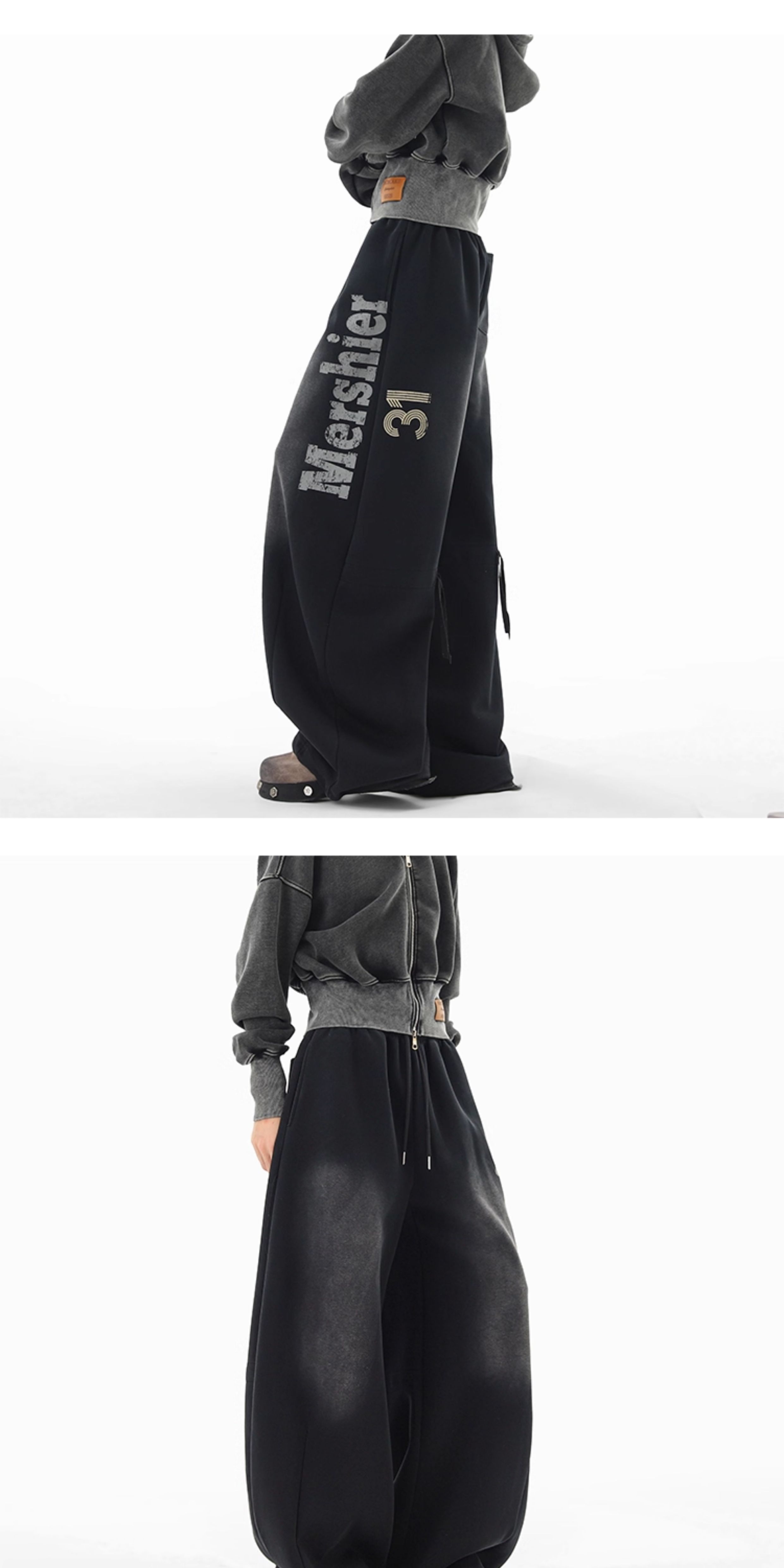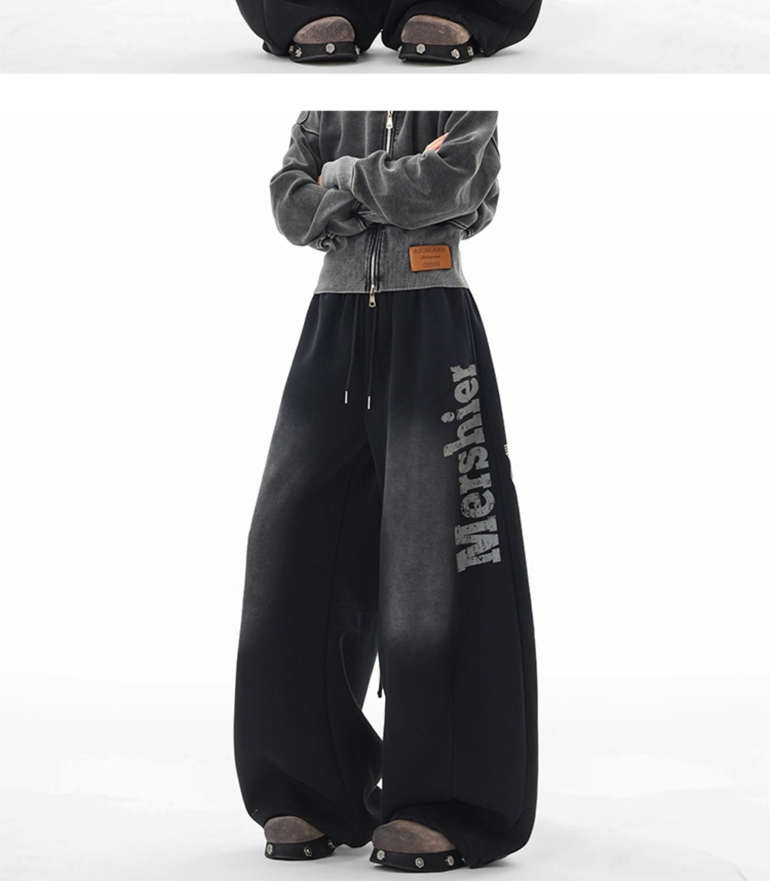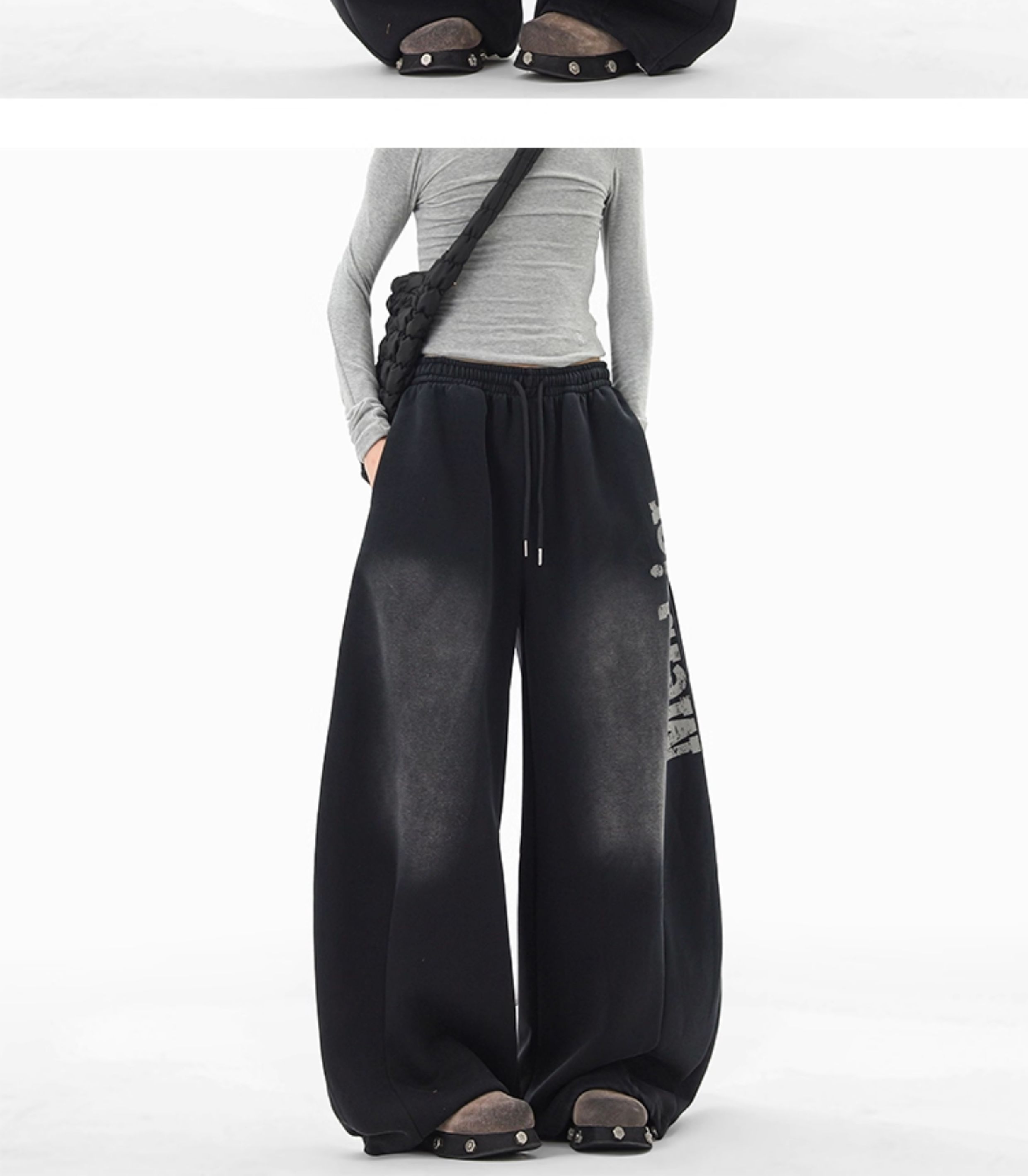 American Retro Spray-Painted Letter Scimitar Sweatpants for Women and Men, Autumn Washed Gradient Casual Pants, Loose Slimming Sports Pants
