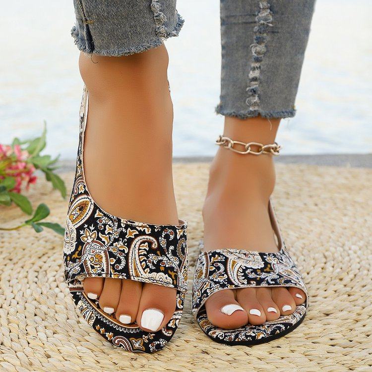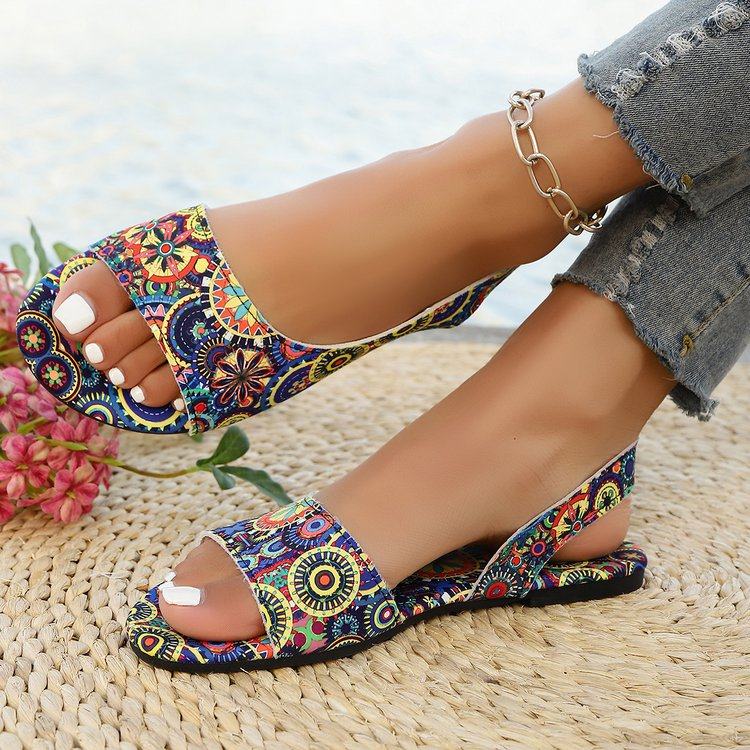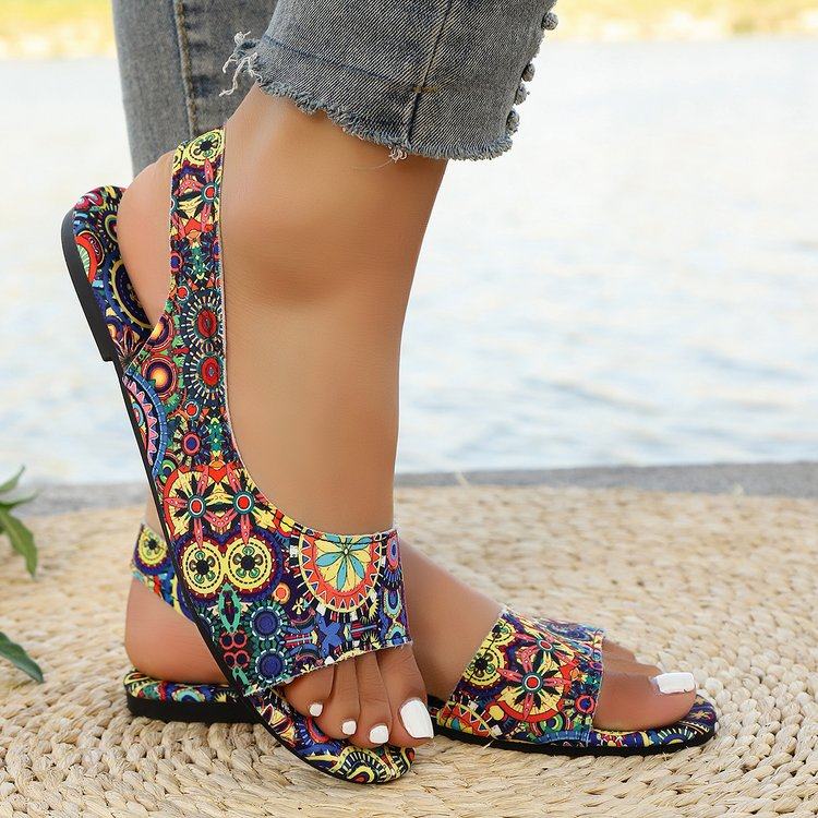 2025 Summer Large Size 36-44 Flat Casual Breathable Slip-On Lazy Shoes Printed Peep-Toe Fashion Sandals for Women