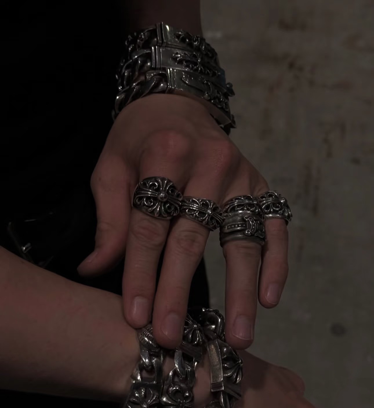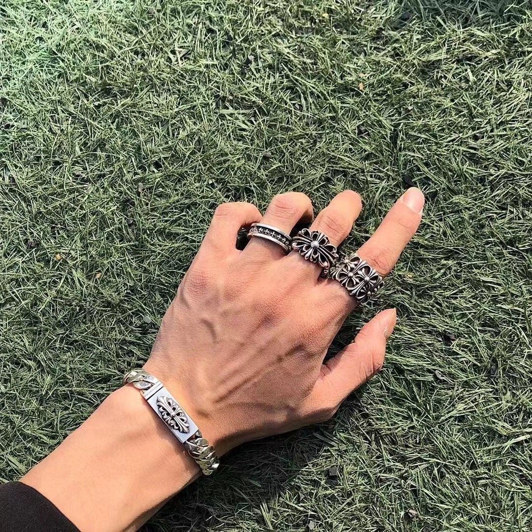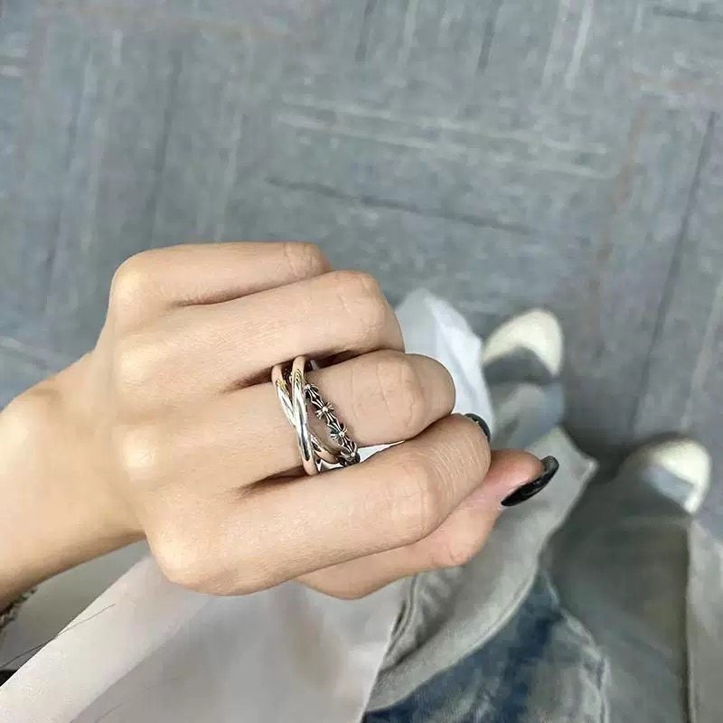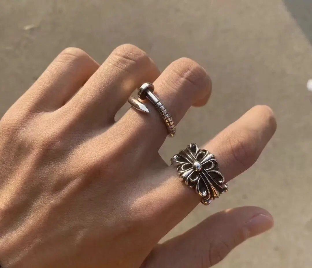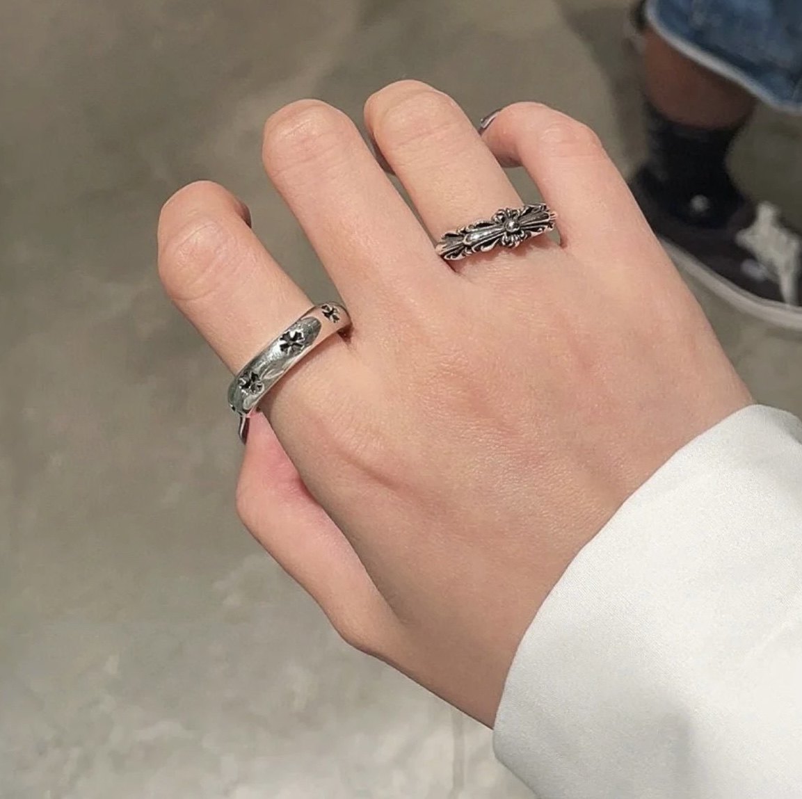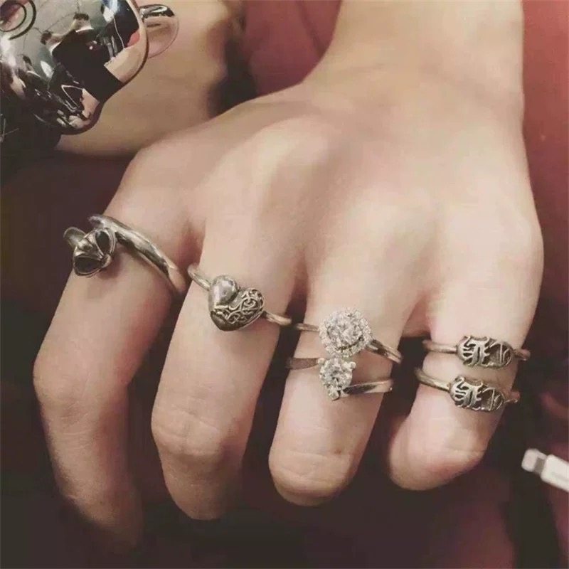 925 Sterling Silver Trendy Ring Collection Eternal Heart Iris Flower Vintage Retro Index Finger Ring Couple Men and Women Tail Ring