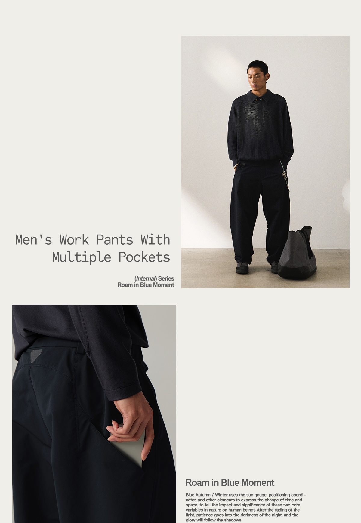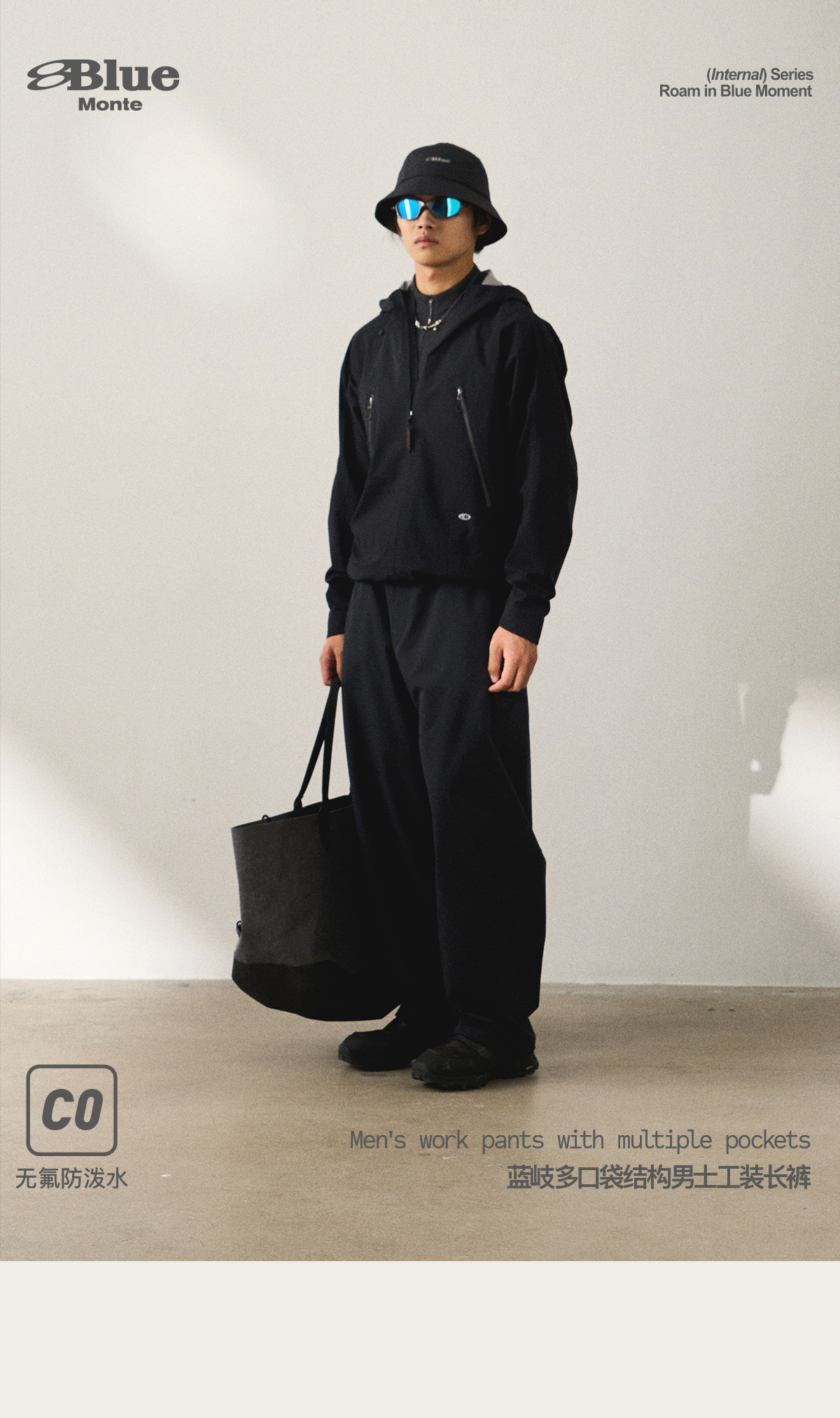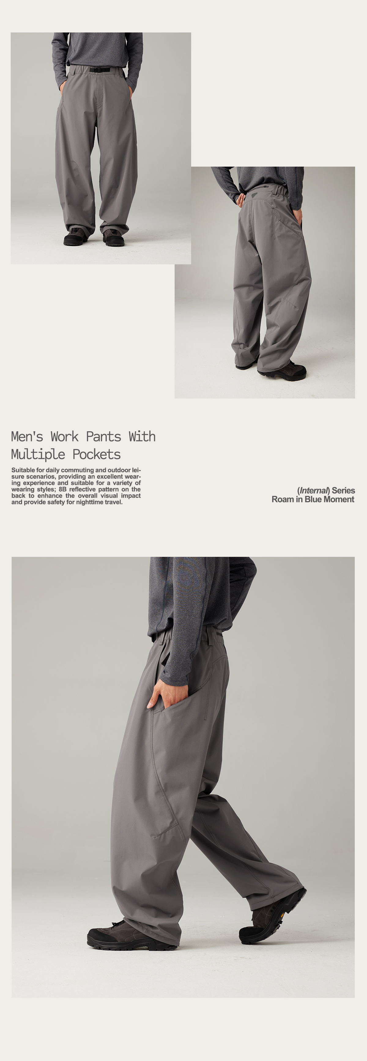 [Same Style as Ding Zhen] Blue Qi Fluorine-Free Water-Repellent Work Pants Geometric Split Casual Wide-Leg Scimitar Pants for Men