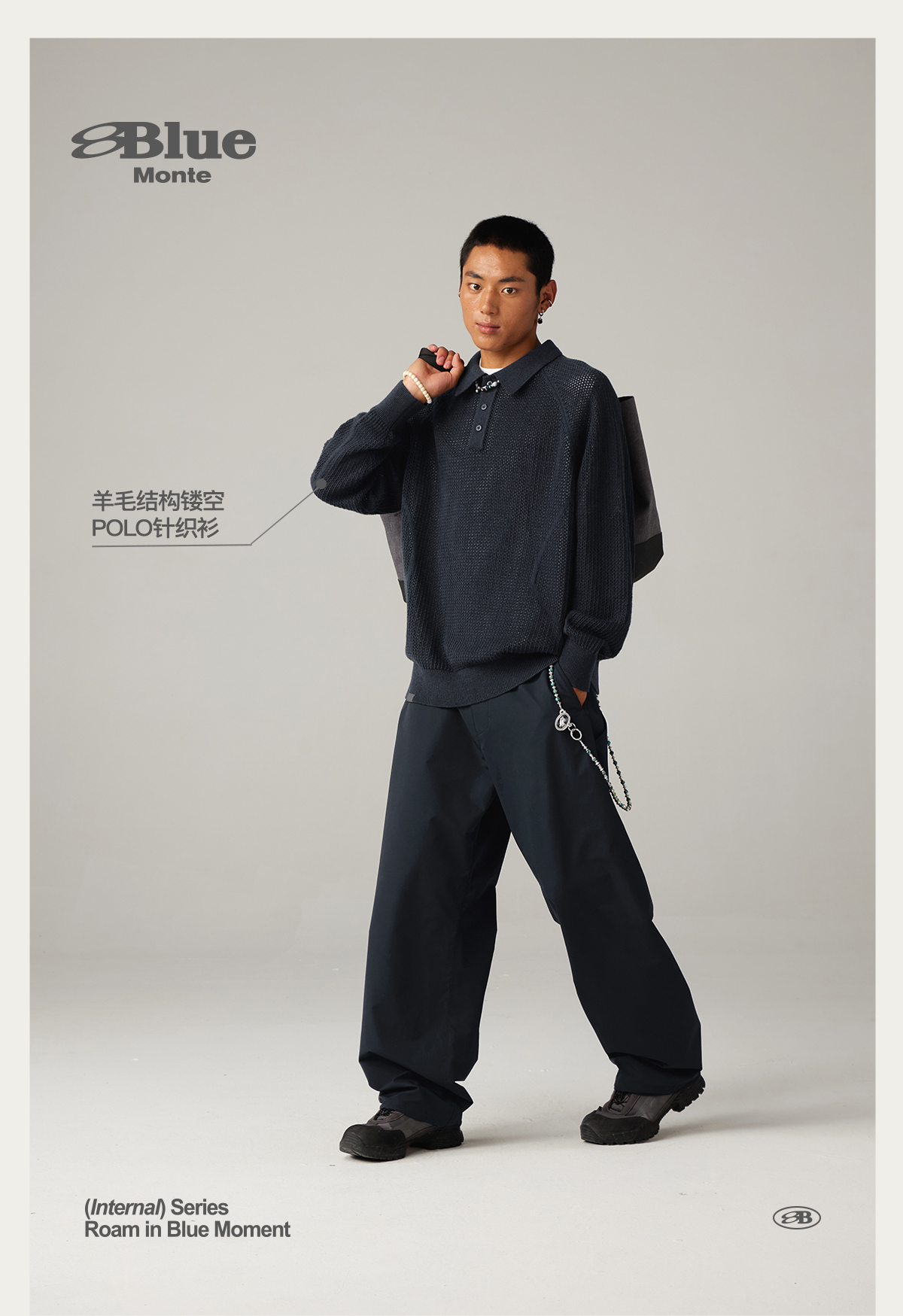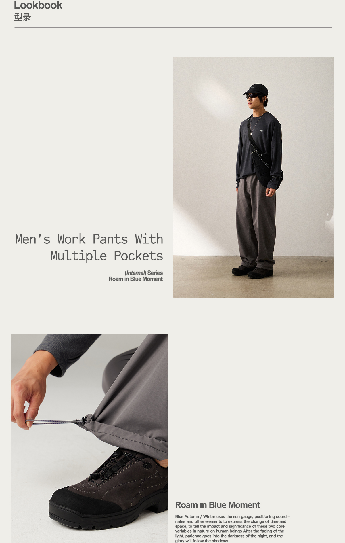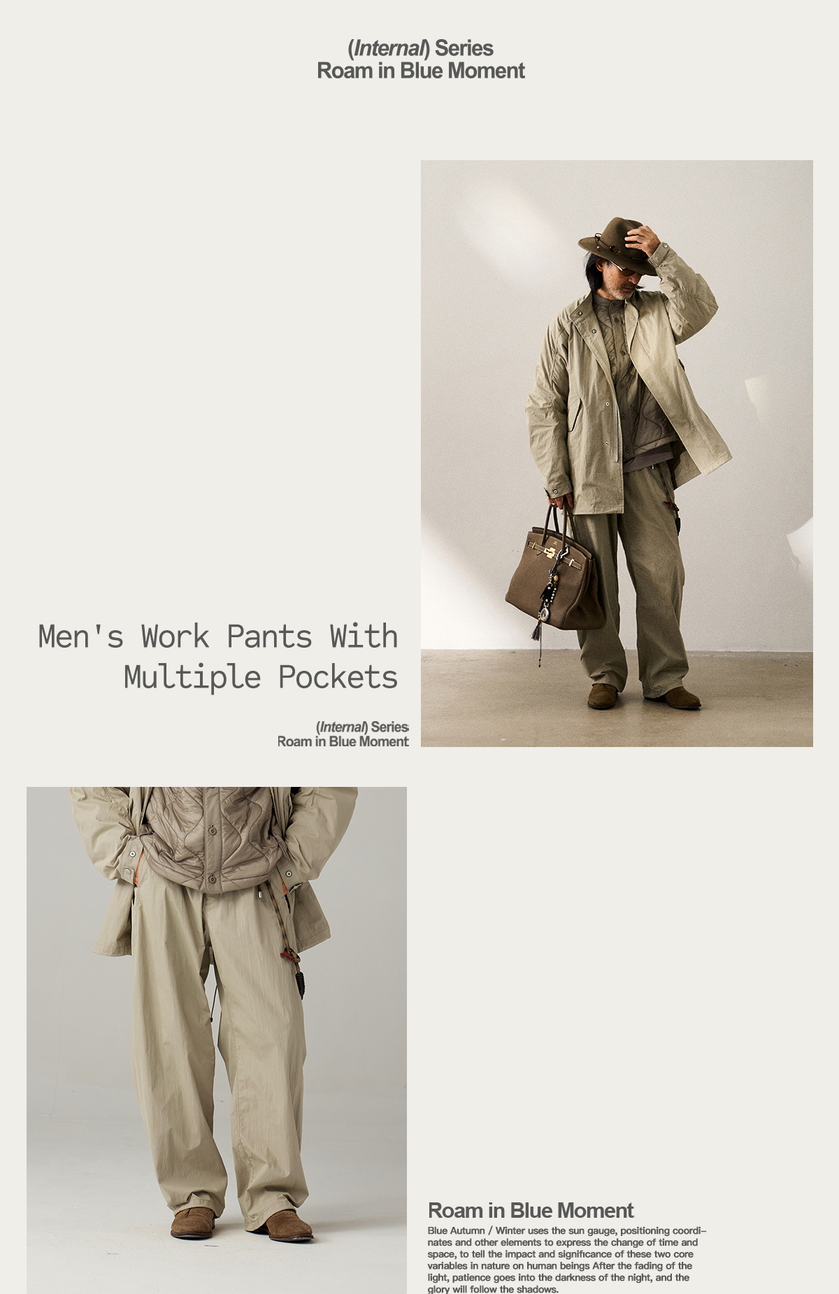 [Same Style as Ding Zhen] Blue Qi Fluorine-Free Water-Repellent Work Pants Geometric Split Casual Wide-Leg Scimitar Pants for Men