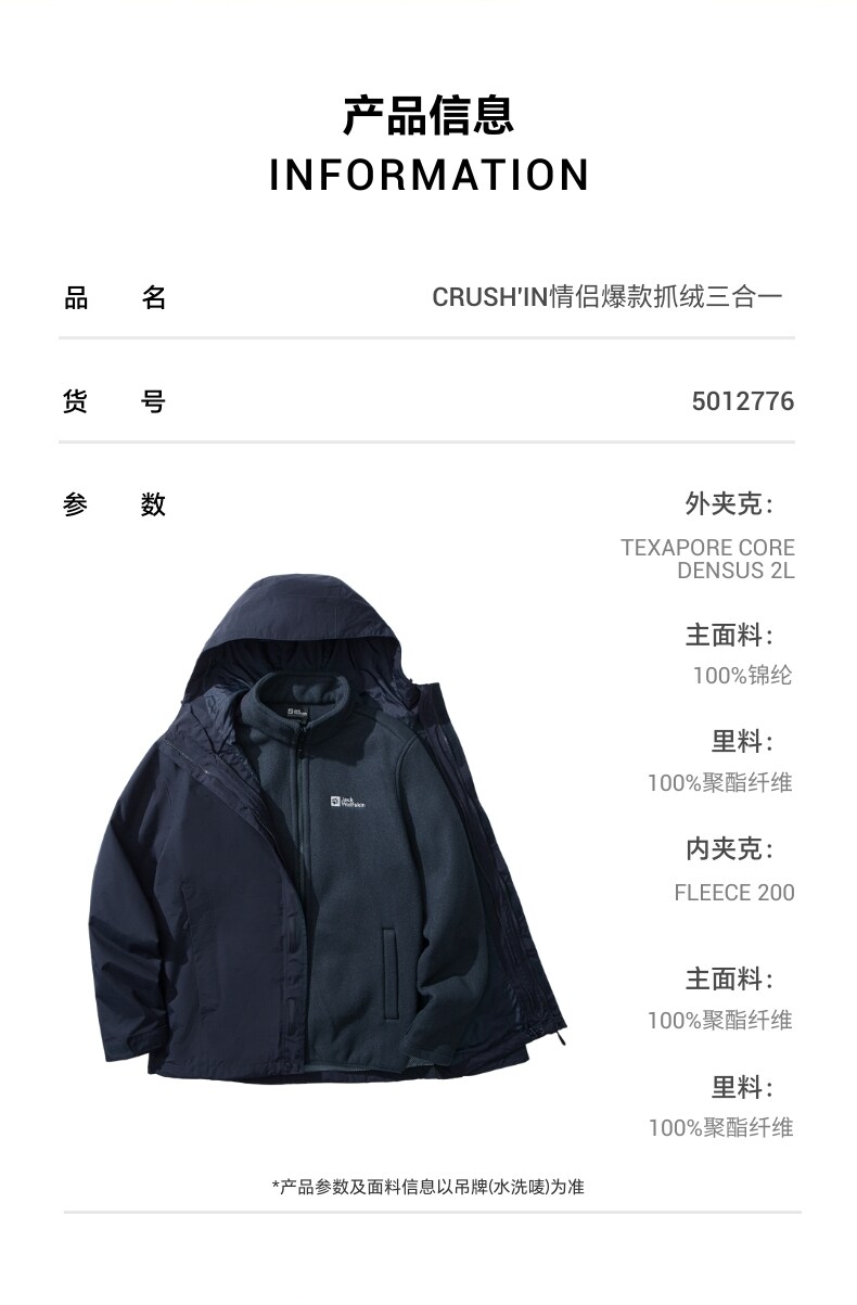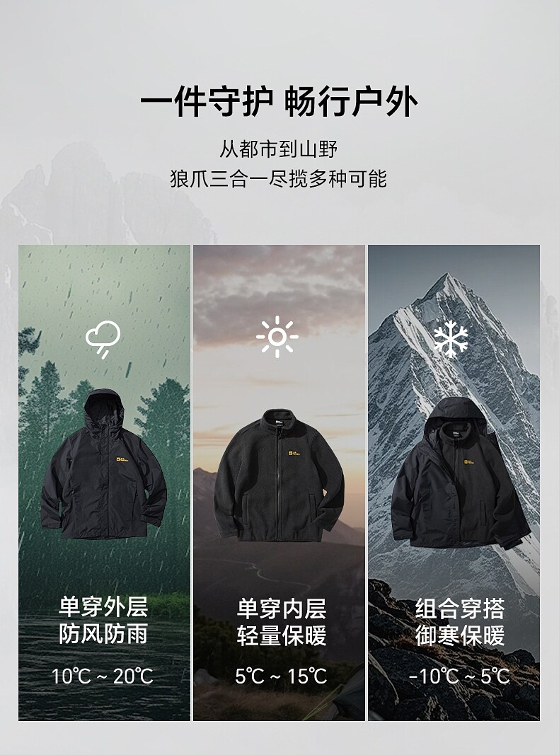 Jackwolfskin Wolf Claw 25 Autumn and Winter New Crush'In Couple's Three-In-One Jacket 5012776