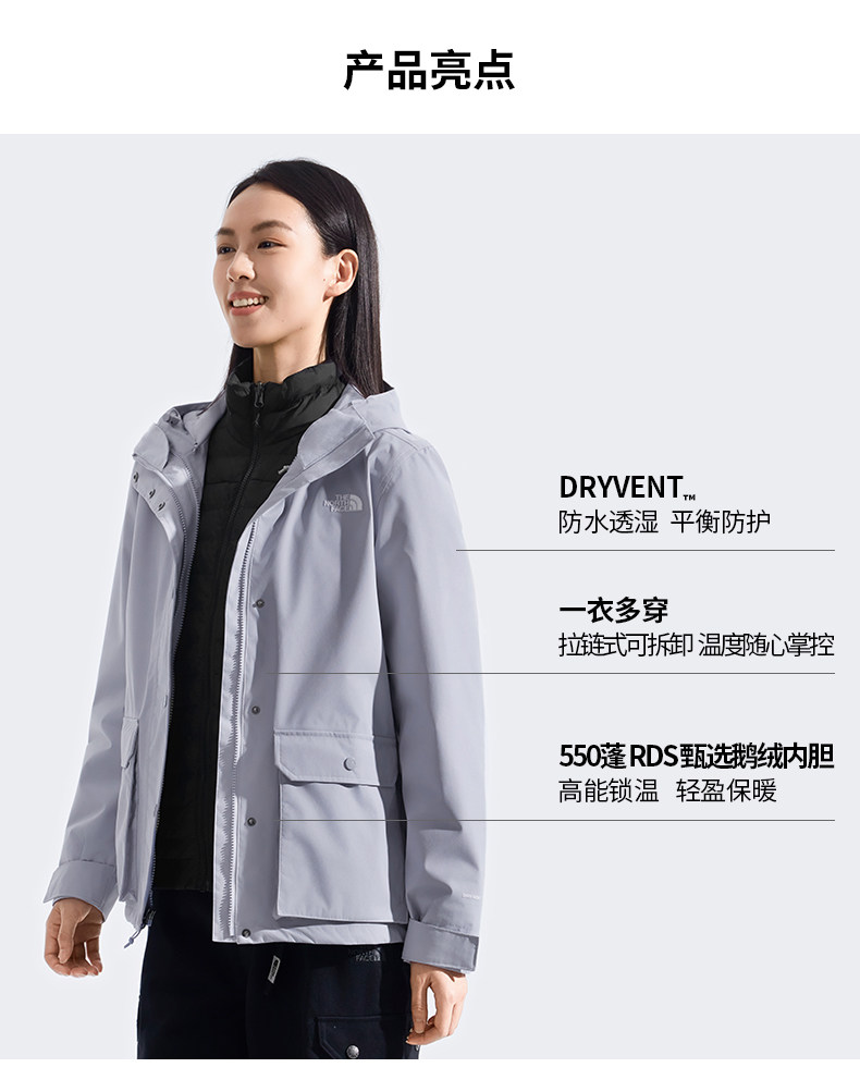 [Classic Model] North Face Women's down Three-In-One Jacket Goose down Waterproof Thenorthface | 8Gk7