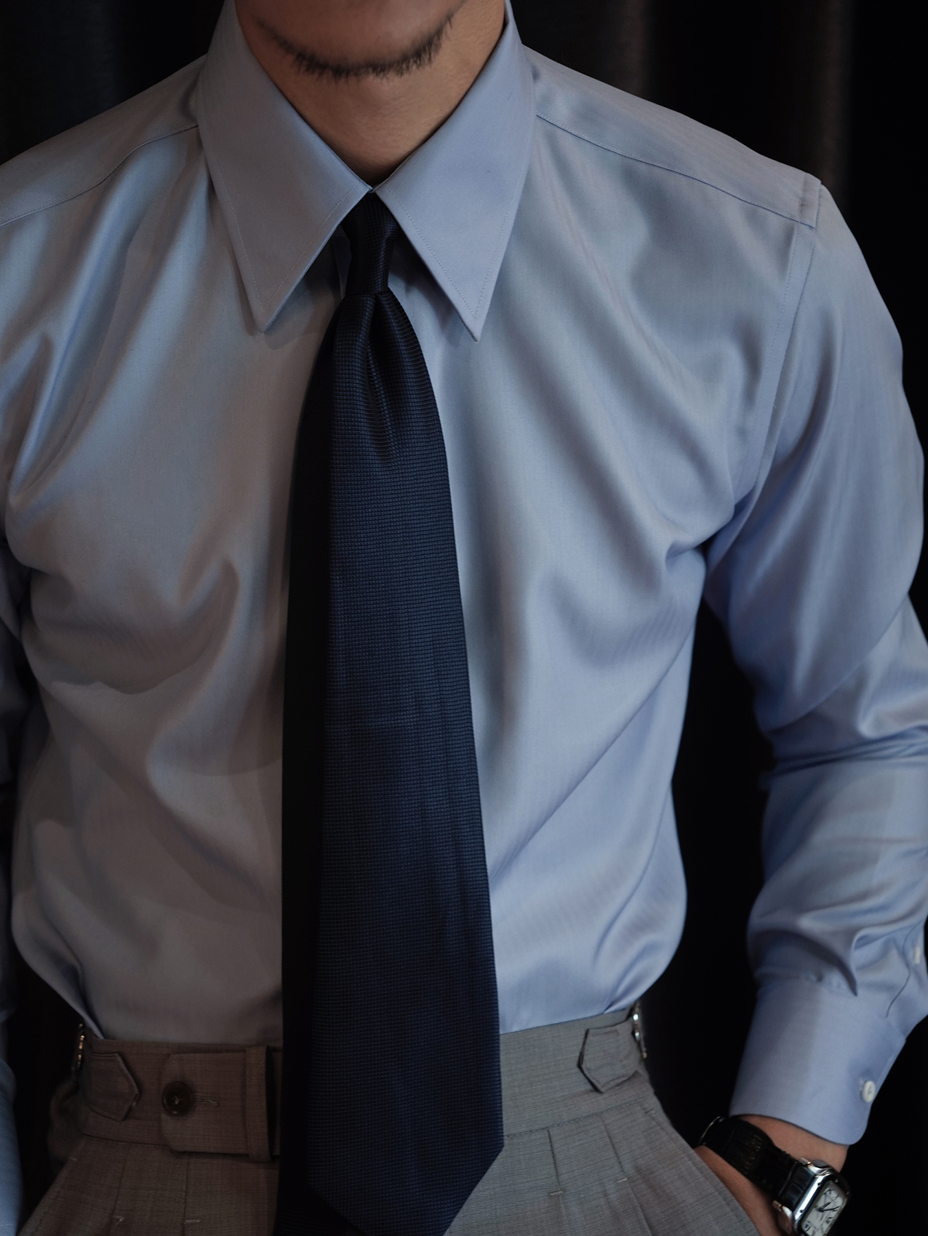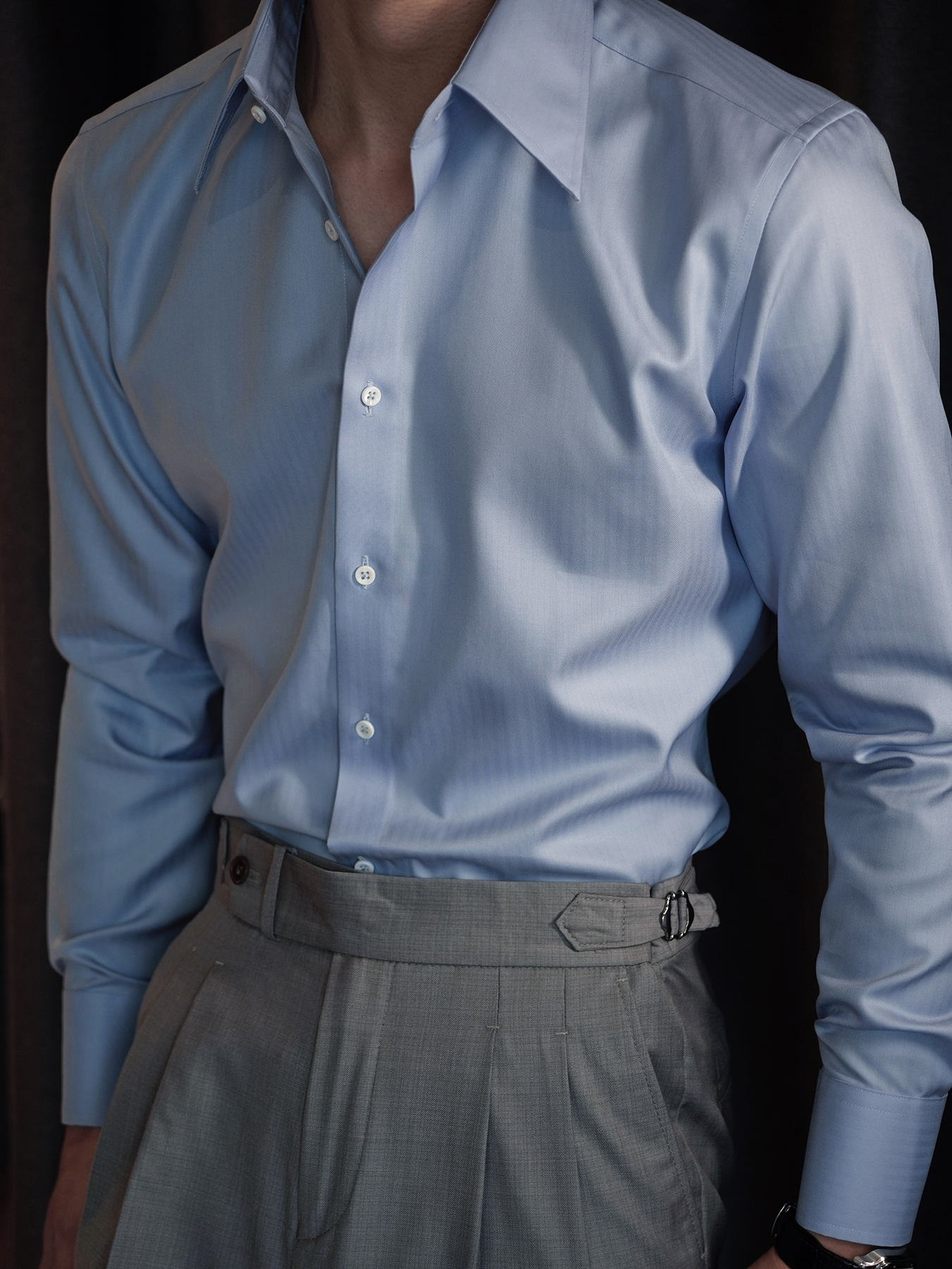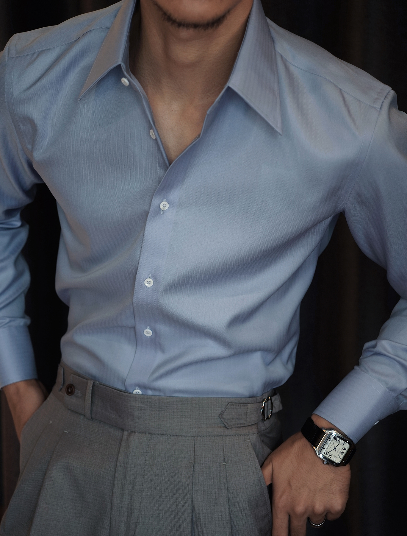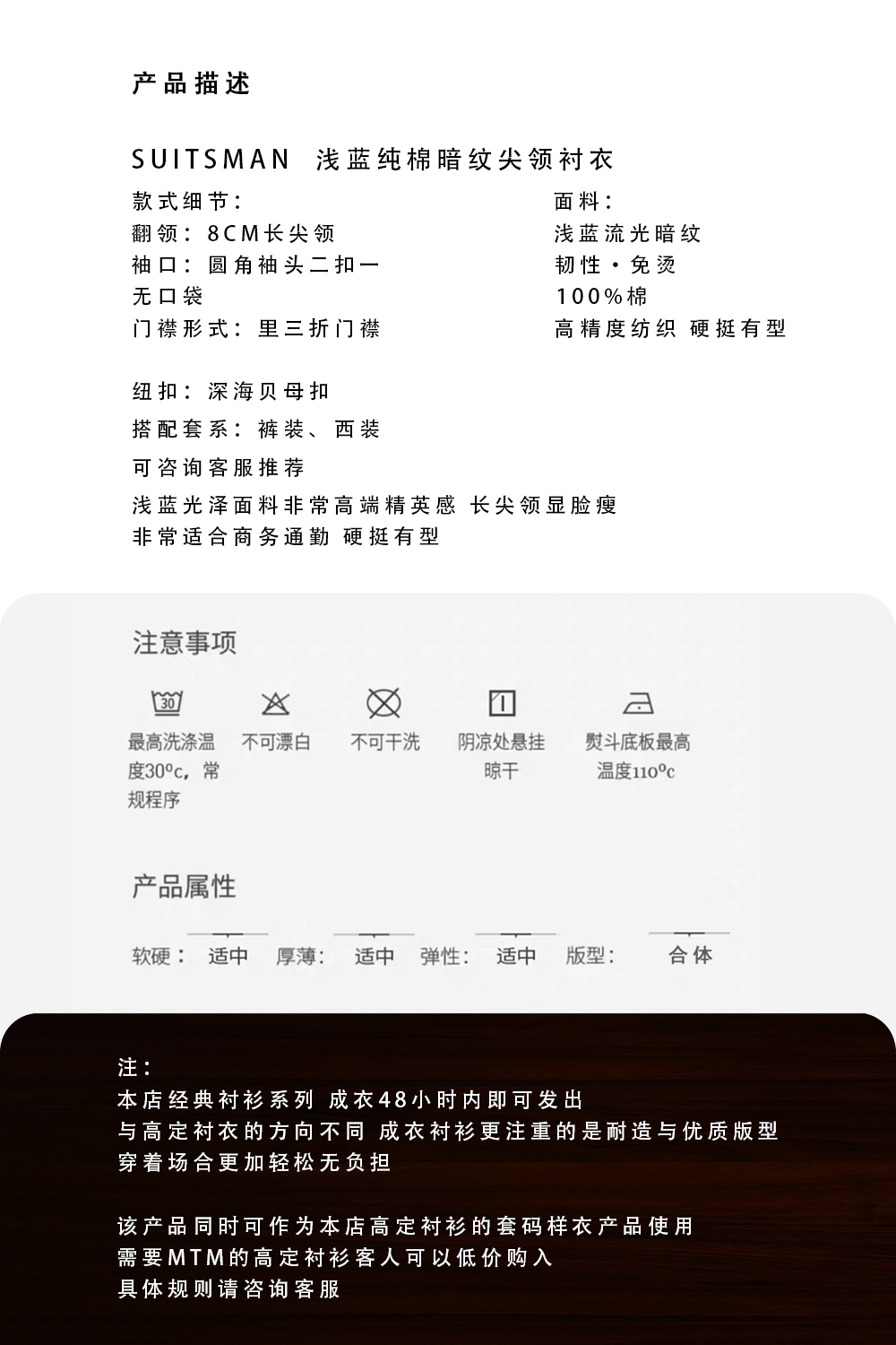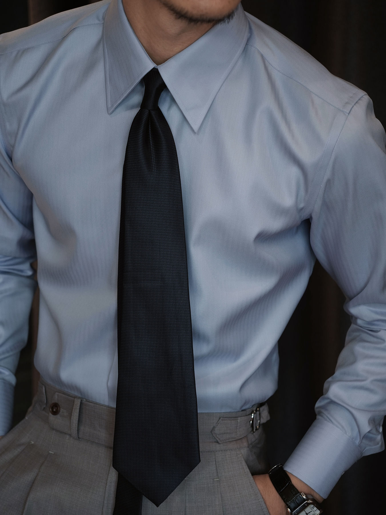 Suitsman|Industry Authority! Light Blue Pure Cotton Long Pointed Collar Shirt, Elegant Business Formal Gray Shirt