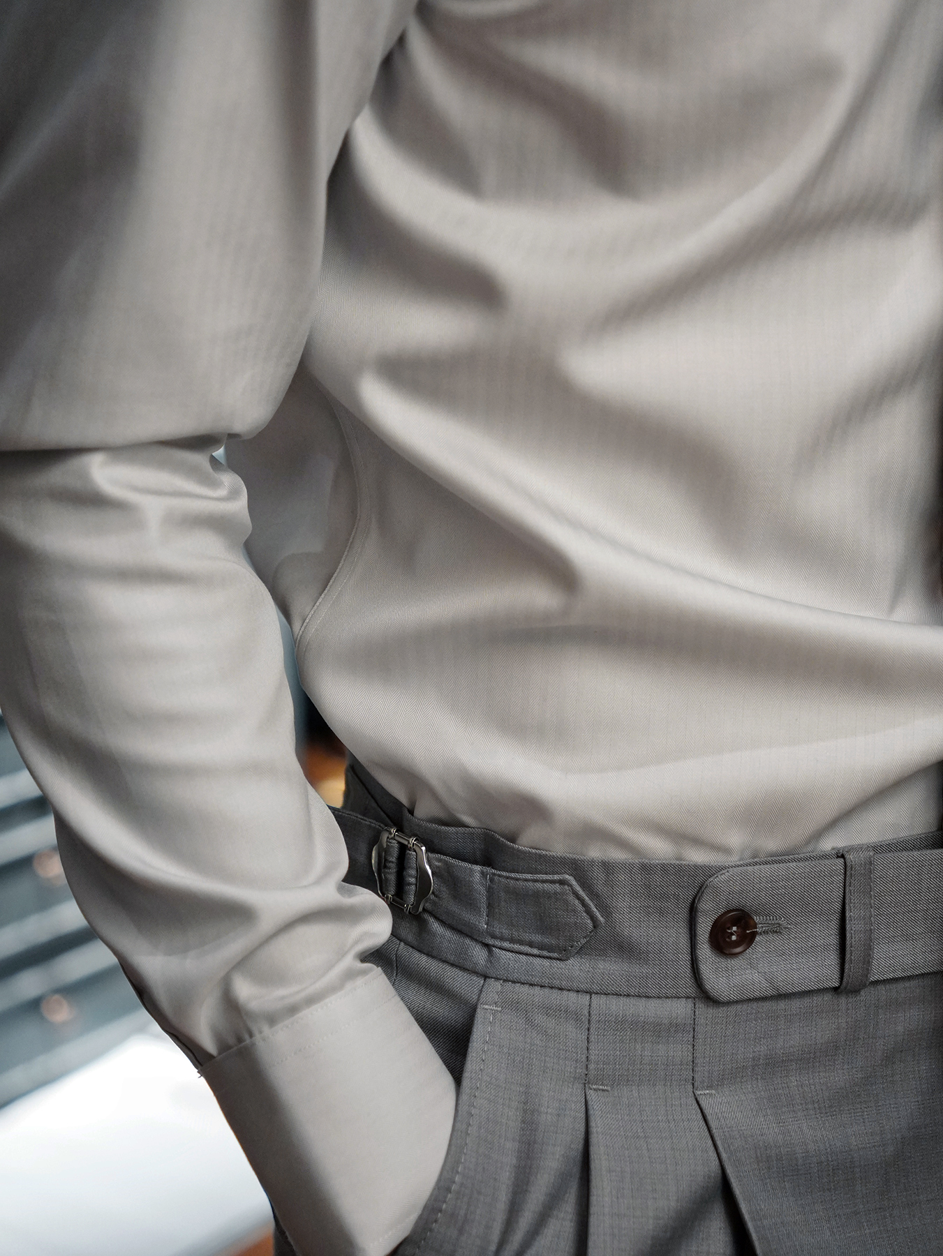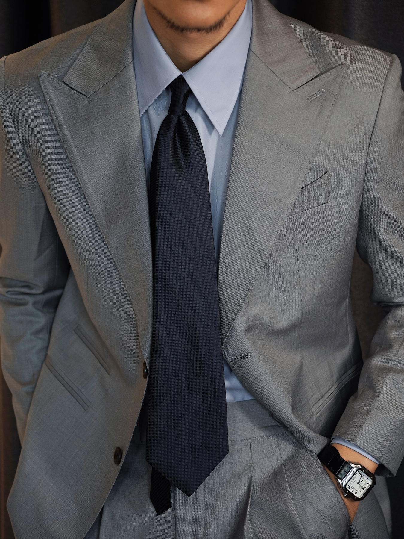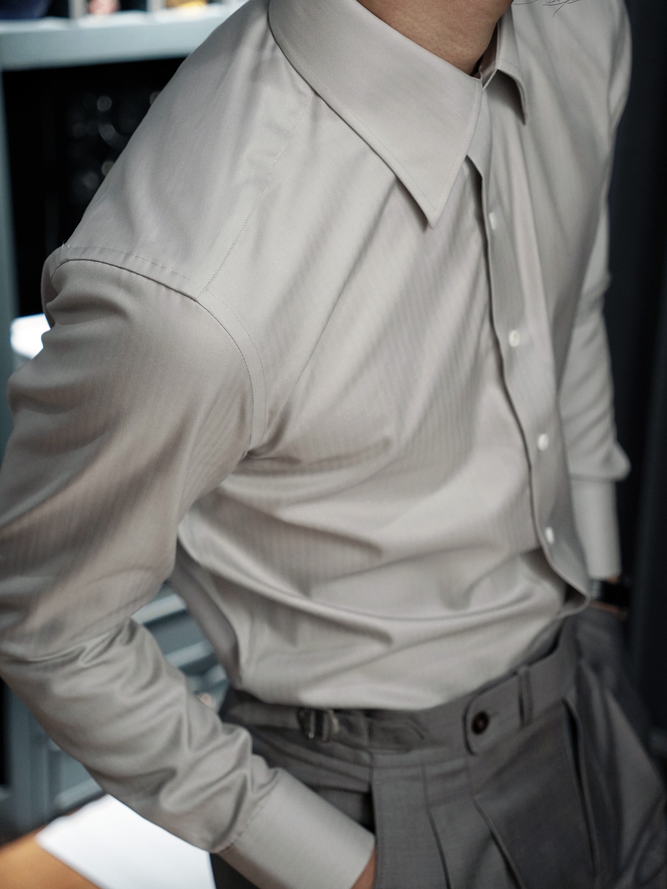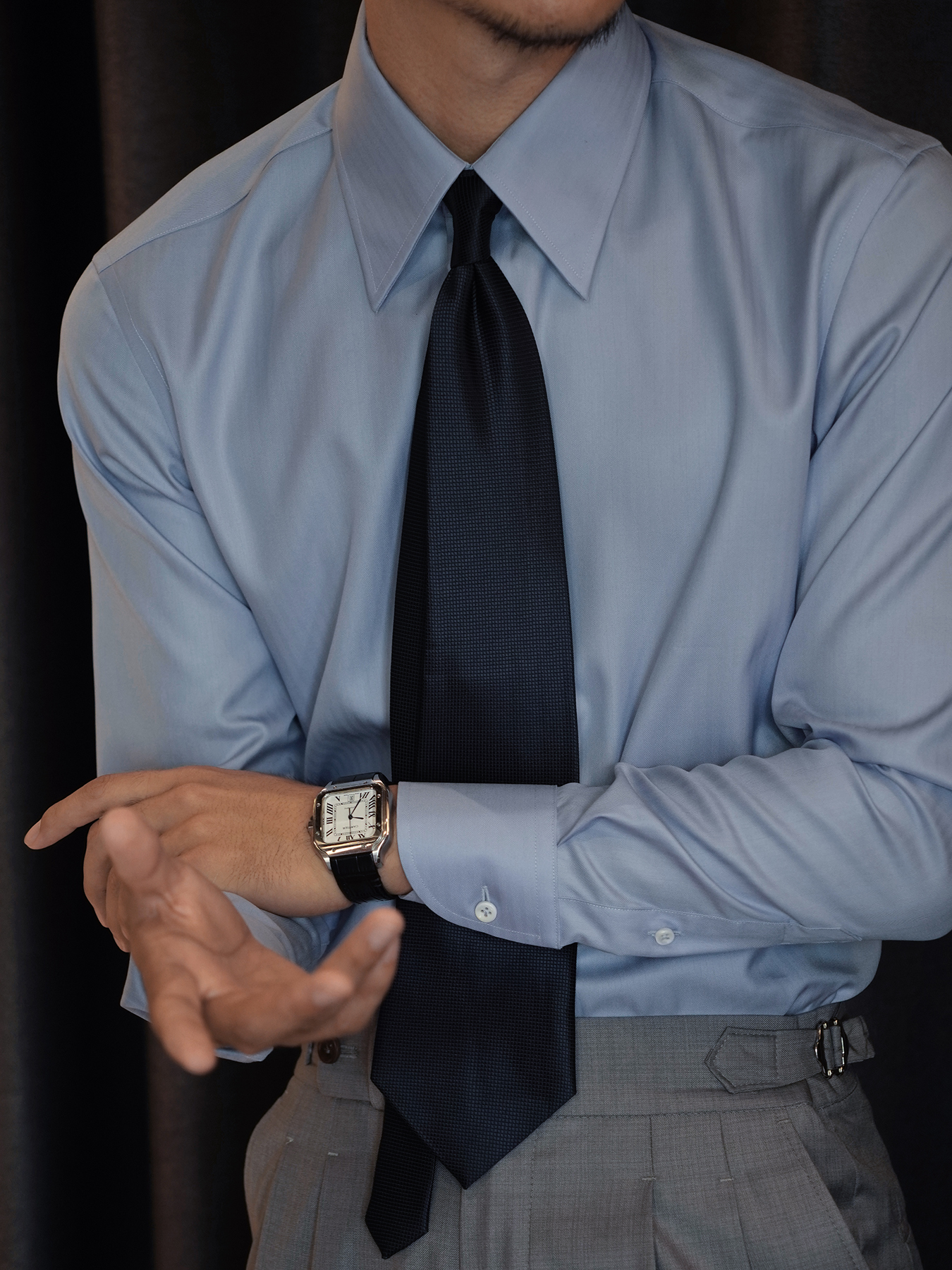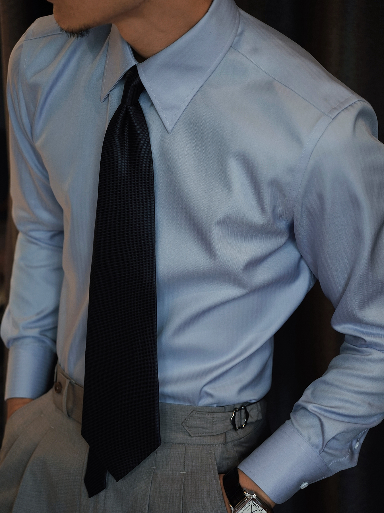 Suitsman|Industry Authority! Light Blue Pure Cotton Long Pointed Collar Shirt, Elegant Business Formal Gray Shirt